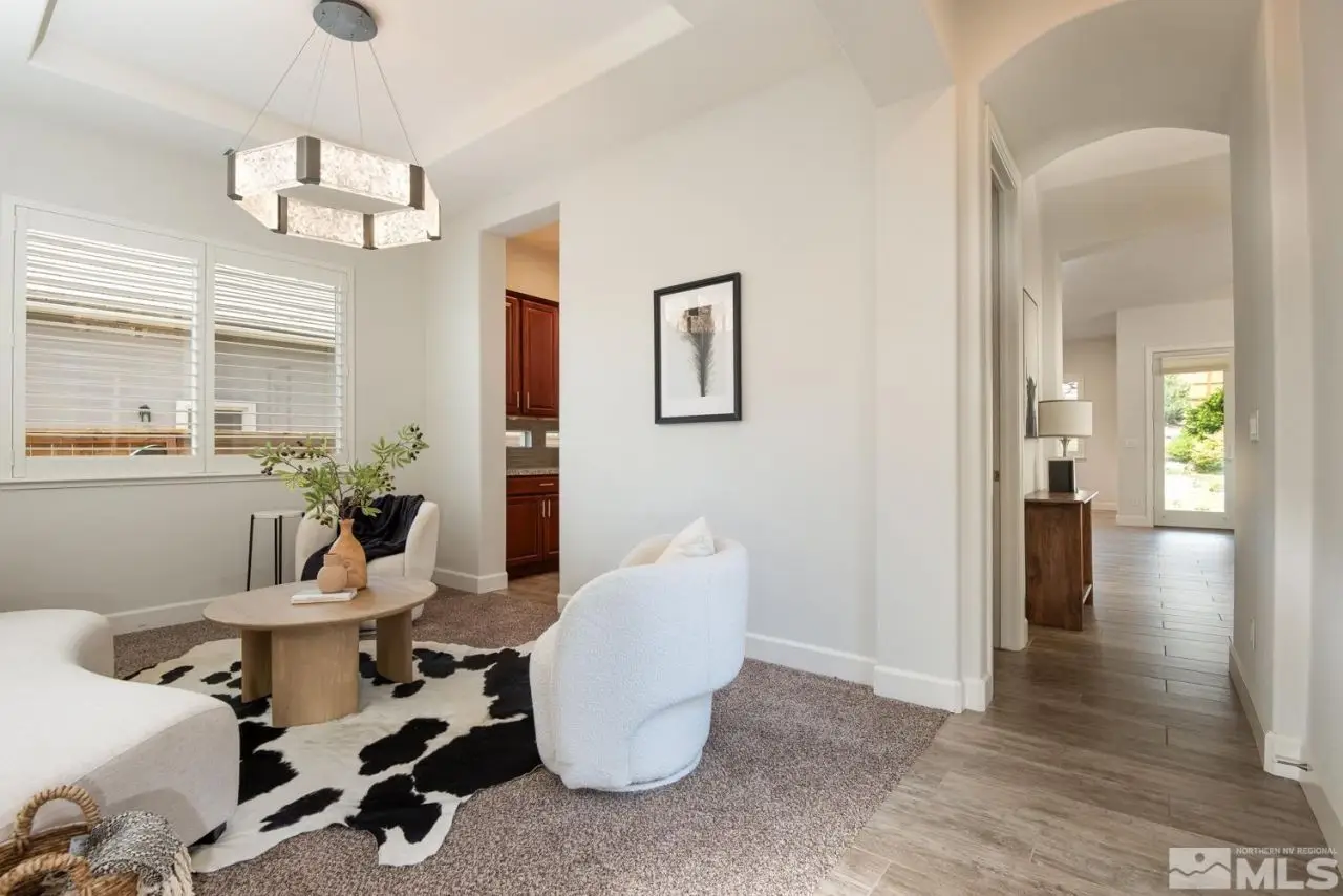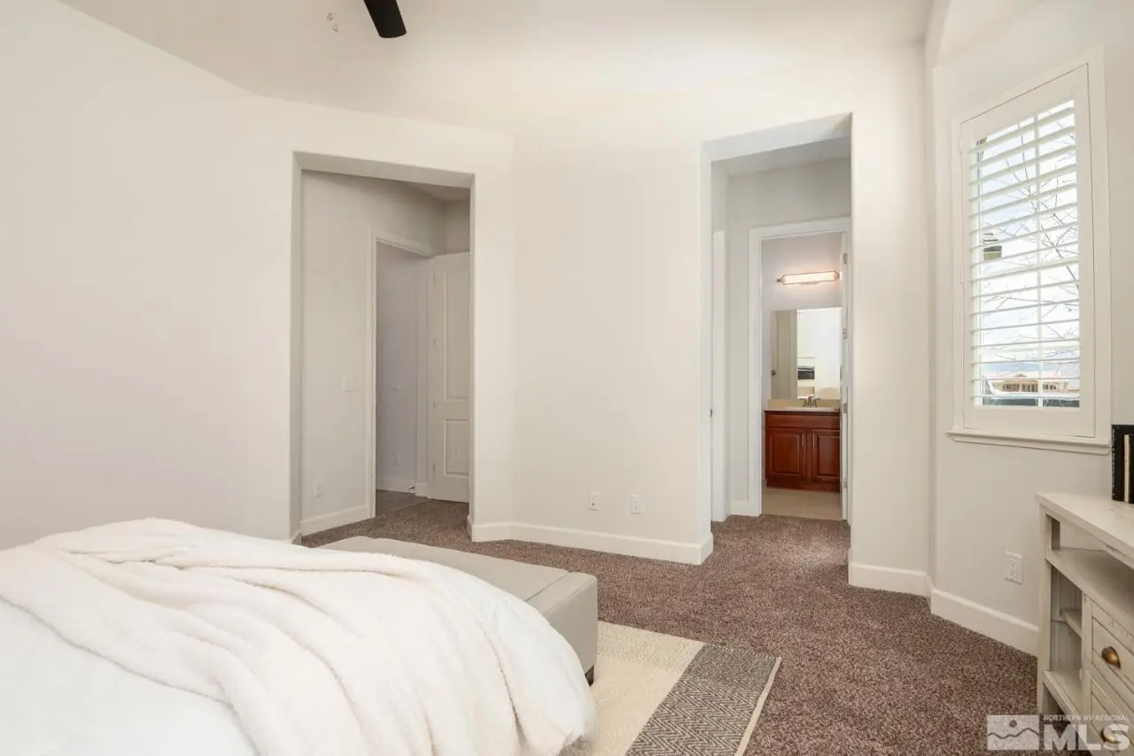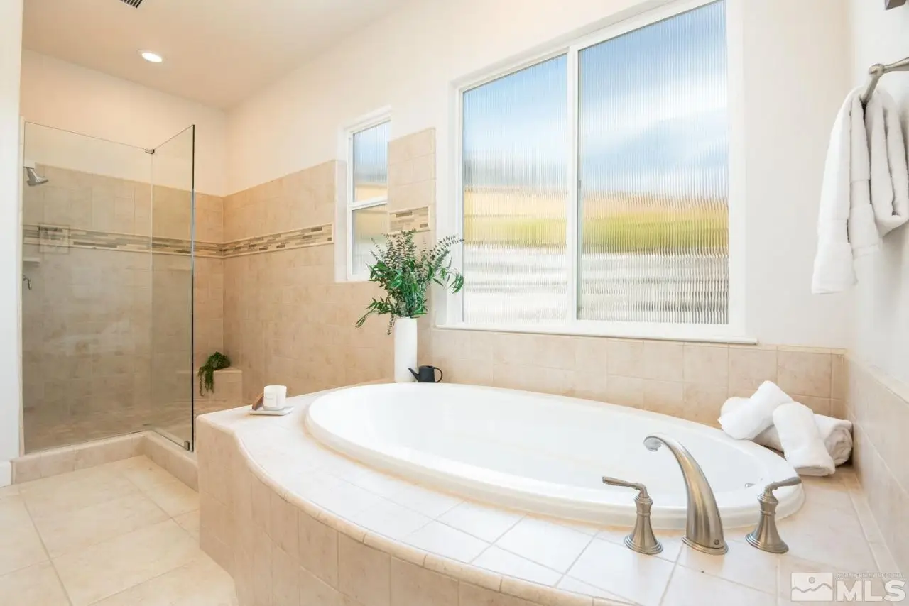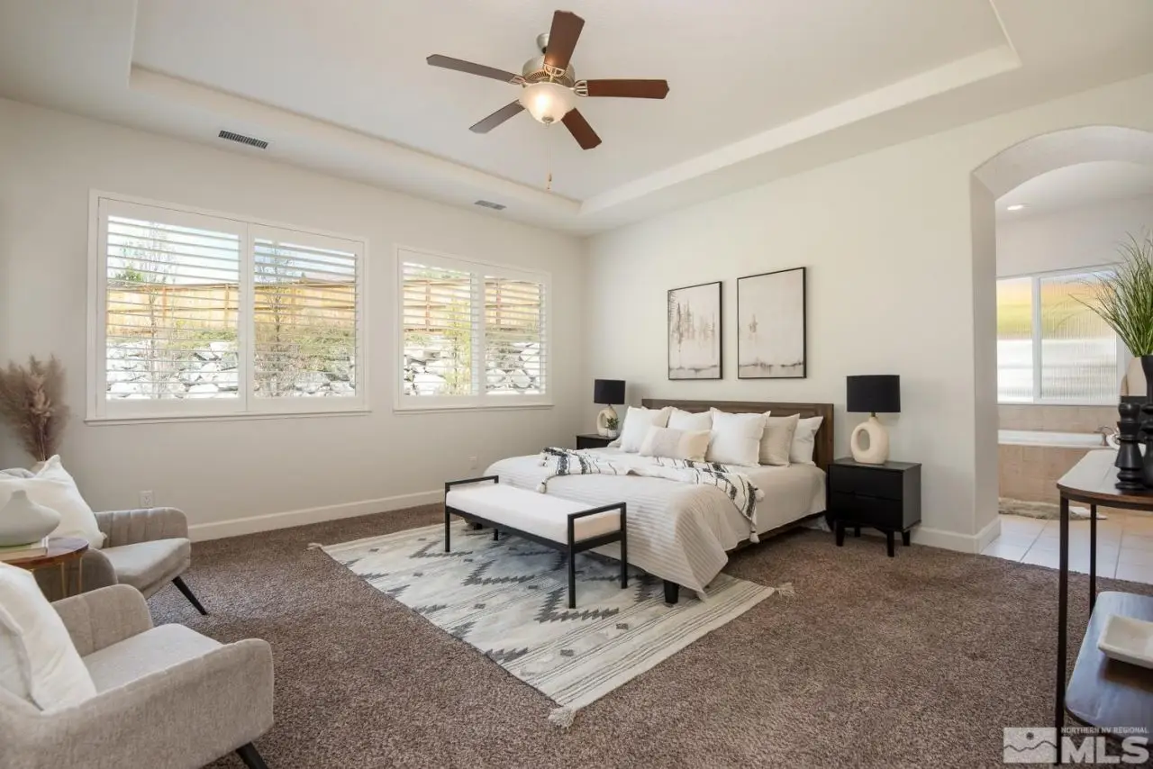 Welcome home to this beautifully built Legacy home at the Genoa Lakes Ranch Course in Genoa, NV. Here you can enjoy luxury amenities of living in the Carson Valley, just minutes from Lake Tahoe, world class entertainment, and Reno. This updated 3 bedroom, 3.5 bathroom home near the golf course is everything you've dreamed of, including views of Jobs Peak! Relax in the expansive primary suite with garden tub and walk in closet, or entertain in the chef's kitchen with many upgrades in this open floorplan! This home is full of upgrades including double oven, large kitchen sink, indirect lighting, under counter lighting, closet organizers and a whole house water filtration system including reverse osmosis under the kitchen sink. Don't forget the outdoor fireplace in the courtyard, updated ceiling fans and lights! This HUGE lot adjoins a small piece of common area and backyard is spacious and private with views of the Sierra Nevada Mountain range.