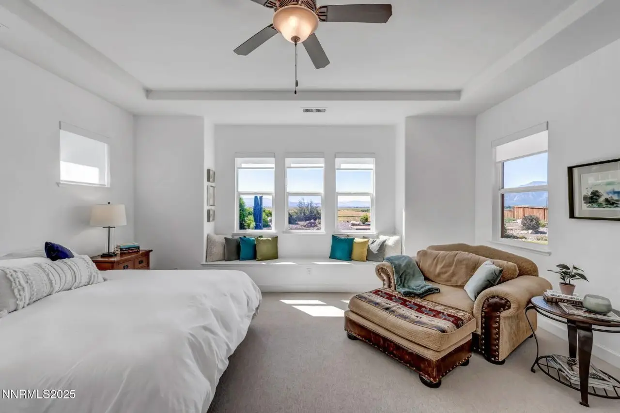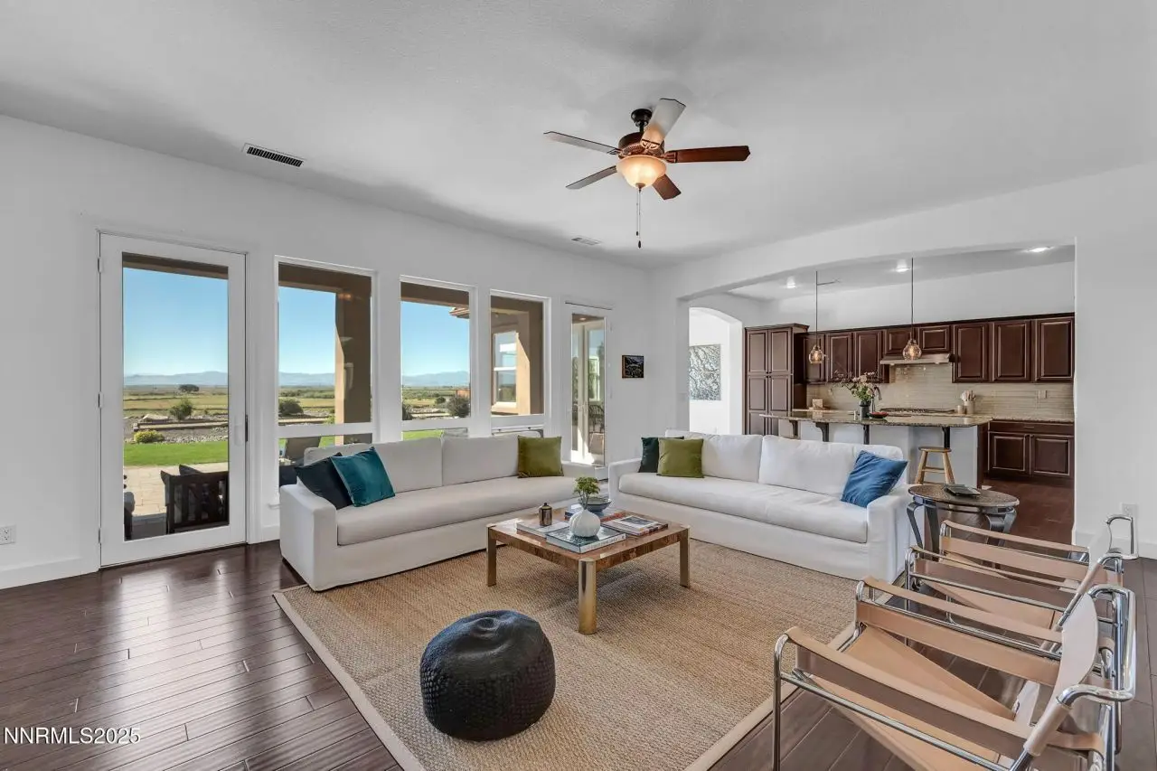 Gorgeous Genoa is Calling! Welcome to elevated country living in the coveted community of Genoa Lakes Ranch. Perched on one of the premier view lots, this 3 BD, 3.5 BA + office single-level home offers 3,049 sq ft of thoughtfully curated luxury. Enjoy expansive valley views, privacy, and vibrant outdoor living on over half an acre. Built in 2014, the home features upgraded flooring, custom tile work, and a covered patio, ideal for entertaining. A true gardener's paradise, the landscaped yard includes raised beds, a fire pit, and a bocce ball court-perfect for enjoying all four seasons. Inside, a spacious great room connects seamlessly to the kitchen and dining, while the master suite, junior suite, and guest ensuite offer flexibility for family and visitors. The private office is ideal for remote work. A 3-car tandem garage with epoxy flooring and lots of storage completes this exceptional home. Just minutes to Lake Tahoe, skiing, golf, and shopping-plus Nevada's tax-friendly benefits-this is lifestyle living at its finest.