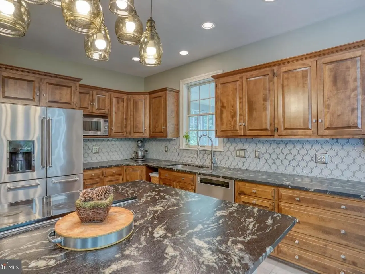 Nestled on a picturesque 2.39-acre waterfront lot on tranquil Morris Mill Pond, this exceptional property offers a rare blend of serene natural beauty and thoughtful luxury. Surrounded by lush, manicured gardens, the home delivers direct access to the pond via a floating dock-perfect for kayaking, fishing, or simply soaking in the peaceful setting. A circular driveway leads to a spacious three-car garage, and the landscaped grounds are enhanced with irrigation, a cozy firepit area, and an outbuilding for equipment storage that also functions as a pump house. Inside, the home features a smart layout designed for comfort and elegance. The main level hosts a formal dining room, a welcoming living room, and a spacious primary bedroom-all with direct access to an oversized deck that boasts a Jacuzzi and retractable awnings for year-round enjoyment. The sunroom, with its EZ Breeze windows, offers the perfect place to relax while enjoying panoramic garden and pond views. The kitchen is both stylish and functional with leathered granite countertops, a tile backsplash, and a sun-filled eat-in space ideal for casual dining. This residence includes four bedrooms and three and a half bathrooms, offering ample room for family and guests. A bonus room/flex space within the main house serves perfectly as a lounge, office, or hobby room. Above the garage, a large music room-complete with its own HVAC system-presents exciting potential as a future in-law suite or creative studio, offering privacy and flexibility for multigenerational living or remote work. Adding to its appeal, the home is equipped with whole-house music for seamless indoor-outdoor entertaining and ambiance. Whether you're hosting friends on the deck, enjoying the sunset over the water, or retreating to one of the quiet corners of this lush estate, this home offers a rare combination of refined living and natural splendor on the water.