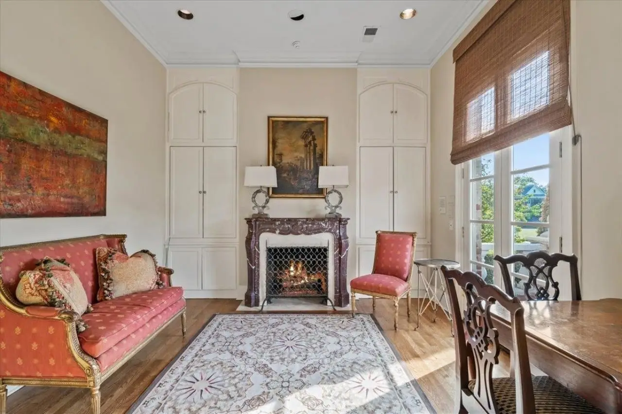 Stunning 4 bedroom, 5 bath home in a gated community offering privacy and luxury. The beautifully designed kitchen features a gas cooktop, abundant storage, elegant finishes, and great natural light. Entertain in the spacious dining room or relax by one of three fireplaces in the inviting living areas. A dedicated office provides the perfect workspace. Upstairs, a versatile bonus room with a kitchenette makes an ideal guest suite or second living area. Enjoy outdoor living on the charming brick patio with a soothing fountain. A perfect blend of comfort, function, and style.