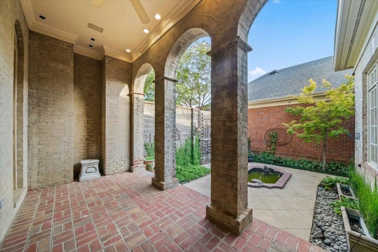 Charming brick patio with soothing fountain