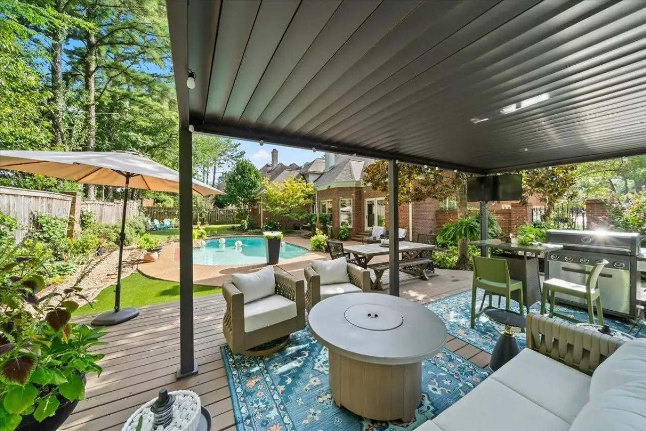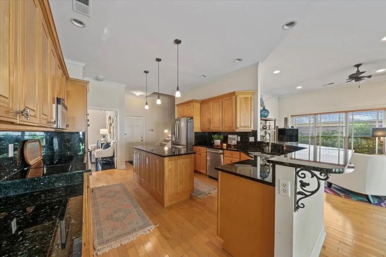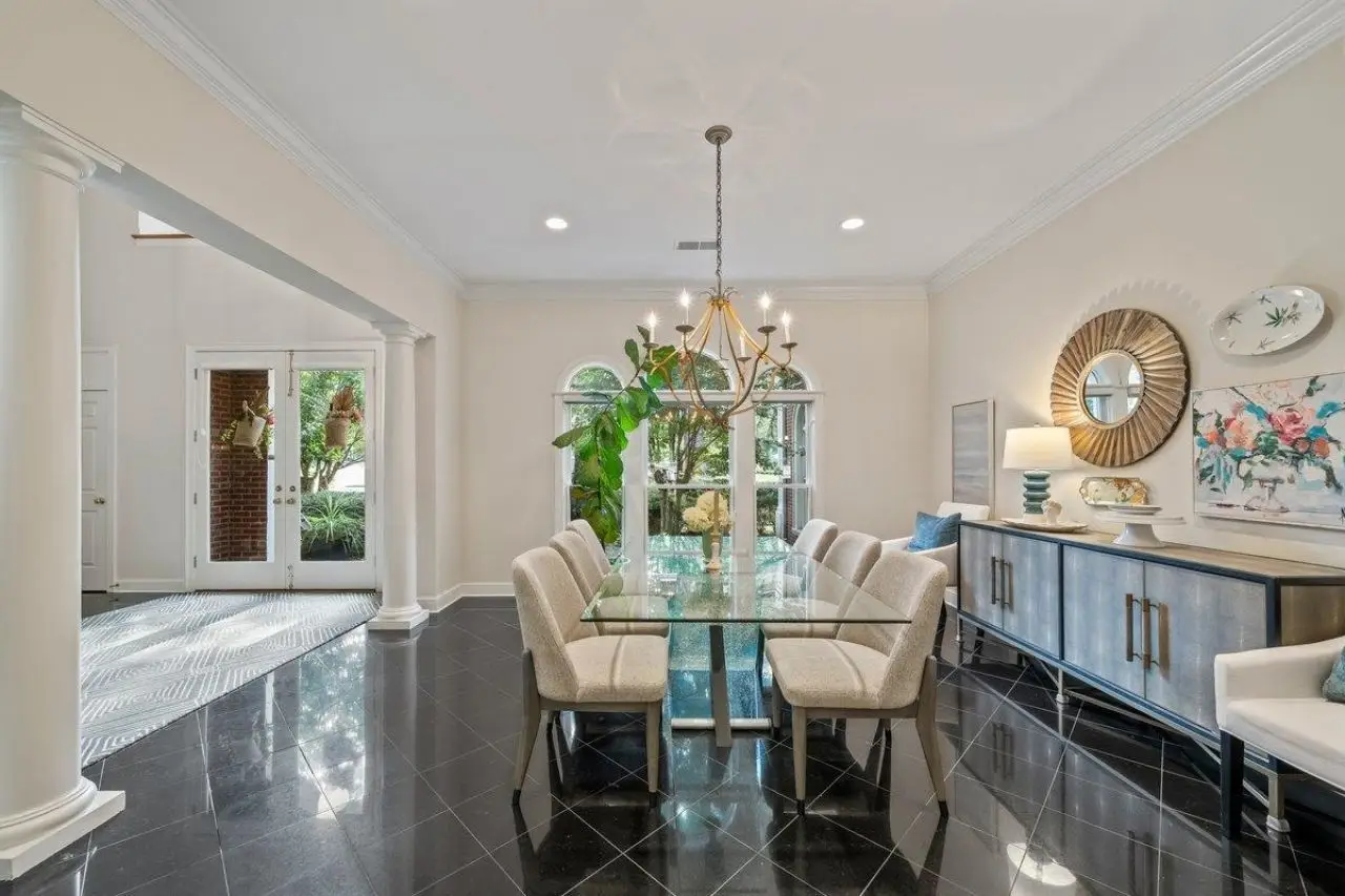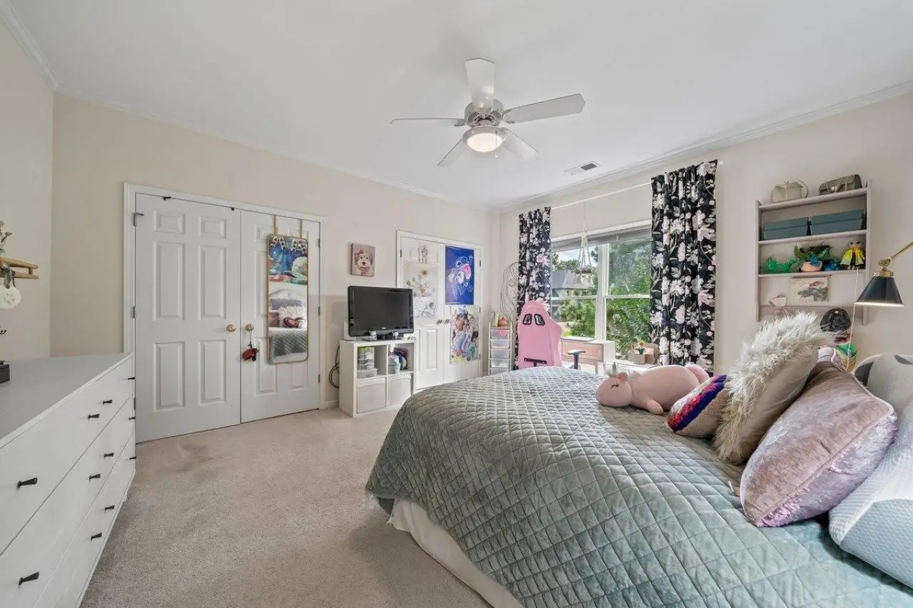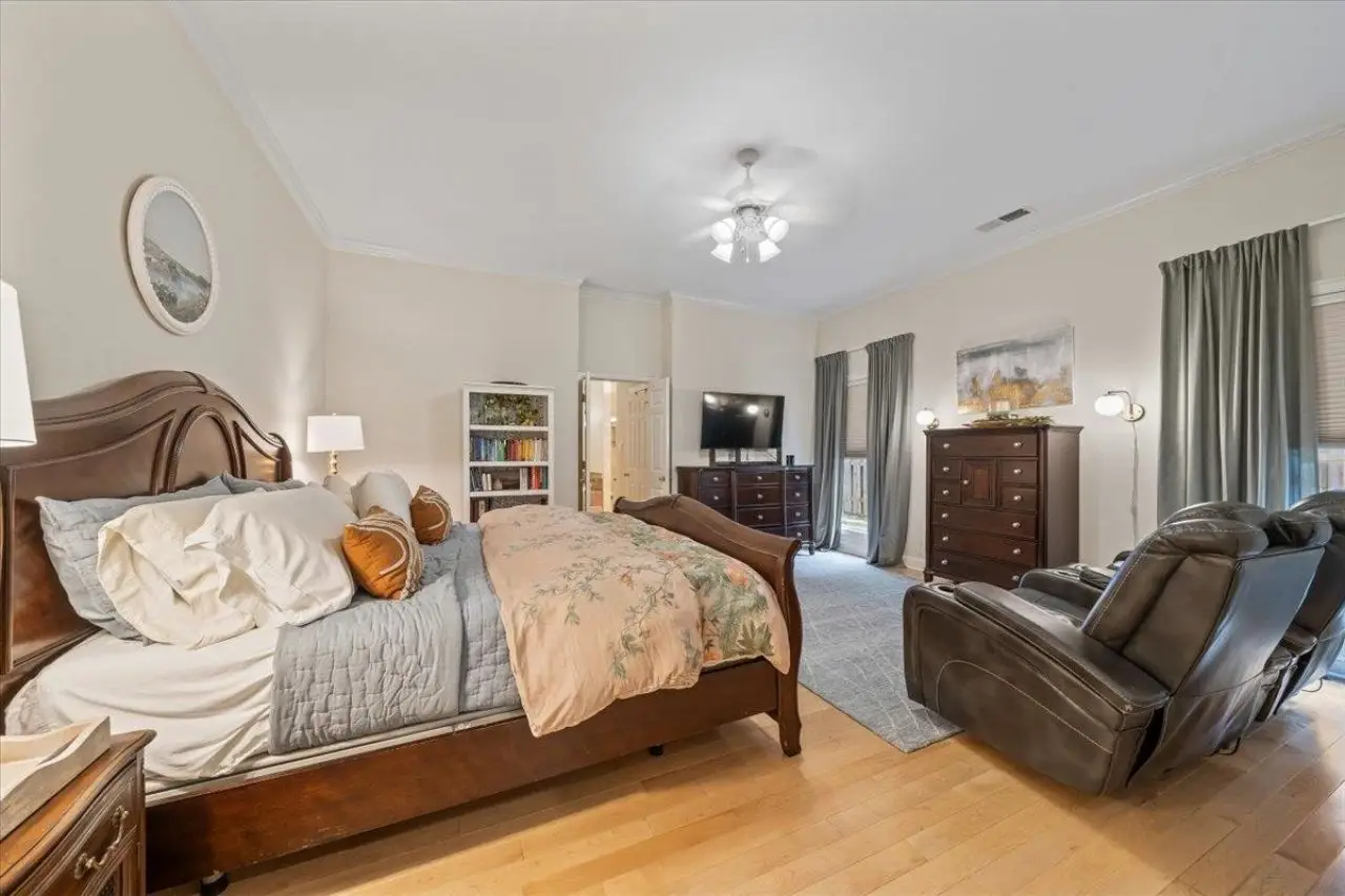 Located in Bedford Plantation, this property includes 5 bedrooms (2 on the main level), 4.5 bathrooms, plus a spacious bonus room. Inside features a wrought iron staircase, high smooth ceilings, and beautiful hardwood floors. Flooded with natural light from a wall of windows, the home feels bright and serene year-round, overlooking the pool and courtyard. With a seamless flow, the home is perfectly designed for entertaining and/or everyday family living. The property has storage galore including two walk-in attics. TWO new AC units have been installed in 2025. Step outside into your private retreat featuring a saltwater pool, deck (2024), and 20ft pergola (2024). The property sits adjacent to Ridgeway Country Club, feeling secluded while being minutes from amenities.