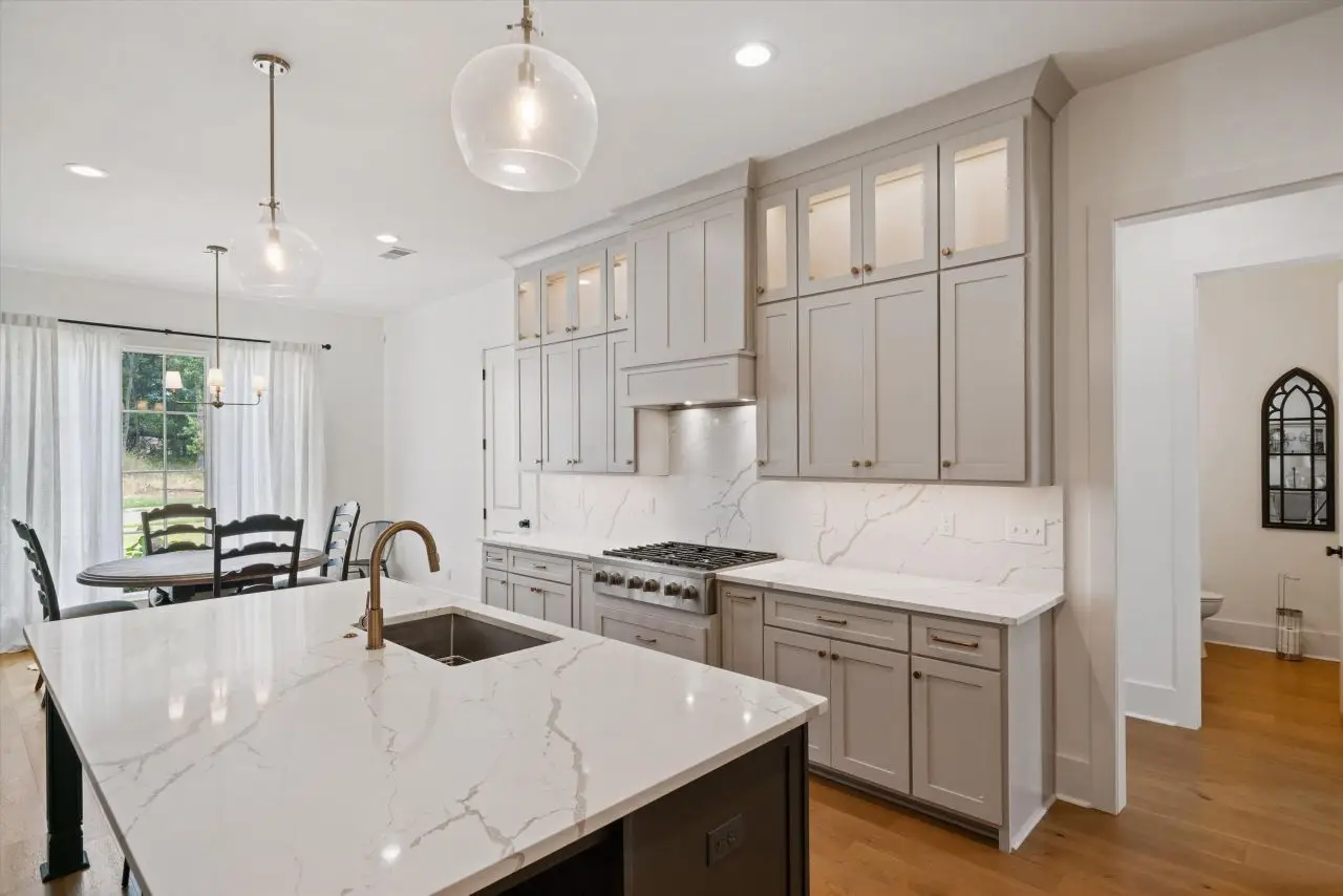 Completed in May 2024 by Griffin Elkington Builder, this stunning Germantown home offers 5 bedrooms and 4.5 baths with 2 bedrooms down. Interiors feature 10-13' ceilings on the main level and 9' upstairs, creating a light, airy feel throughout. The open kitchen boasts quartz countertops, GE Profile appliances, and a six-burner gas cooktop, flowing seamlessly into the living room with fireplace. Upstairs includes a 21' x 19' media room and 22' x 13' playroom. The living space extends to a screened patio with woodburning fireplace, overlooking a gunite pool. The primary suite offers a spa-like bath with soaking tub and dual walk-in closets. Additional highlights include a 3-car garage, 3 HVAC systems, and 2 tankless water heaters.