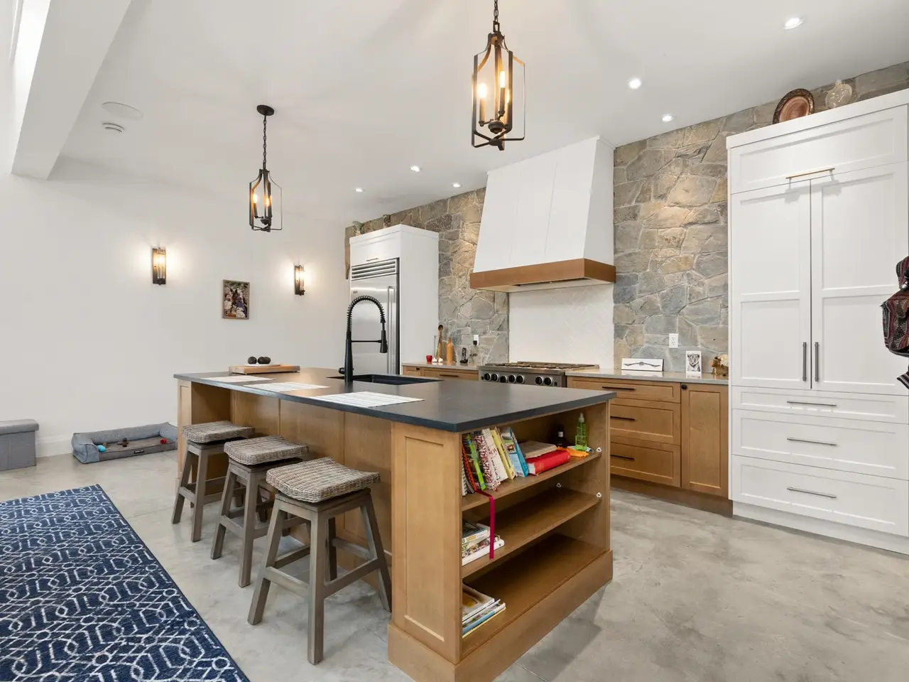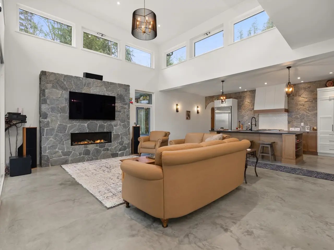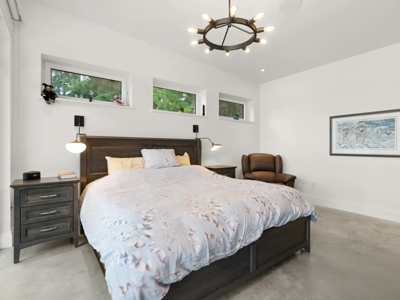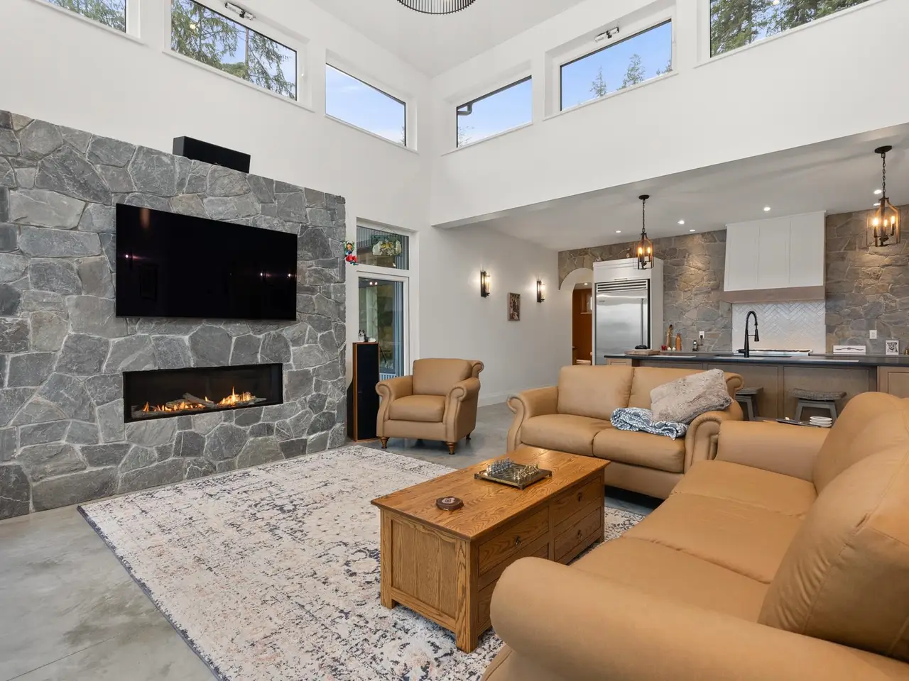 Spectacular views from quality custom-built rancher at end of private road into 4.94 acres. Polished cement floors, 9’ to 12’ ceilings, European tilt and turn windows, custom stonework and arched doorways. Bright gorgeous kitchen, huge island, quartz counters, maple cabinets, Blanco sinks and Kohler faucets. High end stainless steel appliances, gas stove. Large pantry, spacious primary bedroom with walk in closet, five-piece ensuite with double sinks, soaker tub and large double walk-in shower. Media Room and office, each convertible to extra bedrooms. 1500 sq ft patio with splendorous views of the Thornbrough Channel, whale and eagle watching. Two-minute foot access to 215’ of waterfront beach access for swimming and launching kayaks, paddleboards. Zoned for second dwelling and garage wired for EV.