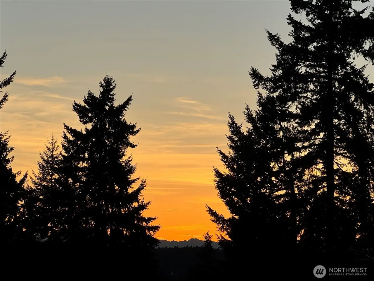 Gorgeous custom home perched above the rest with sunrise & sunset views! Double tiered wood wrapped windows in living room. Hardwood floors carry through majority of main floor. Cozy sitting room & dining room off entry. Chefs kitchen with abundant cabinets, granite slabs, built in eating nook, pantry & access to deck for easy bbqs & private dining among the lush plantings. Main floor Family room could double as game room or Primary on the main with 3/4 bath & sauna. Luxurious primary suite features views of Mt Rainier from private balcony, 5 piece bath with gracious shower, soaking tub & walk-in closet. Lower floor features rec room & 1/2 bath plumbed for shower. 3 car garage has room for workshop. Walking trails & boat launch nearby.