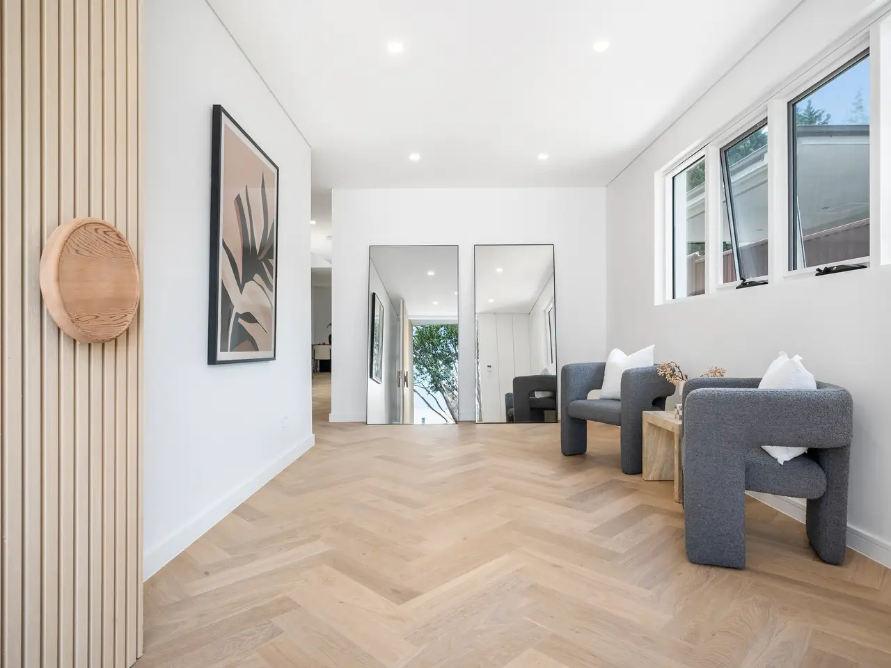Opulent and impressive on the high side of a peaceful street, this newly completed home makes a stunning executive statement at first glance with quality construction and suspended concrete slab. Step inside and be further captivated by its cutting-edge architectural design with glamorous living areas spread over two levels, elegant alfresco entertaining, and a perfect fusion of function and form creating the perfect luxury hideaway. Enjoying close proximity to Gladesville and Putney villages, quality schools and beautiful riverside parks, this is an outstanding family lifestyle opportunity. - Premium spec with herringbone timber floors, skylights, ducted A/C - Soaring 4-metre ceiling in main living, additional upstairs retreat - Marble kitchen benchtops & island, Smeg appliances, butler's pantry - Five bright bedrooms boasting generous robe storage throughout - Three ensuites plus powder room, in-ground water tank - Built-in gas BBQ, secure lockup garage, irrigated gardens - Short walk to restaurants, cafes and city bus stop - Aquatic Centre, Top Ryde Shopping Centre, primary and high schools in easy reach
