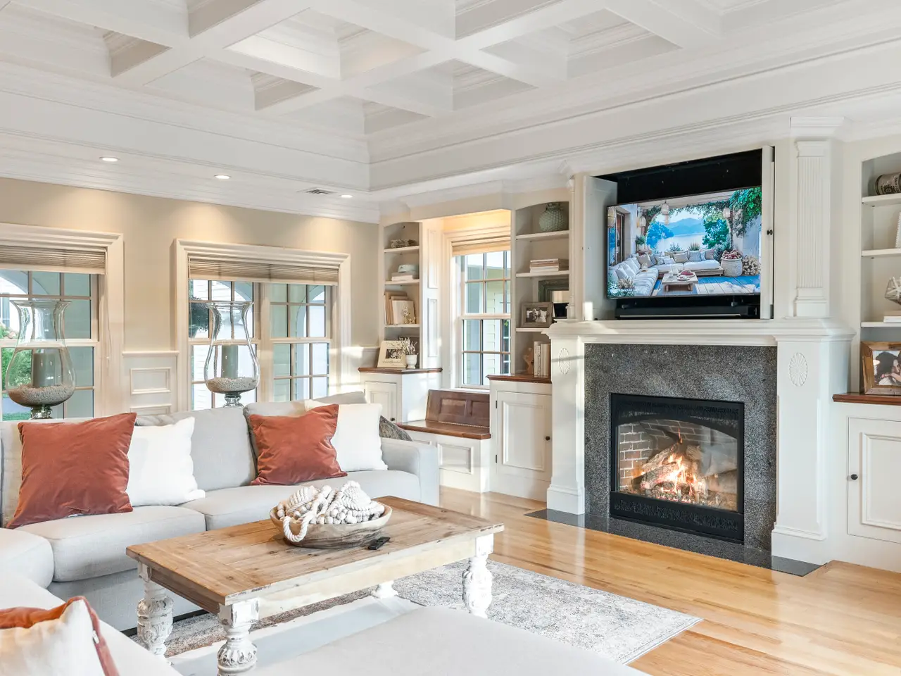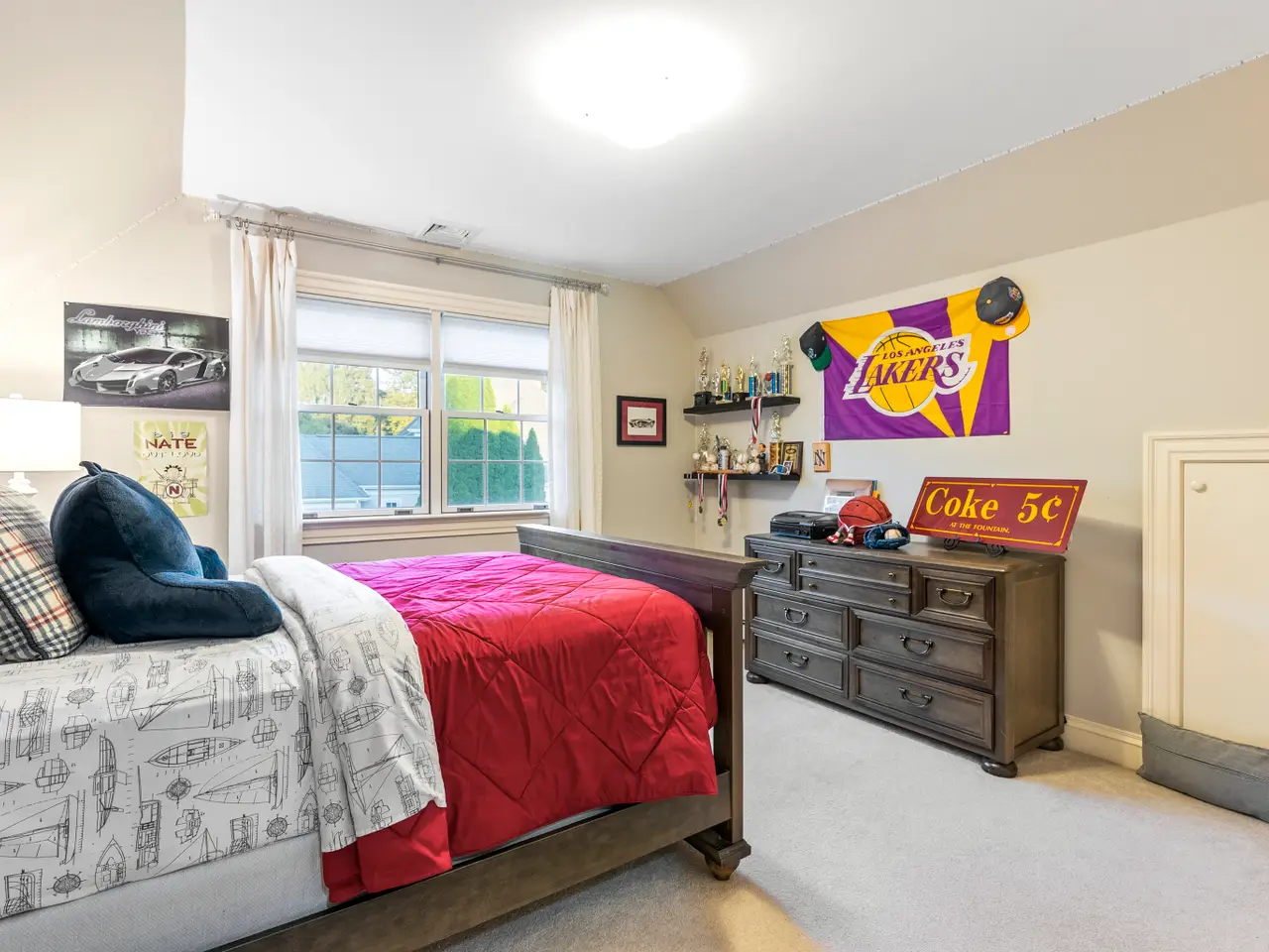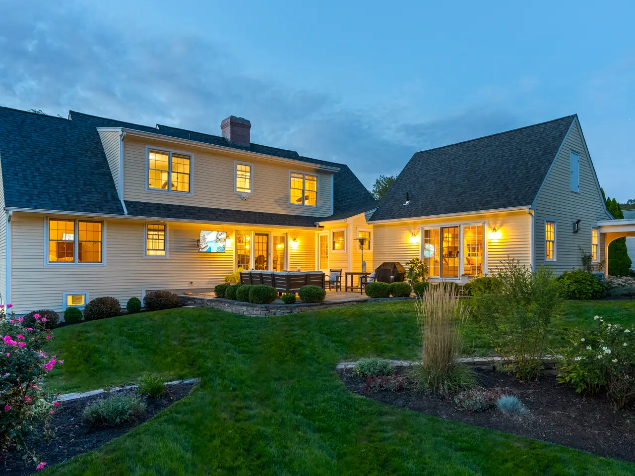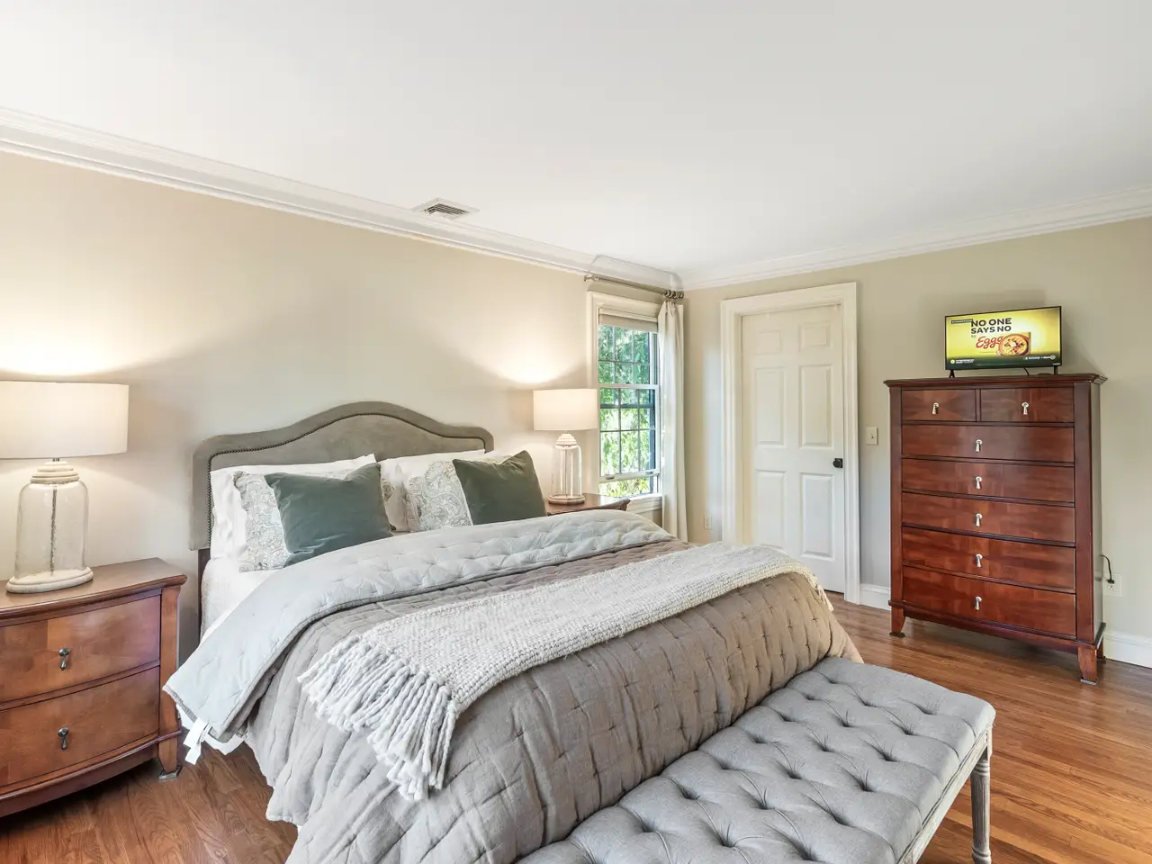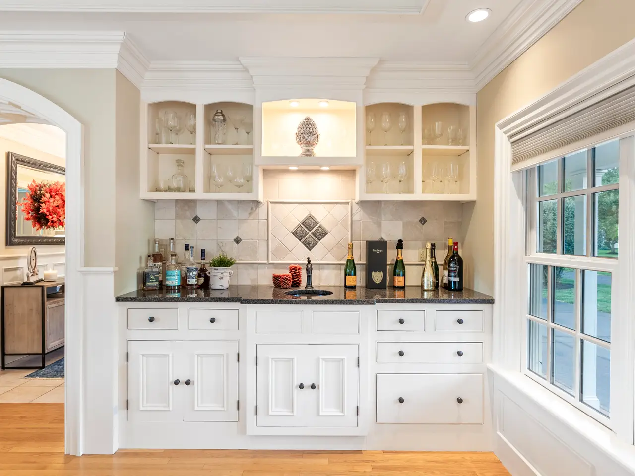 Extensive trim and molding throughout set this stunning custom home apart from any other. Every corner highlight extraordinary trim, detailed architecture, and unmatched craftsmanship. 25 meticulously crafted coffered ceilings, elegant wainscoting, multi-tiered crown molding, arched entryways, and custom inset cabinetry - a level of detail nothing short of phenomenal. Located in the coveted Red Hill neighborhood, homes rarely come on the market. Buyers often reach out to owners to inquire about selling. The home's incredible curb appeal is matched by beautifully landscaped grounds featuring a bluestone patio, outdoor TV, stone walls, fire pit, fountain, vegetable garden, and landscape lighting. Inside, there are three fireplaces that anchor the home's inviting atmosphere, while the custom kitchen offers an oversized island with second sink, two refrigerator drawers, and spacious pantry. Flowing together, the formal living and dining rooms-with a charming wood-burning fireplace-create a perfect setting for entertaining. The first-floor primary suite is exquisitely appointed, with a walk-in closet and a beautifully remodeled bath. The home office is thoughtfully designed with custom shelving, inset cabinetry, and French doors. Upstairs, a renovated full bath serves the secondary bedrooms. 650 sq. ft. finished walk-out lower level provides versatile space for entertaining, playroom, or home. Carefully crafted for both elegance and daily living, this home is truly exceptional.