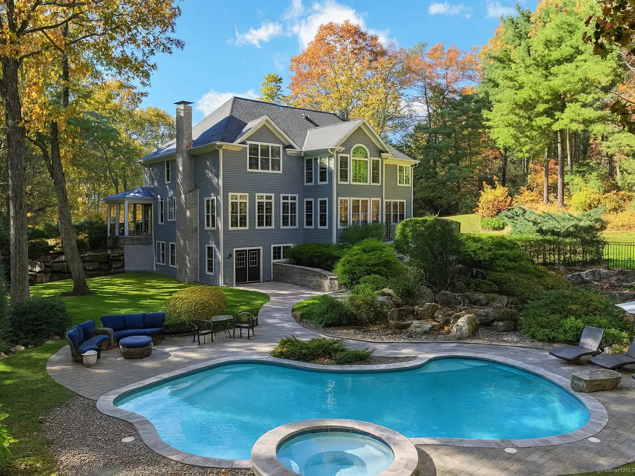 Welcome Home to Lazy Valley Luxury! Step into this custom-built 5-bedroom, 4 full & 2-1/2 bath, masterpiece in the exclusive Lazy Valley neighborhood - where elegance meets everyday comfort. From the welcoming covered front porch to the meticulously landscaped yard and 1-year-old roof with striking metal accents, every detail has been designed to impress. Inside, you'll find gleaming hardwood floors throughout the first level, coffered ceilings in the great room, and fantastic mudroom space. The kitchen is the heart of the home - with walk-in pantry & nearly new high-end appliances that make both entertaining and weeknight meals a joy. The flexible main-floor layout provides options for an in-law suite, home office, or playroom, adapting easily to your lifestyle. Upstairs, enjoy four spacious guest bedrooms and a luxurious primary suite, each with large walk-in closets complement the abundant storage throughout the home. The finished lower level adds approximately 1,600 sq. ft. of living space, complete with a custom bar for entertaining and a dedicated home gym - perfect for fitness and fun without ever leaving home. During the warmer months entertain family and friends next to the gunite pool with patio surrounds. Listen to your favorite tunes inside and out on the homes extensive Sonos speaker system. This exceptional property blends grand design, thoughtful details, and modern convenience - a true gem in one of the area's most sought-after neighborhoods. HOA Fee is $1,000 annually. This includes maintenance of roads in the neighborhood, snow removal on neighborhood roads and care of entry sign and gazebo. *Newer HVAC, 1 year old roof, newer appliances.