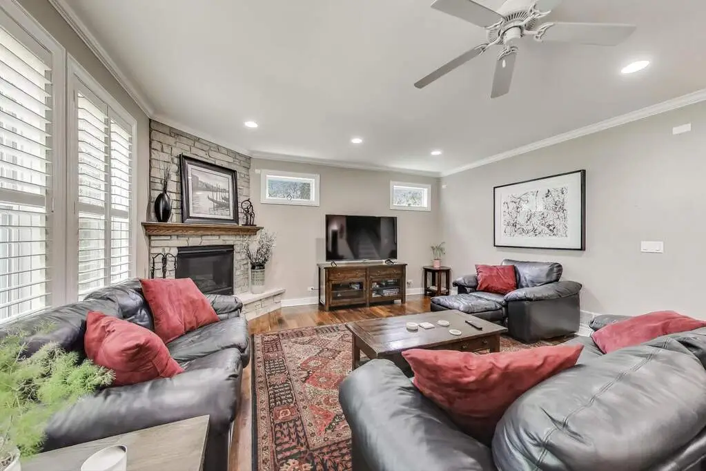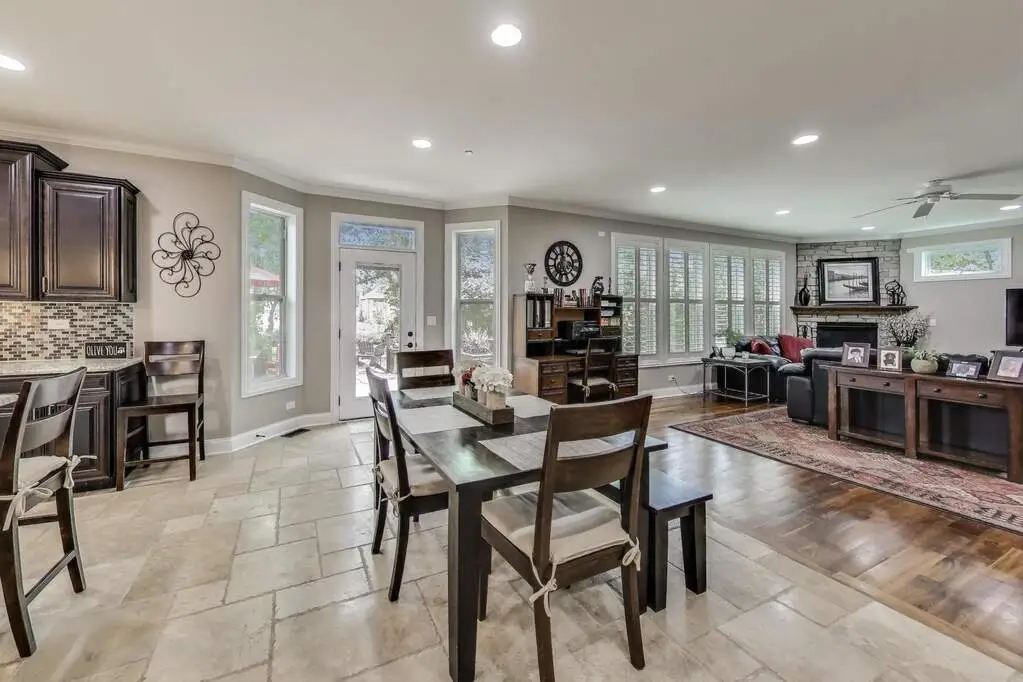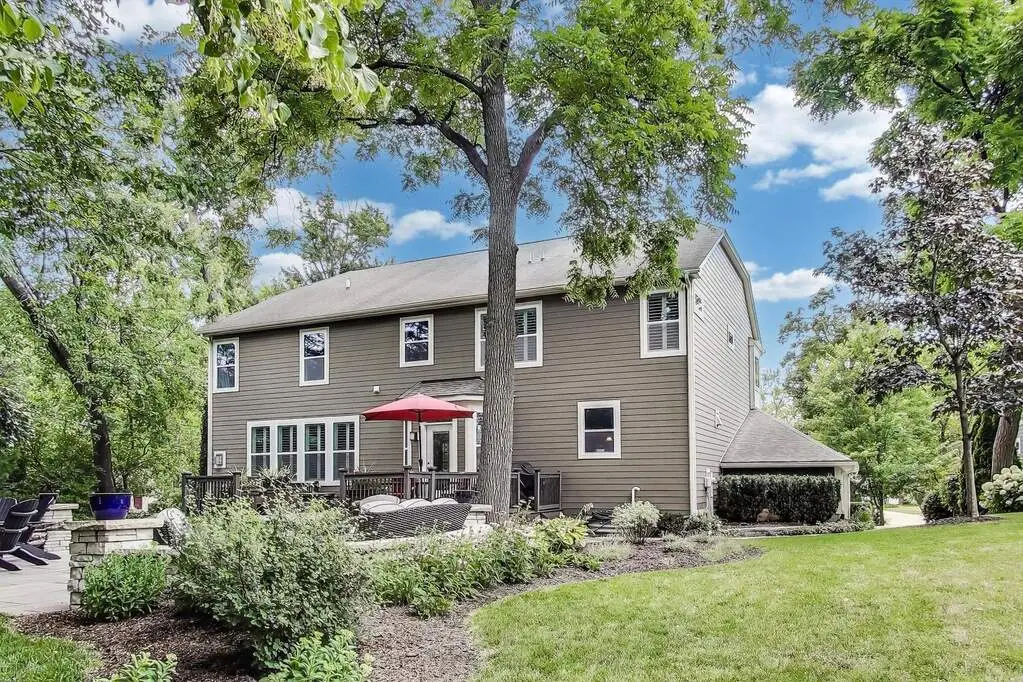 East Coast elegance meets Midwestern charm in this beautifully crafted shingle-style residence, ideally located just blocks from vibrant downtown amenities-including restaurants, boutique shops, the train, and top-rated schools. This one owner home, built in 2014, 5,700 sq.ft approx. was thoughtfully designed for modern living, featuring an open-concept main floor and a spacious backyard ideal for entertaining. From the inviting front porch to the moment you step through the front door, you'll be struck by the attention to architectural detail throughout. The heart of the home is a stunning family room anchored by a stone fireplace, seamlessly flowing into the kitchen and dining area. Expansive windows throughout flood the interior with natural light, creating a warm and welcoming atmosphere. Upstairs, the second level offers generously sized bedrooms, each with excellent closet space and access to multiple bathrooms and a well appointed laundry room. The luxurious primary suite is tucked away in its own private wing and features two walk-in closets, and a spa-inspired bathroom. The fully finished lower level is equally impressive, offering a custom wet bar, stylish ambient lighting, a fifth bedroom, and abundant storage. Step outside to a beautifully landscaped backyard complete with a deck and slate patio-perfect for outdoor gatherings. Additional highlights include an attached three-car garage with a fourth tandem space, offering ample room for vehicles and storage. This exceptional home combines timeless style, modern comforts, and a highly desirable location. A must-see property for discerning buyers.