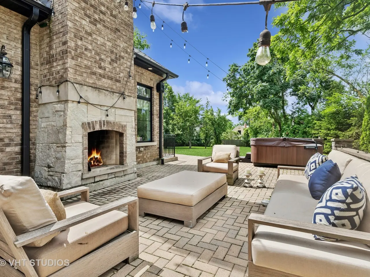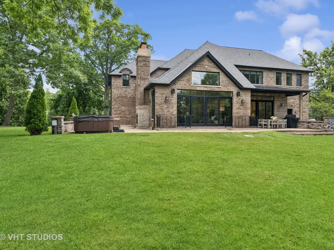 Welcome to an extraordinary residence, a true masterpiece of design and craftsmanship, perfectly situated on a secluded 0.74-acre professionally landscaped lot. This exquisite 5-bedroom home, with potential for a 6th in the basement, 4.1-bathroom brick and stone home offers an unparalleled living experience, blending luxurious finishes with a warm, inviting atmosphere. Step inside and discover a spacious open floor plan, meticulously designed to maximize natural light. The heart of this home is the chef's kitchen, a culinary dream featuring top-of-the-line appliances, custom cabinetry, and ample counter space. It seamlessly overlooks a magnificent living room, where soaring cathedral ceilings create an awe-inspiring sense of volume and an elegant backdrop for entertaining or quiet relaxation. Each of the generously sized bedrooms is a sanctuary of comfort, with many vaulted ceilings that enhance their spacious feel. The finished lower level extends the living space significantly, offering versatile areas for recreation, media, or a home gym, all kept cozy with the luxurious comfort of radiant floor heating. Outdoor living is equally impressive. A massive wrap-around patio provides an idyllic setting for dining and entertaining, complete with a charming outdoor fireplace that invites cozy evenings under the stars. The expansive yard offers endless possibilities for outdoor activities and the enjoyment of nature. Practicality meets luxury with a host of additional features including a convenient mudroom, a spacious walk-in pantry, and a three-car garage, providing ample storage and organizational solutions. This home is not just a dwelling; it's a lifestyle, meticulously crafted for those who appreciate the finest in residential living. A must-see property that truly embodies elegance and comfort.