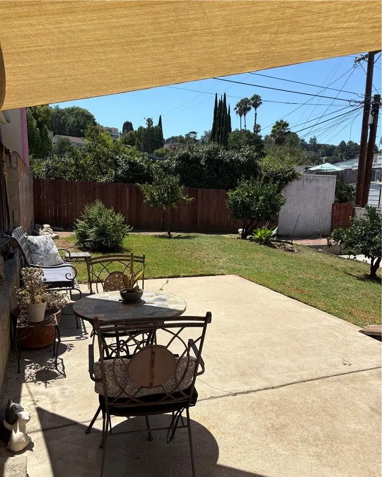 Private rear yard with fruit trees