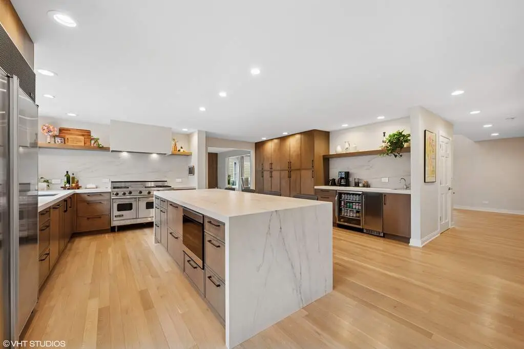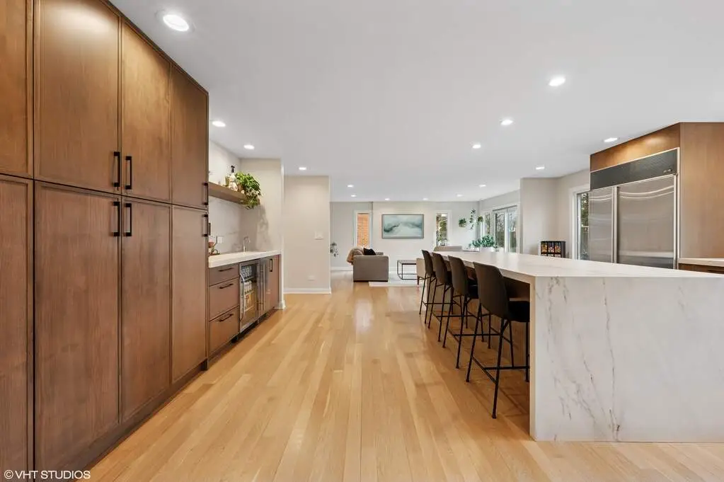Walk your kids to school and the beautiful Avoca Park playground next door! The interior of this home is infused with gorgeous natural light and a masterfully crafted flow. A spectacular custom kitchen to accommodate any chef, with a large waterfall island, Viking stove, Sub-Zero refrigerator and wet bar. Oversized dining room made for special gatherings and holidays. The picturesque living room is surrounded by vaulted ceilings and a cozy wood burning fireplace. The second floor features four bedrooms and three full bathrooms, a custom laundry room with two washer and dryers that makes laundry a breeze in half the time. Also a large bonus room with skylights that can be used as a playroom, gym, or guest room. Open the double doors to a large primary bedroom on a separate wing of the upper level, with two walk-in closets, spa-like bathroom with dual sinks, stand up shower and jacuzzi tub. The finished basement is almost 2,300 square feet with access to the backyard and an additional fireplace to unwind. Plenty of storage areas including a walk-in cedar closet as well as a shelved area spanning the length of the lower level. Get creative in a current music studio that can easily be used as another office or bedroom. The large, fenced-in yard is professionally landscaped with blooming perennials that highlight the beauty of this outdoor space. Gather your loved ones and friends as you venture out on the brick patio, with plenty of space for entertaining or enjoying a quiet evening in the backyard of this tranquil East Glenview neighborhood home. Take a stroll or bike to the Harms Woods Forest trail just minutes away. With easy access to the highway, Old Orchard mall, Wilmette Recreation Center and more, don't miss an opportunity to own this one-of-a-kind home in the New Trier School district, contact your agent and schedule a showing today!