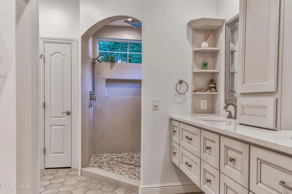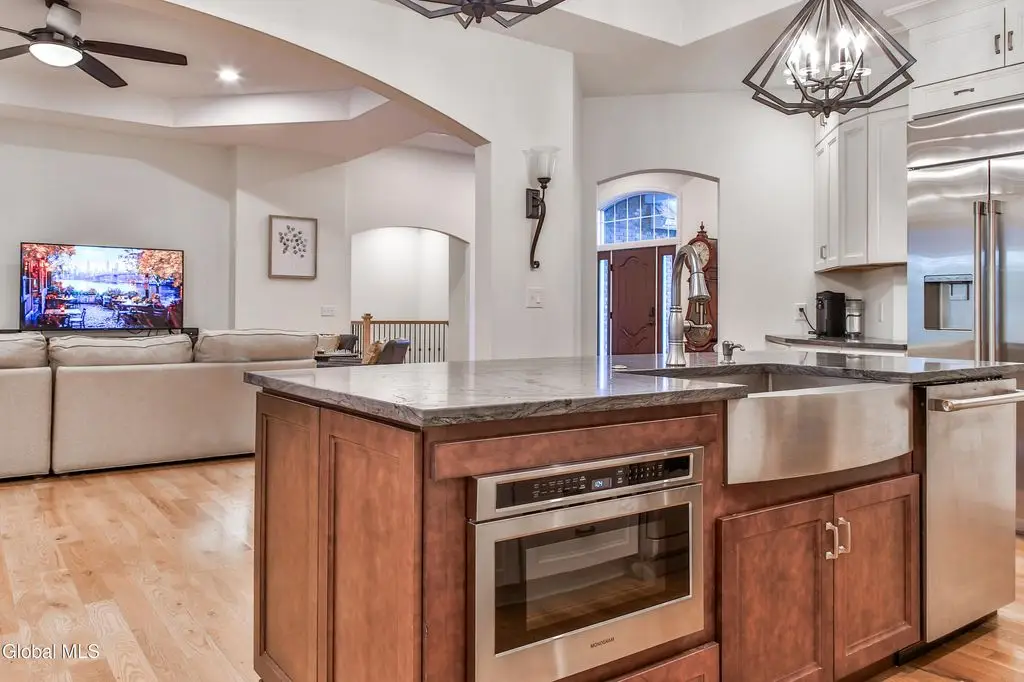 Experience refined living in this 4 bed, 2.5 bath 4,100+ SF custom-designed home featuring a stunning brick & stone facade, open floor plan, archways, and extra rooms throughout. Nestled in a quiet community with a tranquil pond, this property boasts custom countertops, premium GE Monogram appliances, plywood cabinetry, and a seamless mix of modern and traditional styles. Cathedral and vaulted ceilings enhance the spacious feel, while the finished walkout basement includes an entertainment center, office, and playroom. Enjoy outdoor living with a saltwater pool, outdoor kitchen, stamped concrete, and mature landscaping. Includes washer/dryer, real hardwood floors, walk-in closets, guest suites, and energy-efficient utilities. 50+ year roof warranty included. TRULY A+ Backyard Vacation