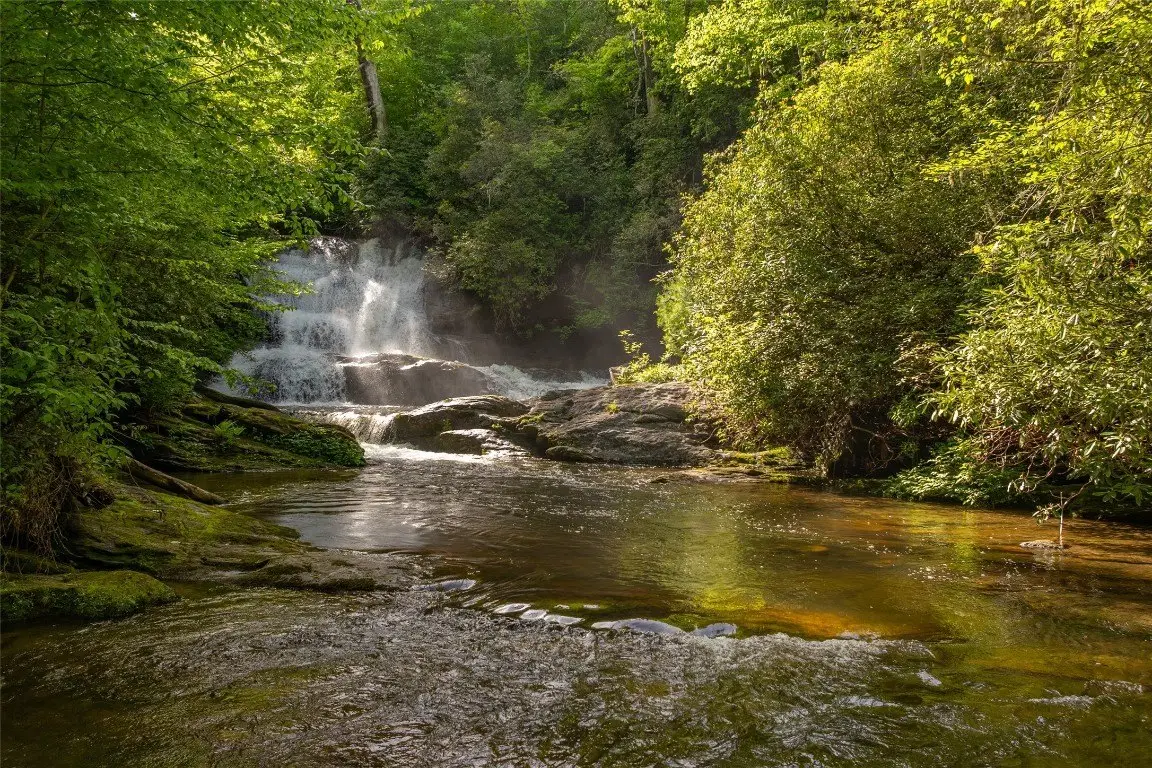 Experience the beauty of the Blue Ridge Mountains with this extraordinary almost 18-acre property featuring a 35-foot waterfall and approximately 1,800 feet of frontage on trout-filled Robinson Creek. Located in the private, gated community of Laurel Falls, this rare opportunity offers exceptional living, unmatched privacy, and direct access to pristine wilderness. With multiple homesites to choose from, the property is perfect for a family compound, a private retreat, or a corporate escape. One of the sites boasts westerly mountain views, while the other offers the chance to build near the waterfall. Both sites have prior three-bedroom septic approvals and are surrounded by estate-sized parcels to enhance the sense of seclusion. This property can be subdivided up to three times. The community of Laurel Falls ensures security through gated access and oversight by a homeowners' board. Residents can enjoy a private stretch of Robinson Creek for fishing as well as direct trail access to the 6,300-acre Panthertown Valley — often called “The Yosemite of the East” — which is ideal for hiking, biking, and horseback riding. With low annual assessments and a modest 1,000 square feet minimum building requirement, this property offers a rare opportunity to build a dream mountain cabin or estate in an untouched, wildlife-rich setting.