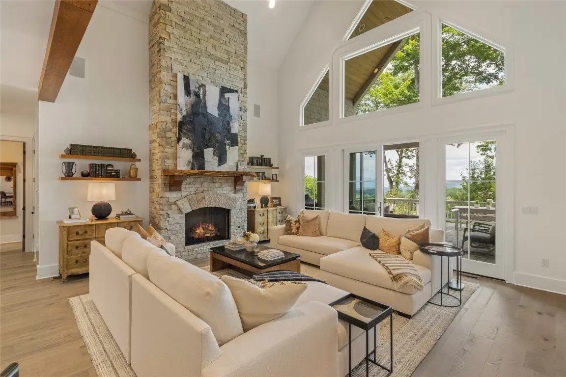 Perched at a breathtaking 4,300 feet in elevation, this stunning mountain home in Glenridge offers sweeping panoramic views over miles of untouched national forest. Nestled beside the vibrant Chinquapin community and bordering the serene Panthertown National Forest, Glenridge is a small, private estate enclave just 8 easy miles from the Cashiers Crossroads — the perfect blend of privacy and convenience. This impeccably maintained, turnkey home is the epitome of mountain elegance, combining cozy cottage charm with high-end finishes and designer furnishings throughout. The inviting carport leads to a spacious mudroom with abundant storage and a seamless entry to the kitchen — ideal for storing hiking boots and easily unloading groceries. One of the standout features is the expansive three-season screened porch, which functions as a second living room. Complete with a wood-burning fireplace and custom screens, it's a warm and inviting space for year-round enjoyment. Just outside, an open porch leads to a beautifully landscaped and hardscaped fire pit area — perfect for gathering under the stars. All three bedrooms offer ensuite full bathrooms, and there's an additional private bonus room with its own bathroom — ideal for flexible use. Every finish throughout the home is custom, high-quality, and thoughtfully curated. Situated on just under three lush, beautifully landscaped acres with a flat driveway and easy access, the property is as practical as it is picturesque. Peaceful, private, and perched "on top of the world," this mountain sanctuary is truly a must-see to appreciate its beauty and craftsmanship.