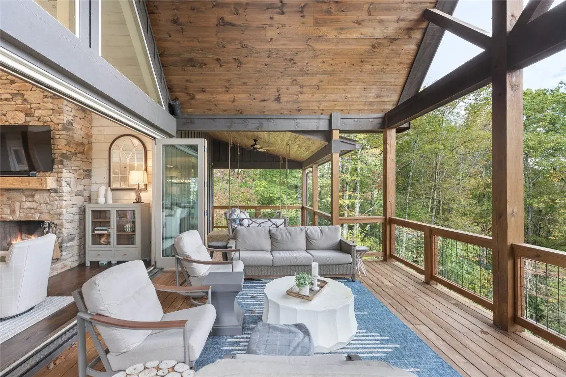 Experience an upscale outdoor lifestyle in the Chinquapin gated community. This home is situated at the end of a cul-de-sac on 3.28 acres with stunning long-range views from its spacious upper and lower decks. On the main level, large folding accordion doors open to the porch, filling the open living and dining area with natural light and beauty. This space features a striking stone wood fireplace, vaulted ceilings, and impressive design elements throughout. The spacious kitchen blends functionality with aesthetics, creating a feeling of openness and connection within the area. The main covered deck is equipped with a grand stone wood-burning fireplace for warmth and ample space for entertaining and dining. Inside, the main level features a luxurious primary suite, while the spacious lower level includes three bedrooms, two bathrooms, and plentiful space for hosting gatherings and relaxing. The lower-level family room opens to a large lower deck with a hot tub - providing further possibilities for entertaining or enjoying the mountain views. The community of Chinquapin offers a perfect blend of social and outdoor amenities while preserving the privacy of a classic mountain home. With miles of trails, pickleball courts, a driving range, fishing facilities, a dog park, and a clubhouse featuring fun social spaces, a fitness room, and a calendar of seasonal parties, there are plenty of activities for everyone. With its spacious porch to enjoy an evening drink after a day of outdoor adventures and take in the stunning long-range views, this property offers the ultimate mountain experience.