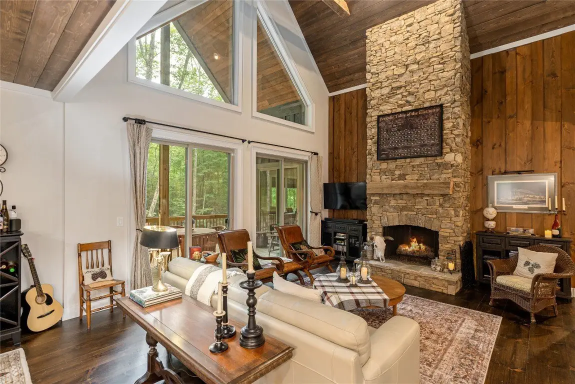 Experience the perfect harmony of easy outdoor living and tranquility at 1582 New Settler's Way, a mountain retreat crafted by Fern Creek Builders. Located in the desirable Chinquapin community, this three-bedroom, three-and-a-half-bathroom home offers a rare opportunity to own a piece of paradise, where classic mountain finishes blend seamlessly with serene natural surroundings. Inside, a thoughtfully designed floor plan features a welcoming rocking-chair front porch, two cozy fireplaces, abundant natural light, and low-maintenance finishes throughout. The spacious gourmet kitchen connects to a warm living area, perfect for entertaining or relaxing. An indoor-outdoor lifestyle is highlighted by a screened-in porch, a grill deck, and a stone firepit — ideal for enjoying starry mountain nights. The property borders a winding creek and is complemented by the gentle sounds of a nearby waterfall, making it an ideal retreat to spend time in nature. Whether enjoying a morning coffee on the porch or relaxing by the fire, the setting offers quiet serenity. Additional features include an attached two-car garage, ample storage, spacious ensuite guest bedrooms, and access to community outdoor amenities within the gated Chinquapin community. Chinquapin spans an impressive 2,000 acres with more than 700 acres dedicated to permanent conservation. This community offers park-like living with a host of unparalleled amenities. Scenic trails for hiking, biking, and utility terrain vehicles provide for an outdoor lifestyle, while fishing opportunities are available in the community’s lakes and streams. Pickleball courts, a disc golf course, and a driving range are also available just moments away. The Outpost Clubhouse provides a fitness facility, cozy gathering spaces, and seasonal live music during the vibrant Summer Concert Series. Whether relaxing by the firepit, canoeing along tranquil waters, or exploring the unspoiled natural surroundings, Chinquapin presents countless ways to connect with nature and neighbors alike. Offering unmatched ease of access compared with other available lots, this move-in-ready property at 1582 New Settler's Way promises exceptional peace, privacy, and refined mountain living, whether as a full-time residence or a mountain retreat.