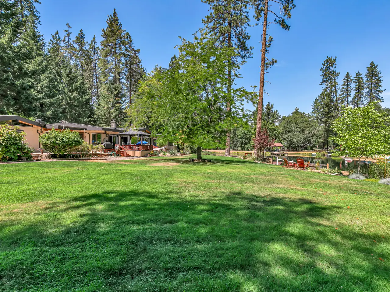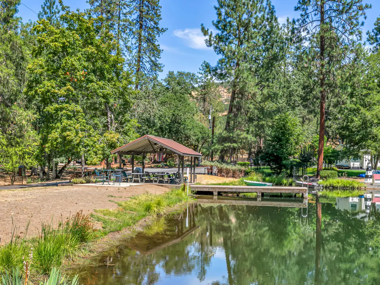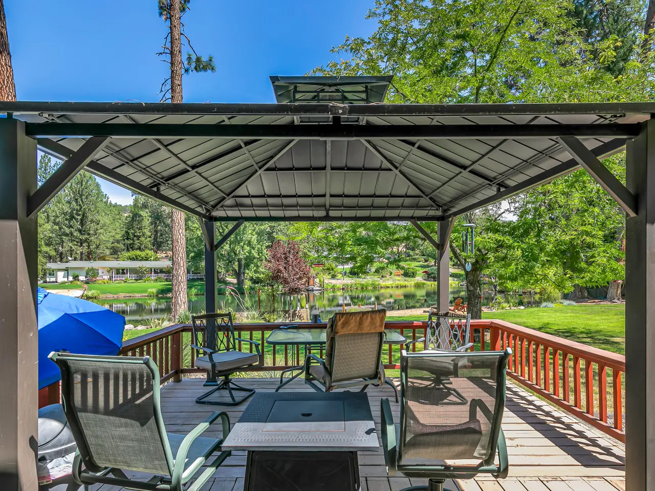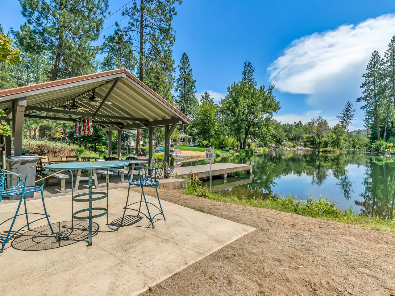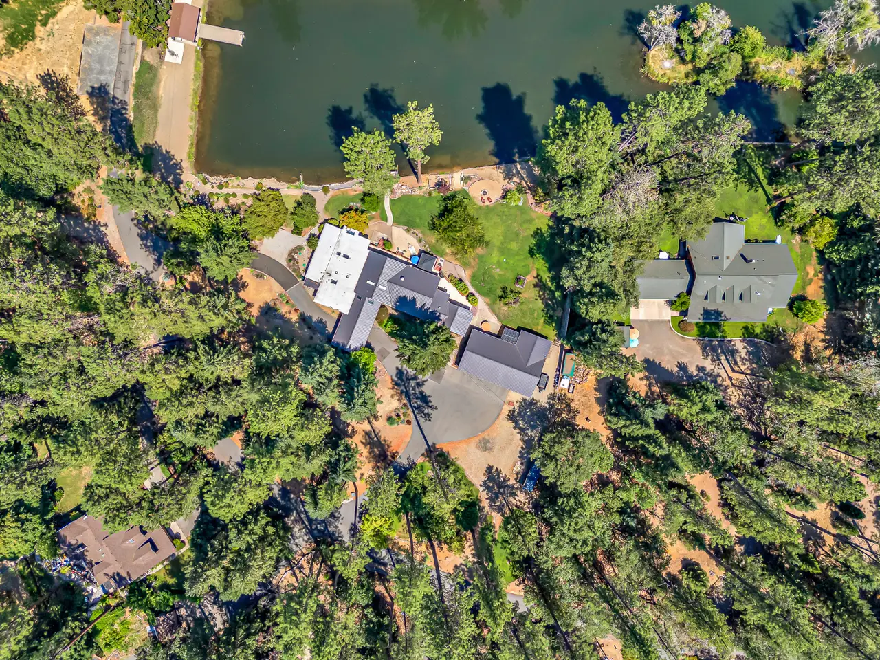 Located in the Gold Rey Estates Subdivision (only 10 mins from town), this 3200+ sq ft single level estate borders a private lake (350+ ft of lake frontage) that features 5 bedrms, 4.5 bathrms, 1.51 level acre lot w/ water rights, open floor plan, chef's kitchen (granite countertops, large island, custom Hawaiian Koa cabinetry w/ built-in pull-outs, tile flooring, large pantry w/ rotating shelving), vaulted ceilings, attached guest quarters (separate entrance way, full bathrm, bedrm, vaulted ceilings), detached 3 car garage, circular asphalted driveway, large deck, attached carport, & full RV hook ups! Owner spared no expense towards remodeling the entire primary bathroom w/ a spacious tiled walk-in shower, 3 sinks, & walk-in closet, installing metal roofs on the house, detached garage, & workshop, & enhancing the landscape. Seller is offering a one-year home warranty with an acceptable offer!
