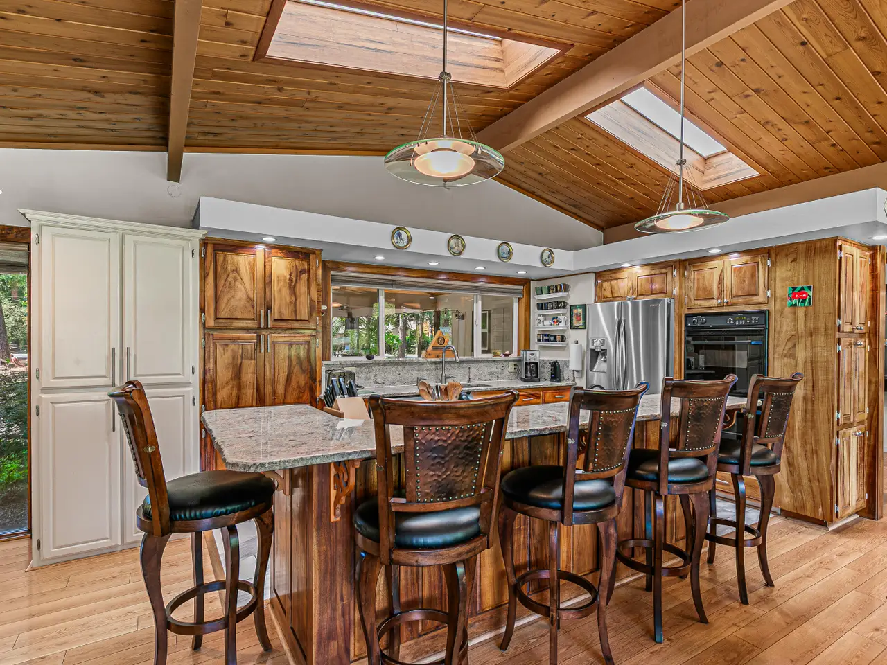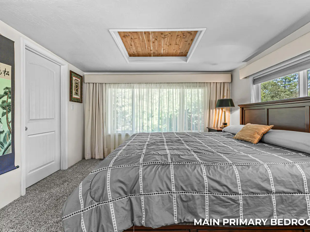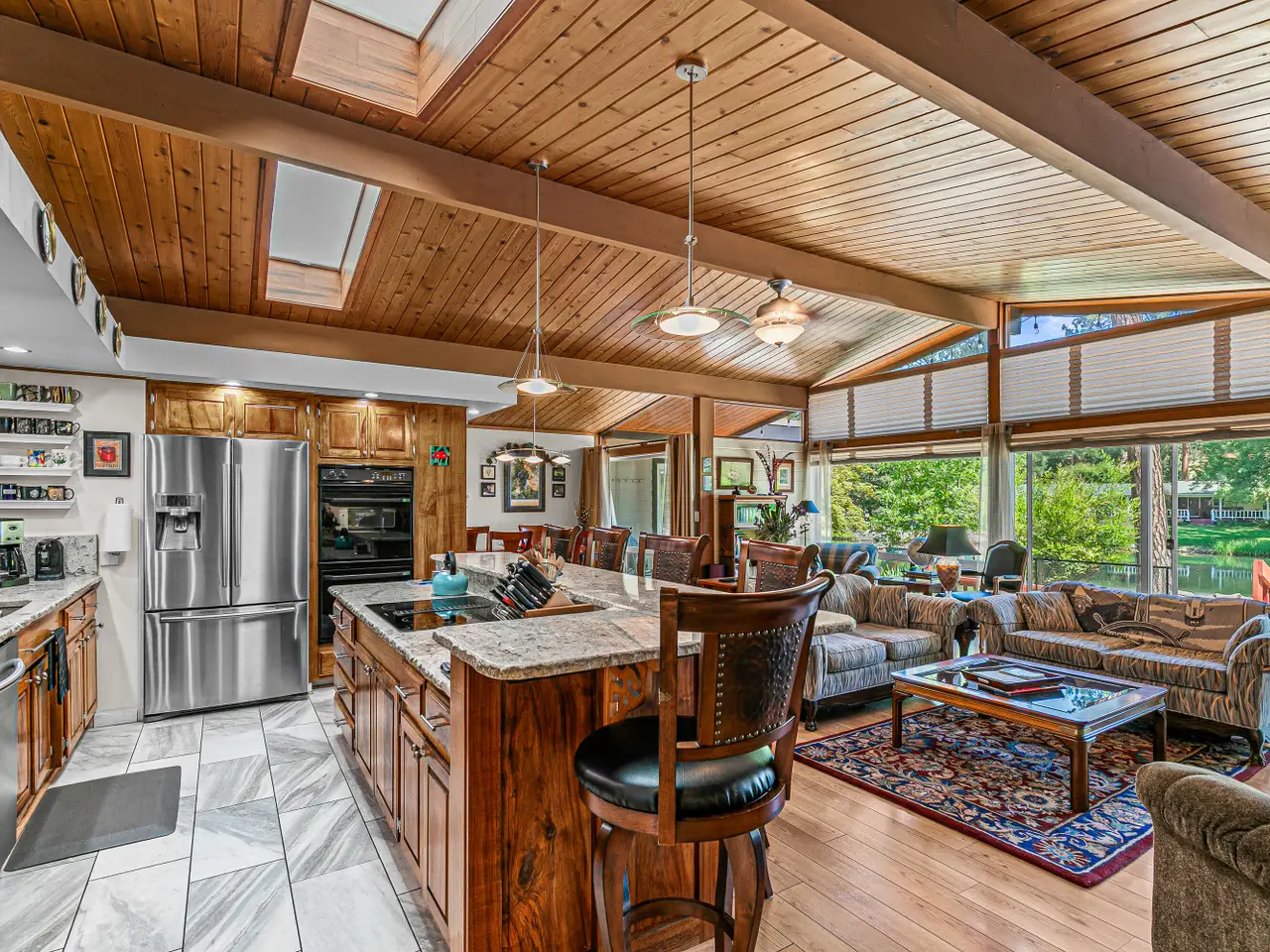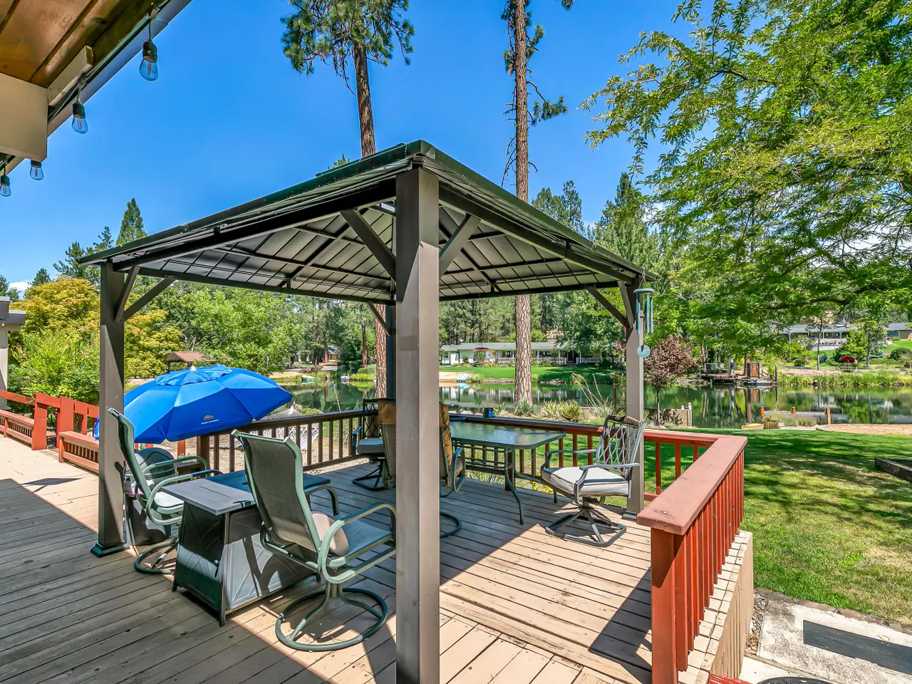 Located in the Gold Rey Estates Subdivision (only 10 mins from town), this 3200+ sq ft single level estate borders a private lake (350+ ft of lake frontage) that features 5 bedrms, 4.5 bathrms, 1.51 level acre lot w/ water rights, open floor plan, chef's kitchen (granite countertops, large island, custom Hawaiian Koa cabinetry w/ built-in pull-outs, tile flooring, large pantry w/ rotating shelving), vaulted ceilings, attached guest quarters (separate entrance way, full bathrm, bedrm, vaulted ceilings), detached 3 car garage, circular asphalted driveway, large deck, attached carport, & full RV hook ups! Owner spared no expense towards remodeling the entire primary bathroom w/ a spacious tiled walk-in shower, 3 sinks, & walk-in closet, installing metal roofs on the house, detached garage, & workshop, & enhancing the landscape. Seller is offering a one-year home warranty with an acceptable offer!