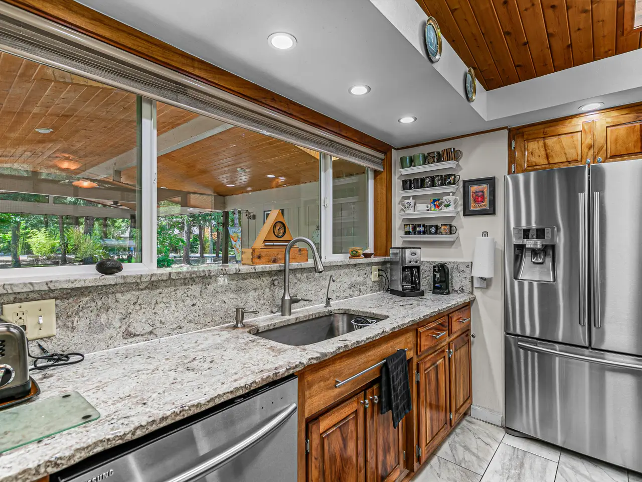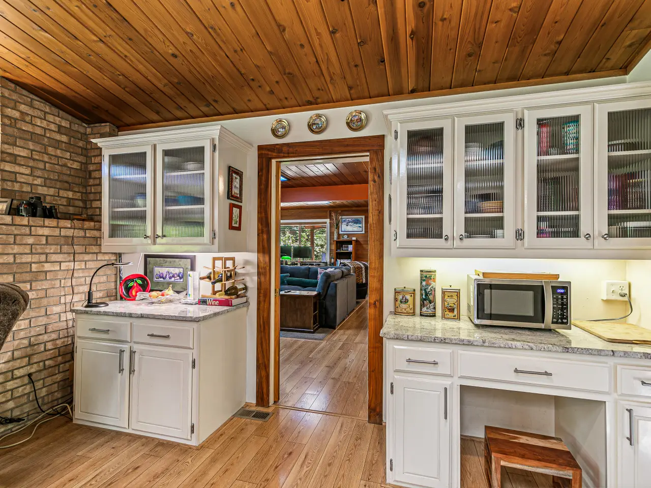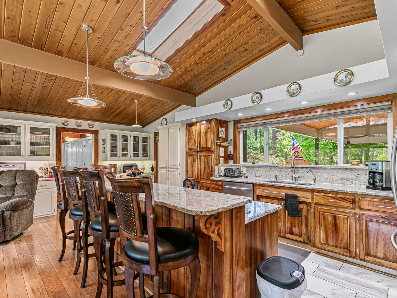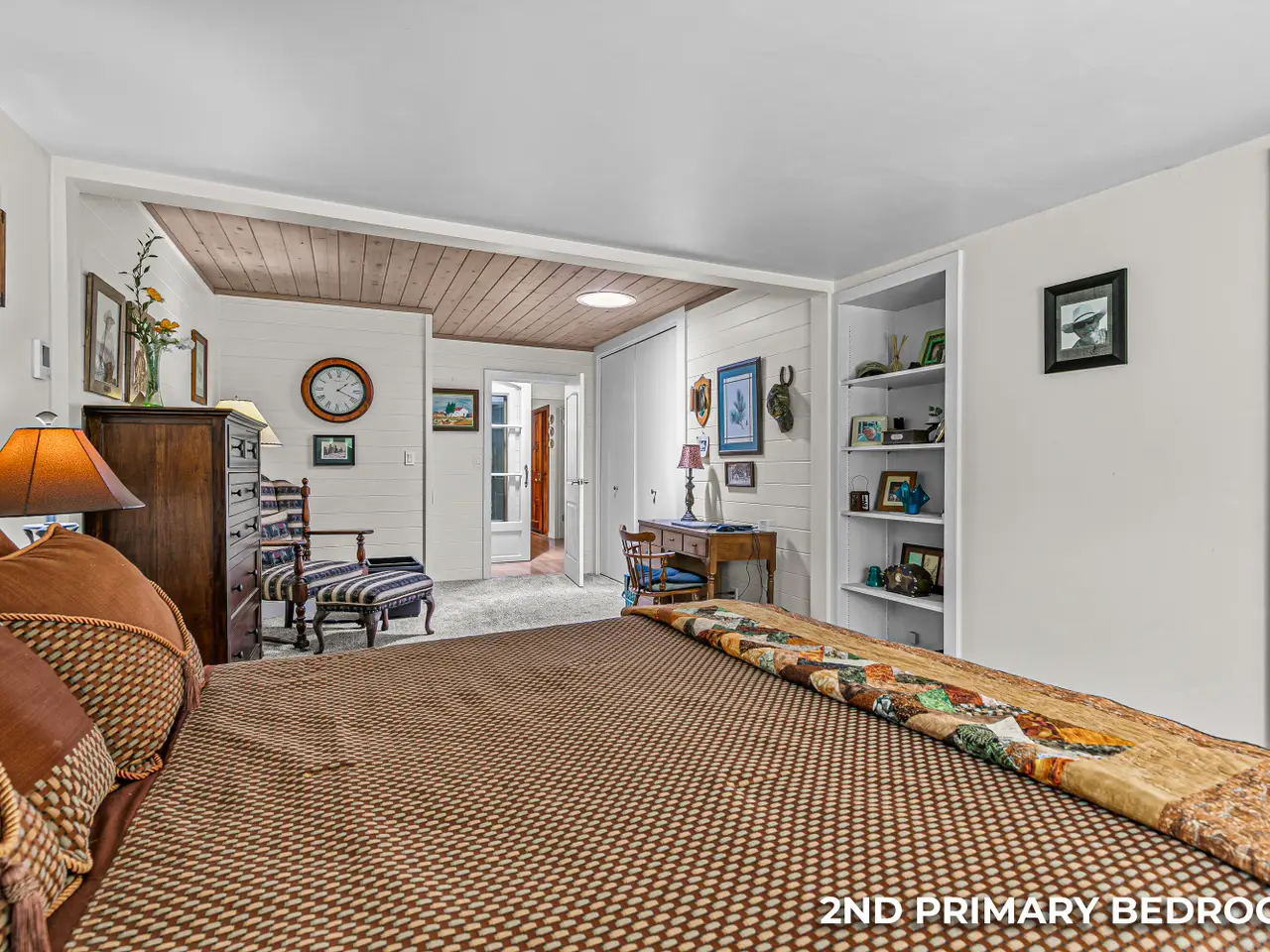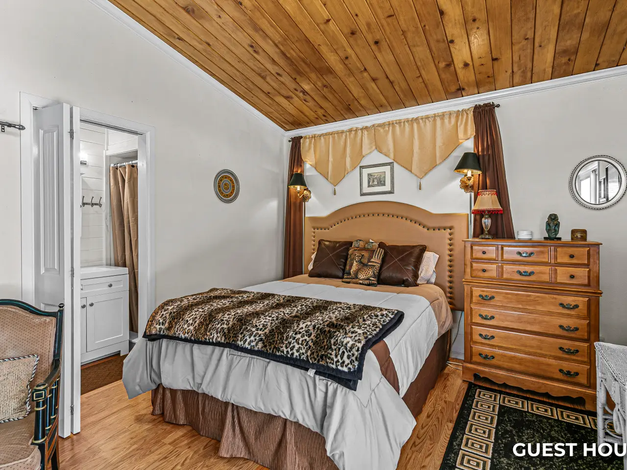 Located in the Gold Rey Estates Subdivision (only 10 mins from town), this 3200+ sq ft single level estate borders a private lake (350+ ft of lake frontage) that features 5 bedrms, 4.5 bathrms, 1.51 level acre lot w/ water rights, open floor plan, chef's kitchen (granite countertops, large island, custom Hawaiian Koa cabinetry w/ built-in pull-outs, tile flooring, large pantry w/ rotating shelving), vaulted ceilings, attached guest quarters (separate entrance way, full bathrm, bedrm, vaulted ceilings), detached 3 car garage, circular asphalted driveway, large deck, attached carport, & full RV hook ups! Owner spared no expense towards remodeling the entire primary bathroom w/ a spacious tiled walk-in shower, 3 sinks, & walk-in closet, installing metal roofs on the house, detached garage, & workshop, & enhancing the landscape. Seller is offering a one-year home warranty with an acceptable offer!