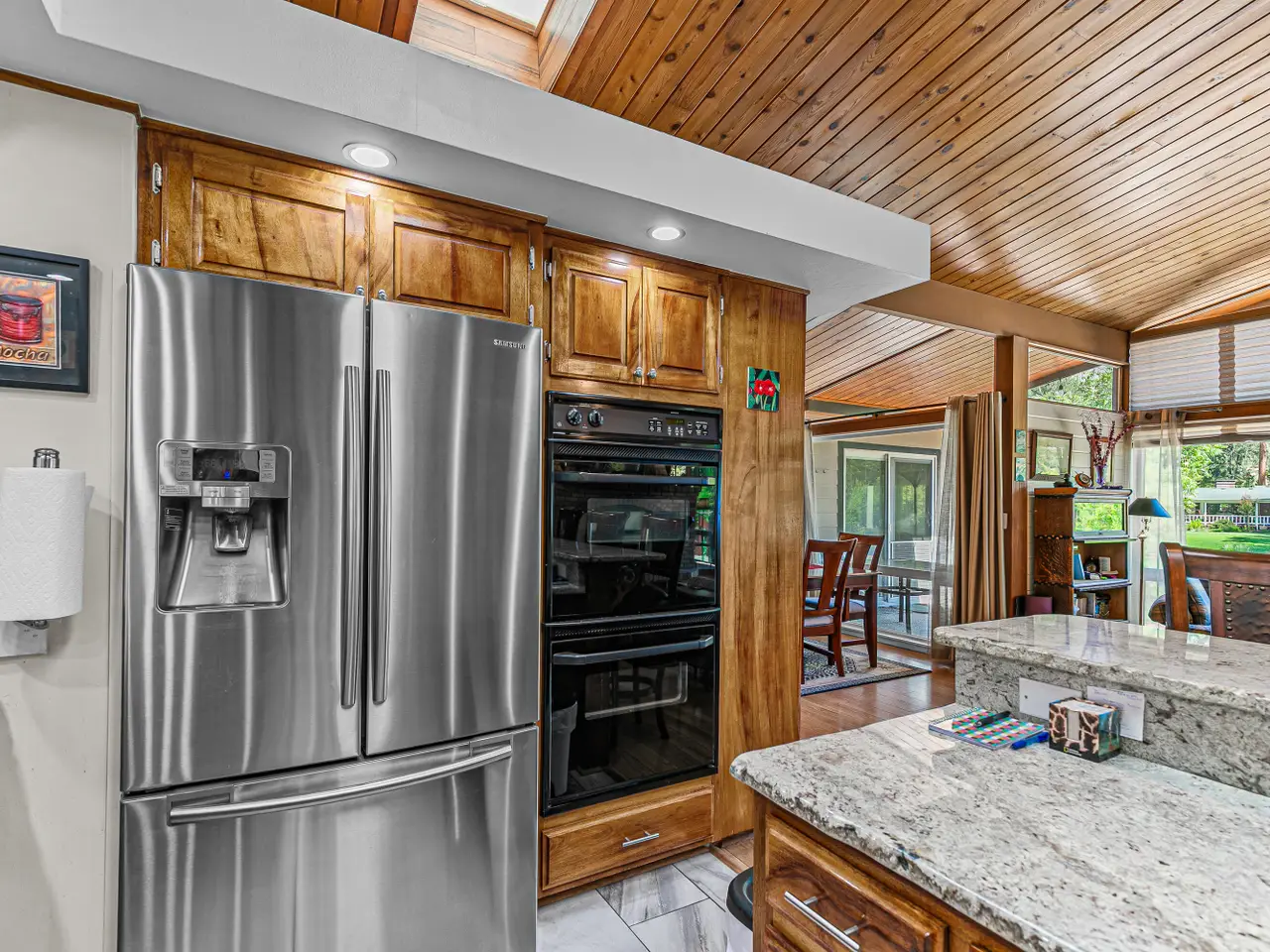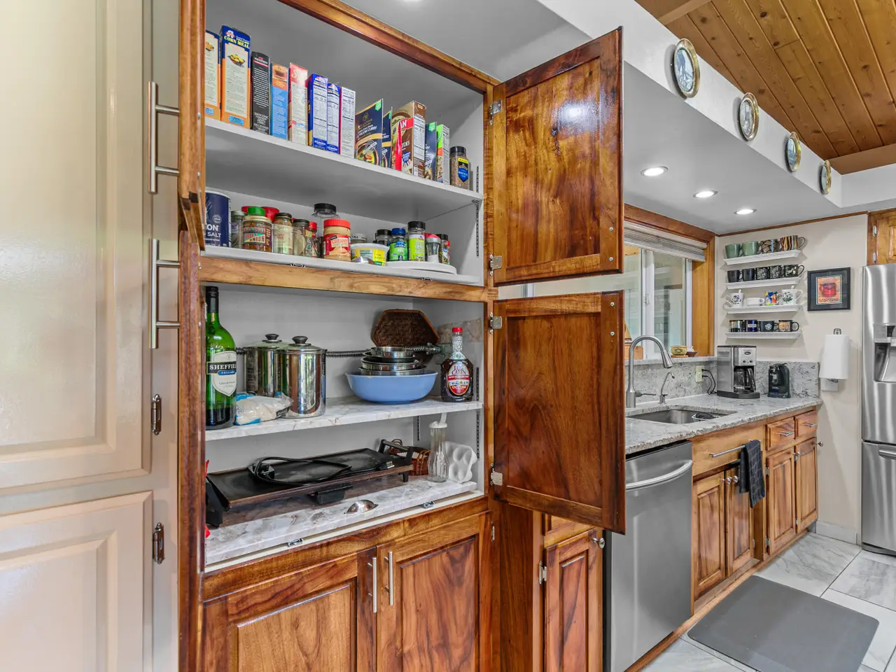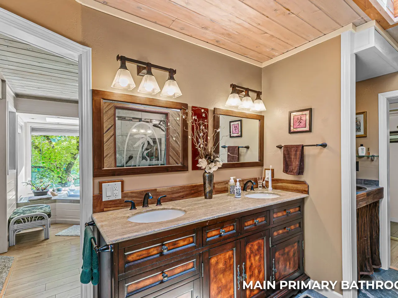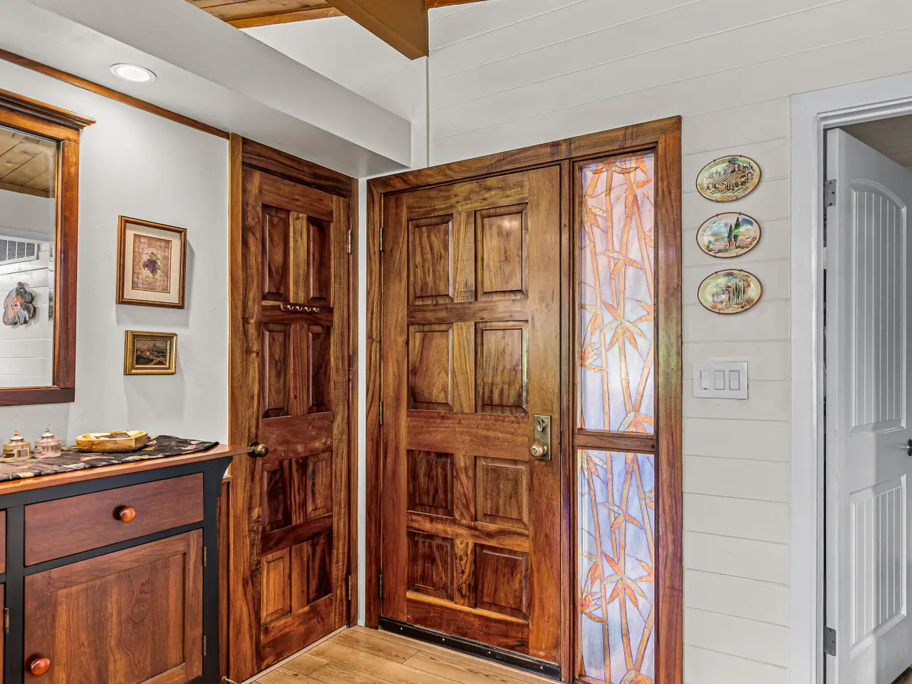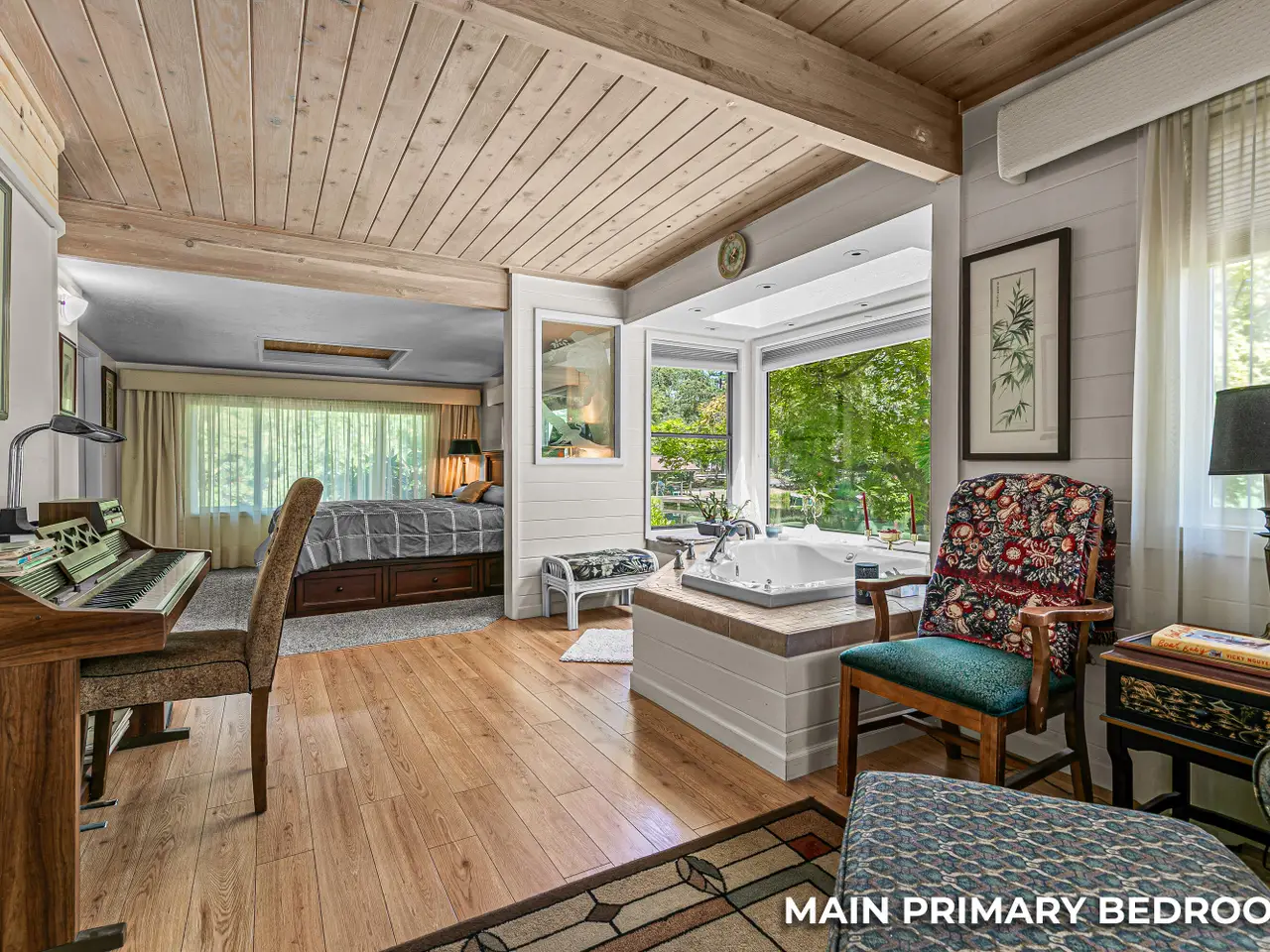 Located in the Gold Rey Estates Subdivision (only 10 mins from town), this 3200+ sq ft single level estate borders a private lake (350+ ft of lake frontage) that features 5 bedrms, 4.5 bathrms, 1.51 level acre lot w/ water rights, open floor plan, chef's kitchen (granite countertops, large island, custom Hawaiian Koa cabinetry w/ built-in pull-outs, tile flooring, large pantry w/ rotating shelving), vaulted ceilings, attached guest quarters (separate entrance way, full bathrm, bedrm, vaulted ceilings), detached 3 car garage, circular asphalted driveway, large deck, attached carport, & full RV hook ups! Owner spared no expense towards remodeling the entire primary bathroom w/ a spacious tiled walk-in shower, 3 sinks, & walk-in closet, installing metal roofs on the house, detached garage, & workshop, & enhancing the landscape. Seller is offering a one-year home warranty with an acceptable offer!