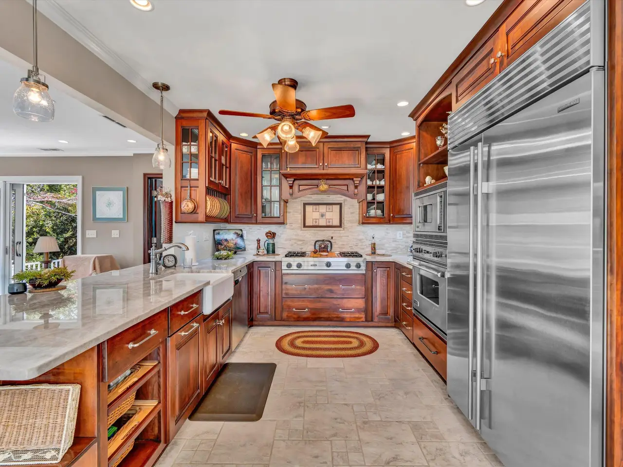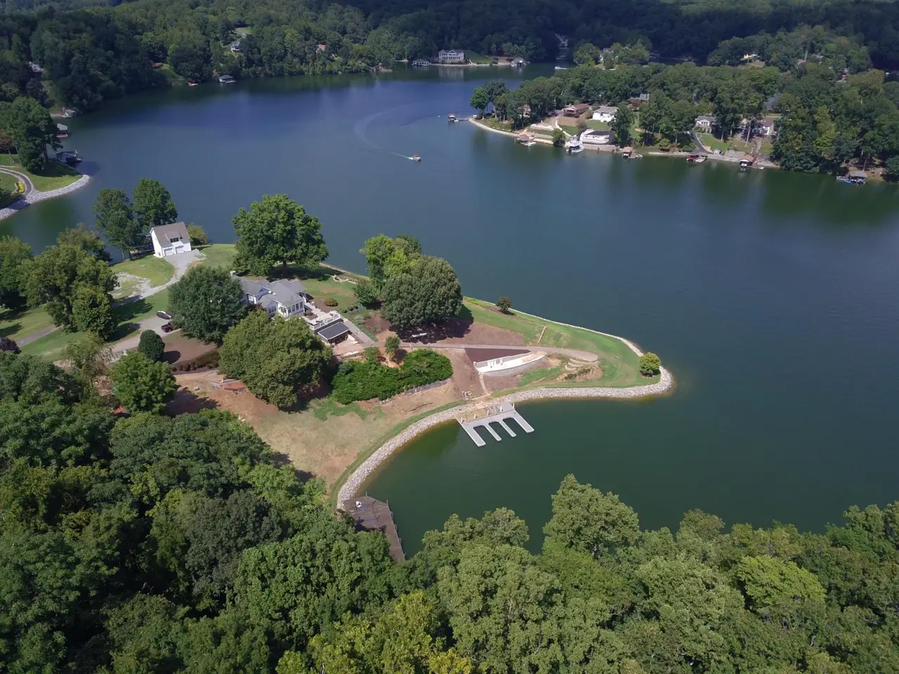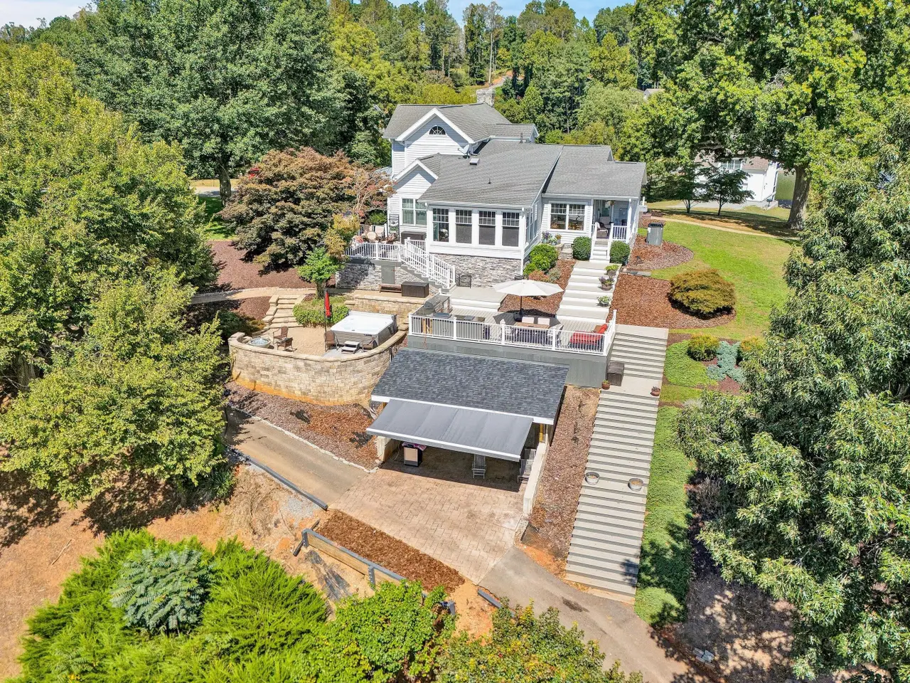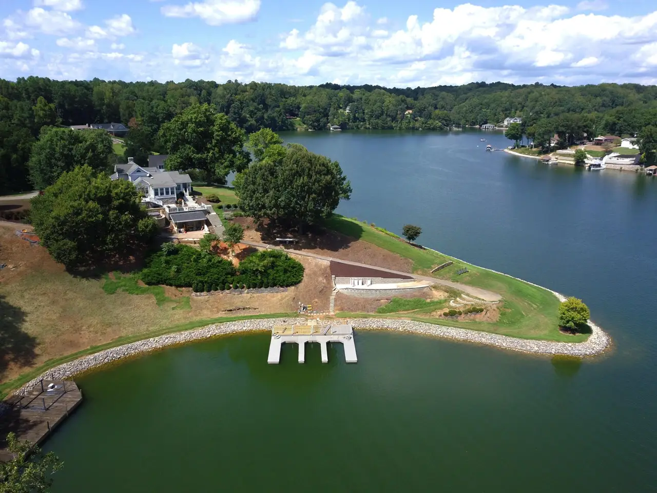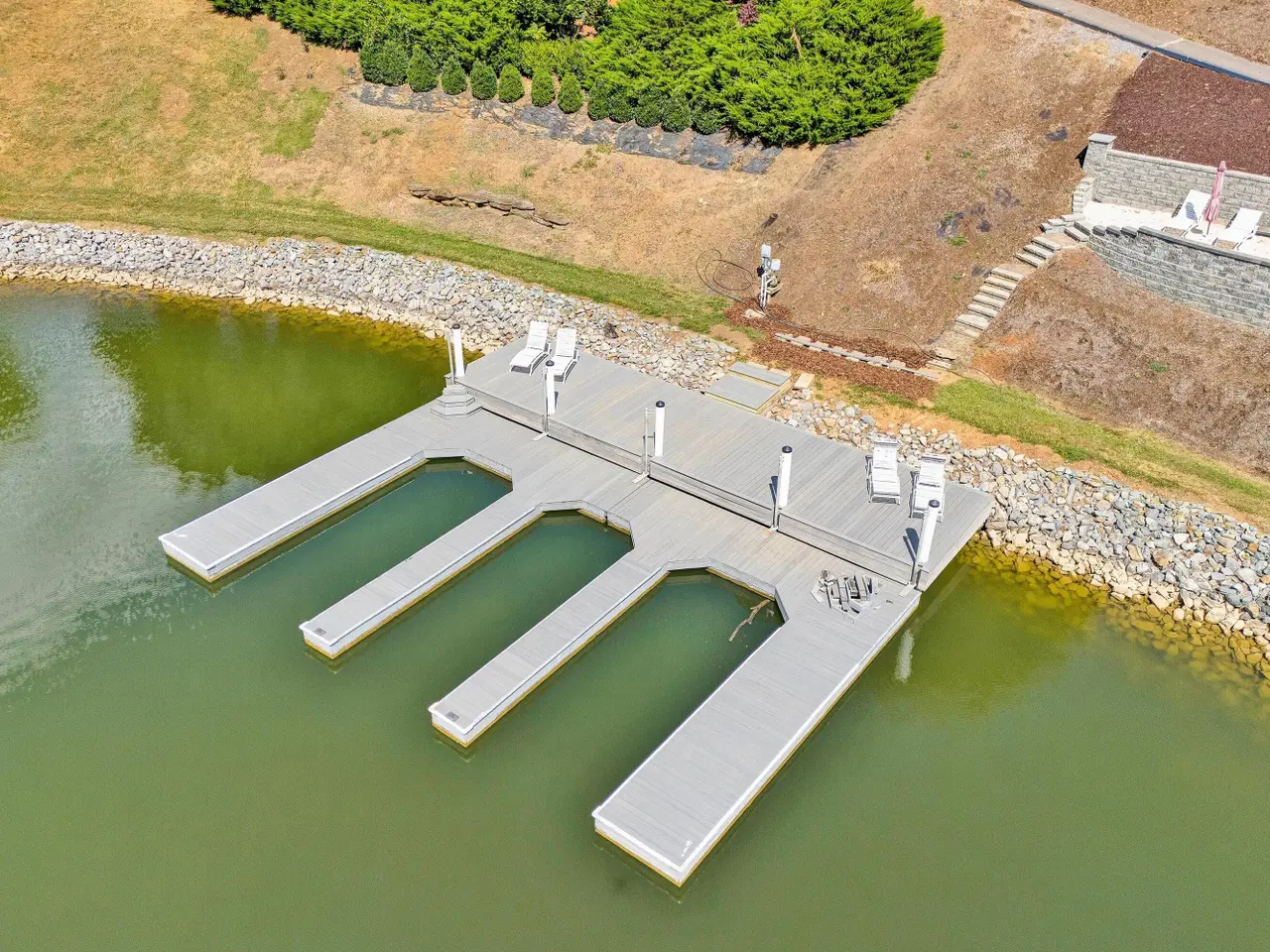 Lakefront Estate with Gorgeous Modern Farmhouse, Renovated in 2006. Beautiful Point with 700 ft of Shoreline, 3 Boatslips, Gourmet Kitchen with Luxury Ss Appliances including Subzero and Viking Gas Cooktop .Great Room w/ Wraparound glass overlooking the Lake. Wine & Coffee Bar, Bob Timberlake Stone Gas Fireplace, Entry Level Primary Ensuite w/Electric FP, Tiled Walkin Shower, Pella Windows & Doors, Incredibile Views, Multiple outdoor entertainment space including Cabana, Trex decks and patios including outdoor kitchen, hot tub and fire pit. Gated Entry.