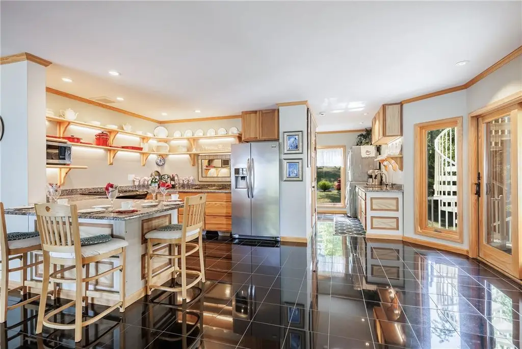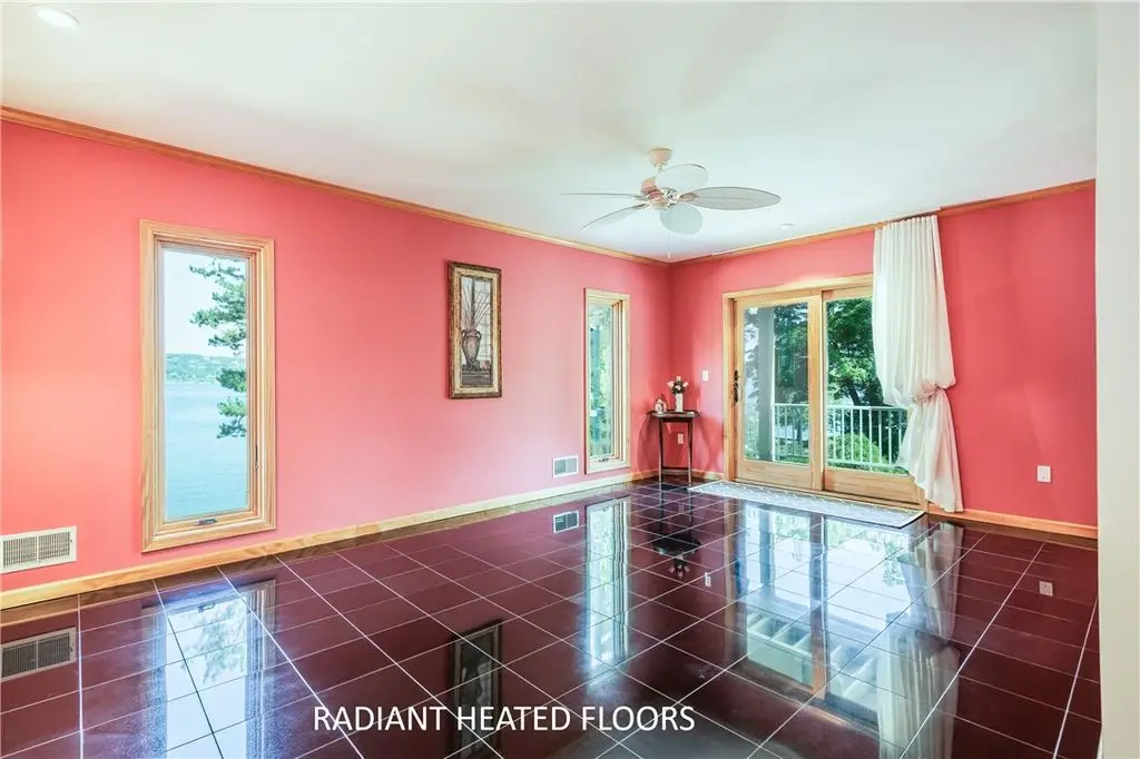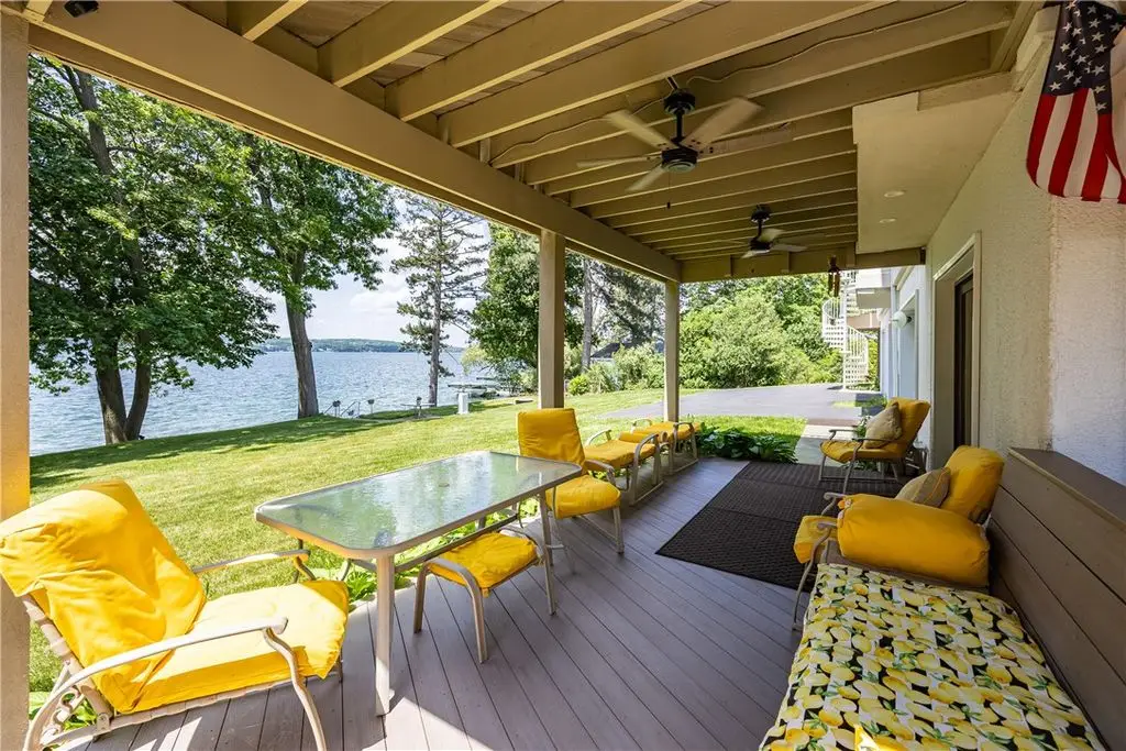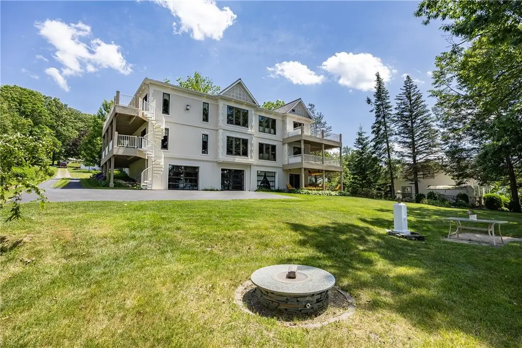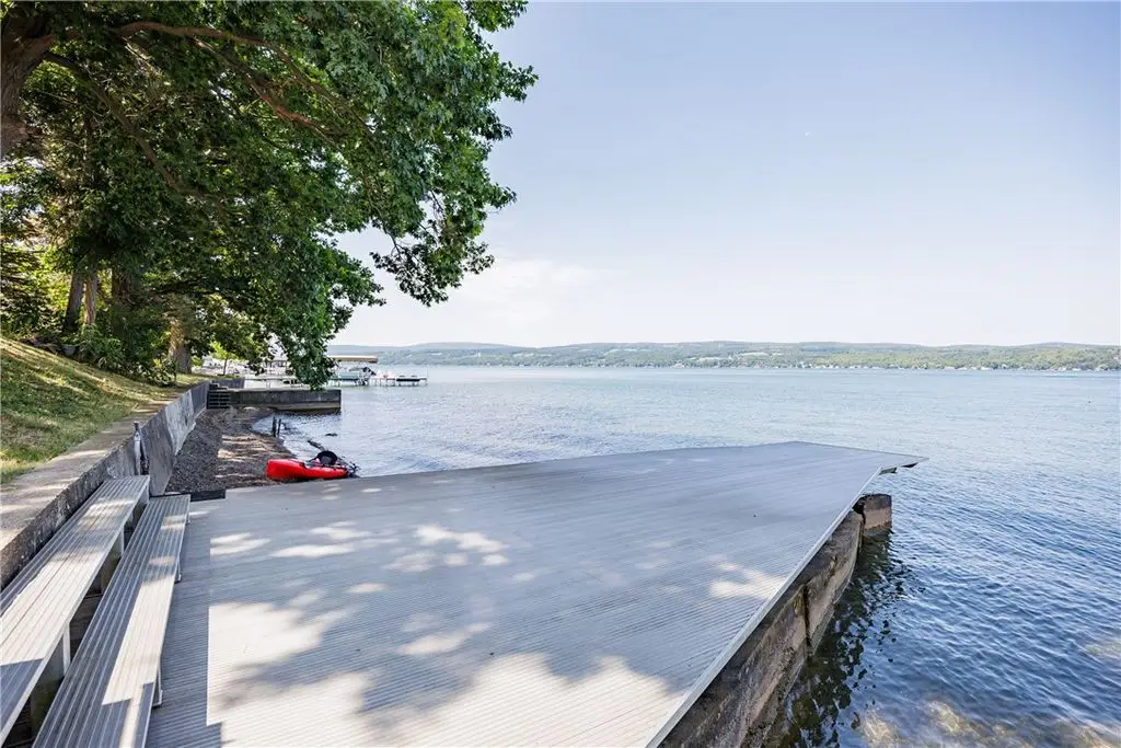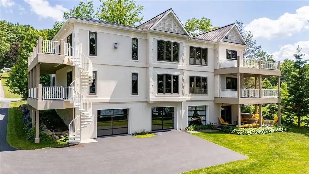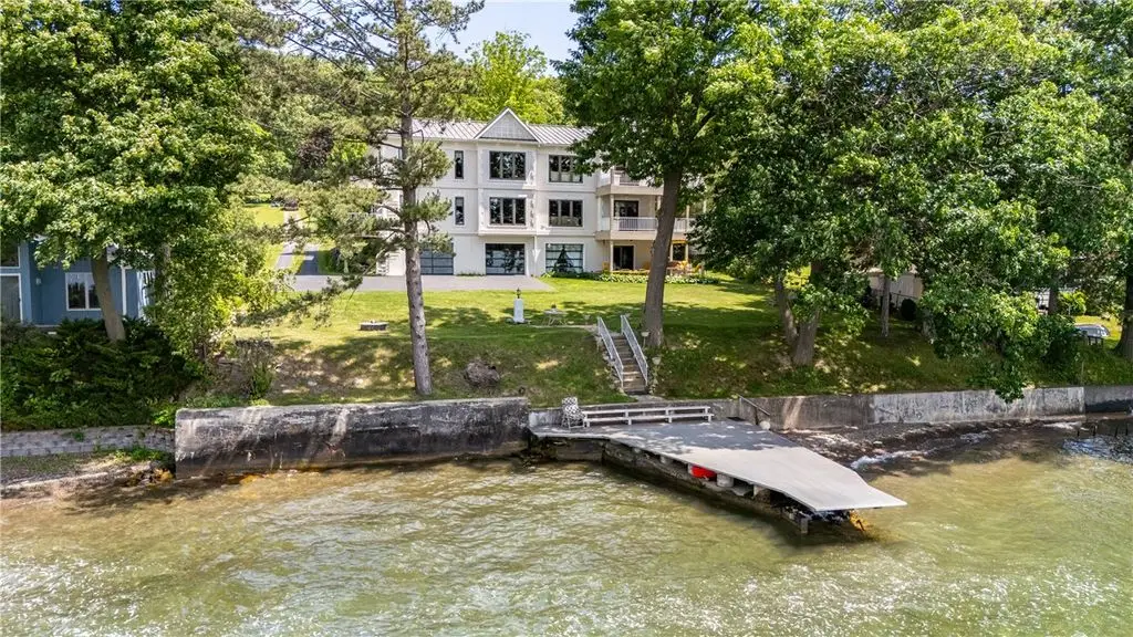 108' Rare, Level Lakefront + Custom 7-Bed, 7-Bath Luxury Home. Canandaigua Lake - Move-In Ready. Step into a showpiece of lakefront luxury. This custom 7,200 sq ft sanctuary (built 2013) sits on a unique level lot - safely "above the road" and never known to flood - and boasts 108 feet of premier Canandaigua Lake frontage. WATERFRONT & OUTDOOR HIGHLIGHTS ARE: Permanent 35'x20' aluminum dock, anchored over the lakes widest shelf, Natural shale beaches on both sides of dock and secure kayak/sailboat storage and solid poured concrete break wall. DESIGNED FOR FAMILY & FRIENDS with Seven separate bedrooms, each with its own fully accessible bathroom (heated granite floors), Two full gourmet kitchens + wet bars + lower level kitchenette + summer kitchen with infrared grill, Natural gas fire pit, three independent decks per level and Spacious elevator with lockout from all levels to decks and garage. PRESTIGE & PERFORMANCE with Triple-pane Anderson windows, closed-cell foam insulation - total utilities $1,700/year, Whole-house automatic Generac generator, Oversized 4+ car heated garage with polyaspartic heated floors, insulated-glass doors, cross ventilation, Elegant oak millwork, crown molding, custom staircases and high-end finishes. WHY THIS HOME CAPTIVATES: Imagine summer evenings by the fire pit, aerial views across Canandaigua Lake, family gatherings in an expansive gourmet kitchen, and effortless access for all ages and mobility levels. This is more than a home - it's a legacy retreat. The square footage difference is per seller.