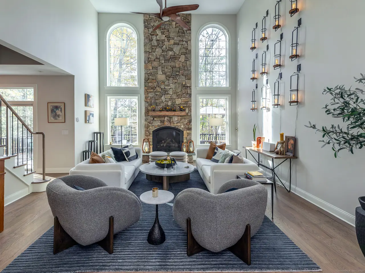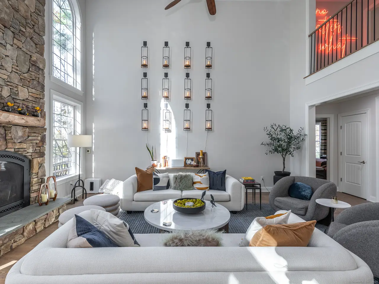 Double height fire-placed living room