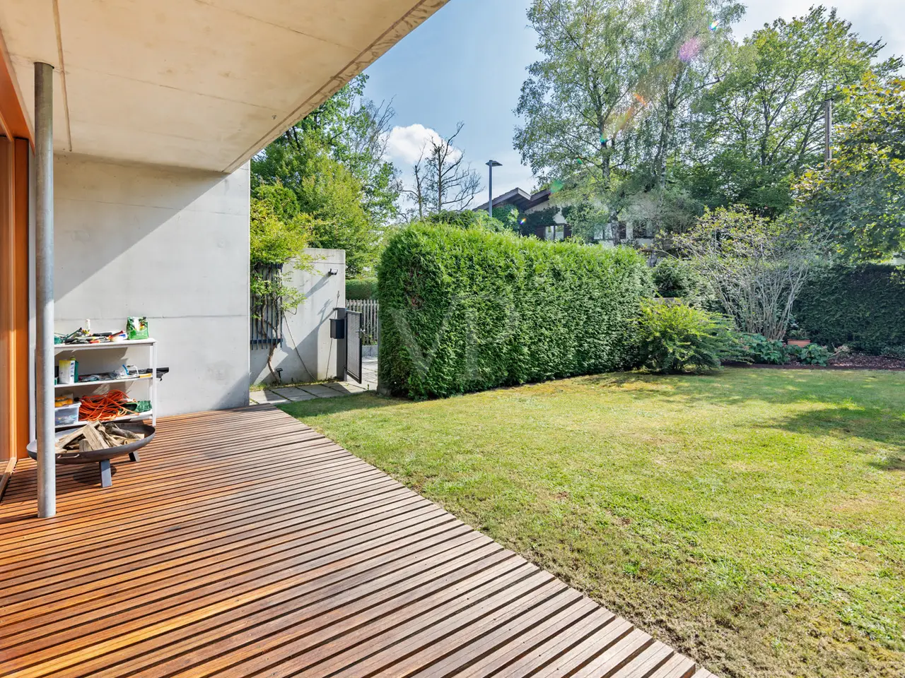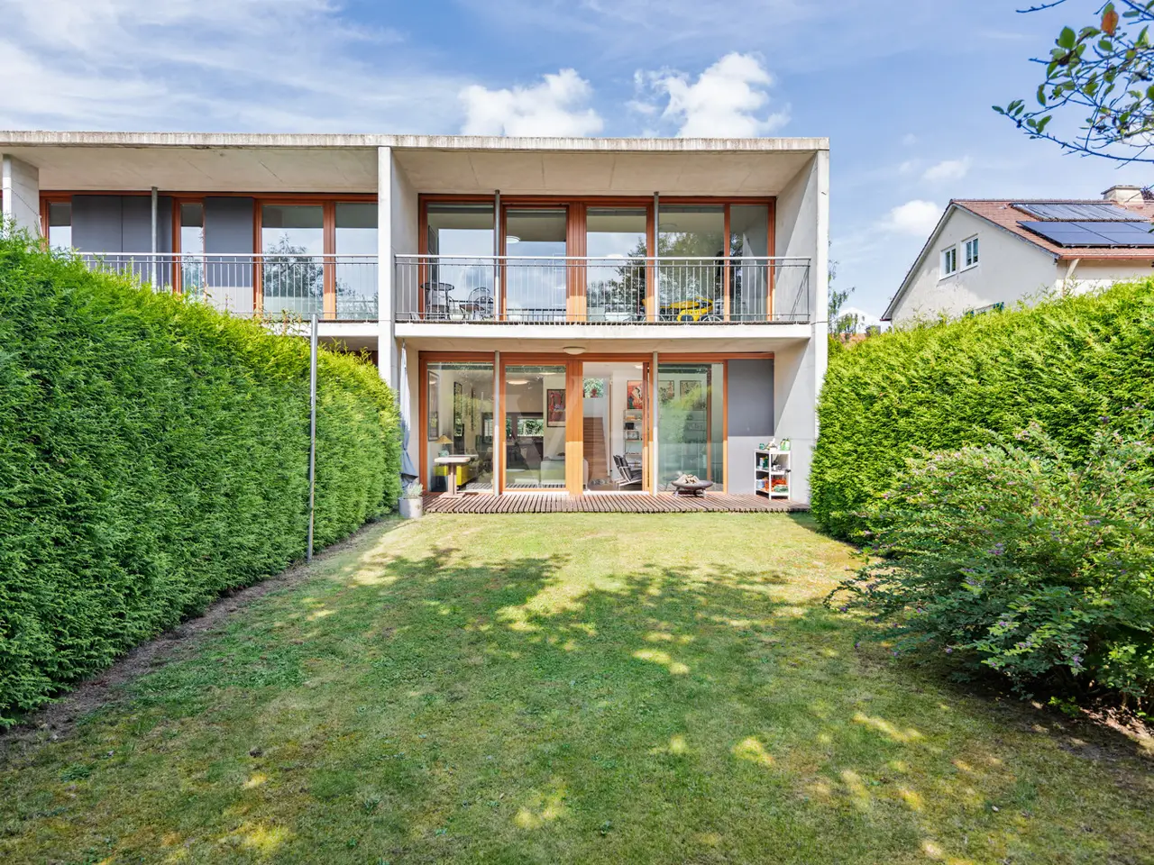 This exclusive semi-detached house impresses with its exceptional, modern design and the highest architectural quality. The open living concept is characterized by a high-quality kitchen equipped with exclusive branded appliances, which is seamlessly integrated into the light-flooded living area. Spacious, floor-to-ceiling windows open up the view of the well-kept, south-facing garden with terrace and create a light-flooded, inviting atmosphere. The interior design combines stylish elegance with functionality. Fine parquet floors give the living rooms warmth and comfort, while the bathrooms are equipped with high-quality stoneware, which ensures timeless sophistication. The pleasant indoor climate is perfectly complemented by the underfloor heating and modern stoneware radiators and ensures the highest level of living comfort. An outstanding feature is the innovative solar architecture, which relies on the optimal use of natural energy sources and heats the building in an environmentally friendly way. This pioneering construction method not only ensures sustainability, but also significant energy savings during ongoing operation. Internal blinds ensure effective sun protection and underline the modern, well-thought-out character of the property. The exclusive living experience is complemented by floor-to-ceiling doors, design-oriented outdoor lighting and an intercom system with camera, which offers additional comfort and security. The house, designed by the renowned architects Petra Schober and Gerhard Knick, is considered an architectural masterpiece and embodies modern living luxury at the highest level. Position Lochham is a district of the Upper Bavarian municipality of Gräfelfing and is located between the Munich city area and the Five Lakes Region in the picturesque Würm Valley. While the city of Munich scores with excellent nightlife and cultural offerings, the Five Lakes Region attracts with optimal recreation and leisure opportunities. The Lochham location thus offers a perfect symbiosis of culture, gastronomy and high recreational value. Lochham was first mentioned in the 13th century. The name most likely goes back to "Lohe", which at that time referred to a light mixed forest. The seat of the lords of the manor, Seeholzen Castle, was on the Würm, on the very spot where the St. Gisela retirement home stands today. For centuries, Gräfelfing and Lochham were small villages on the Würm. The barren soil did not allow for great wealth, and the few farms were under various manorial ownership. The first Bavarian tax register in 1809 listed 32 farms in Gräfelfing and 18 in Lochham, most of which fell victim to a fire in 1876. It was not until the beginning of the 20th century that the towns experienced a rapid upswing: day-trip restaurants and villa colonies along the new railway line to Lake Starnberg as well as a factory district on the Würm brought numerous new residents to the villages. Gräfelfing became an independent political municipality in 1818 as part of the administrative reforms in the Kingdom of Bavaria, to which the village of Lochham also belonged. The Lochham district is known for its spacious plots of land with stylish to prestigious properties. Located close to the Pasing city park and Paul-Diehl-Park, the residents of Lochham enjoy an idyll that is only known in the countryside despite the suburban flair. Right on Jahnplatz, which forms the center of Lochham, is one of the four different kindergartens, which makes the Lochham district particularly interesting for families. There are also two primary schools and two high schools in the municipality of Gräfelfing-Lochham. The neighboring district of Pasing also has a technical high school and a secondary school. To round off the overall package, Lochham also has a retirement and nursing home and a Protestant and Catholic parish. Lochham has shops, restaurants, cafes and doctors and, last but not least, offers a high level of recreational value with various sports facilities and a high-quality cultural offering. In addition, the road network and the connection to national transport routes are very well developed. Lochham has its own motorway junction to the A 96 or the nearby A 99 and is therefore also easily accessible via the motorway. From Lochham S-Bahn station, you can reach Munich city center in 20 minutes and Lake Starnberg in around 15 minutes. Another advantage of purchasing residential property in Gräfelfing is the low property tax rate of 250% compared to Munich.