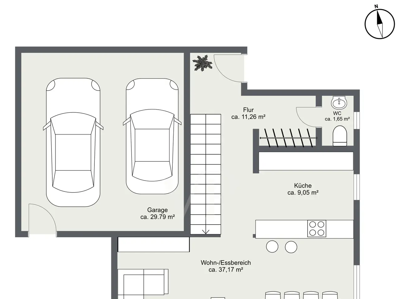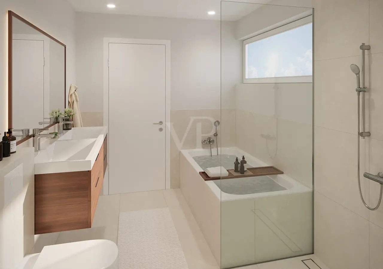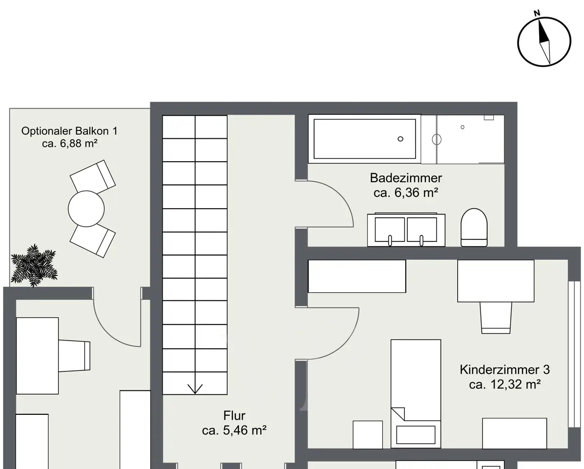 Stylish new build for the highest living standards: This is a home where architecture and comfort merge. Modern design, spacious rooms and a well thought-out floor plan create a living environment that leaves nothing to be desired and offers maximum quality of life. A feel-good living area: Entering the house immediately creates a feeling of openness. To the left is the high-quality guest WC, discreetly integrated into the entrance area. From the hallway, the path leads into the spacious living and dining area with open kitchen - a communicative hub where cooking, conversation and communal living flow into one another. Space for the whole family: A staircase with oak steps leads to the upper floor, where three bright bedrooms offer space for individual ideas. Two rooms have access to a balcony, and a further balcony can be added from the largest room. The bathroom impresses with a bathtub, floor-level shower and double washbasin - a room that is a pleasure to use both in the morning and in the evening. Private attic: The top floor is perfect as a parents' floor. The large bedroom is characterized by a wide window front with a view of the garden. The dressing room offers space for custom-made wardrobes. The bathroom impresses with its high-quality materials. Two storage rooms round off the floor. Variety in the basement: The large hobby room is suitable for sports, home cinema or creative projects. A storage room can optionally be converted into a bathroom. Further storage and utility rooms keep things tidy. Convenient double garage: The double garage is located right next to the house, is accessible from the driveway and terrace and offers space for two cars. A carport and an additional outdoor parking space complete the offer. Individual design: Floor coverings, tiles, doors and sanitary fittings can be selected according to your own ideas as part of the sampling process. The result is a home that perfectly reflects your personal style. Quality and living comfort: Solid brick construction, modern air-to-water heat pump, underfloor heating on all floors and triple-glazed windows with electric shutters create a comfortable, energy-efficient climate. A ventilation system with heat recovery can be installed as an option, achieving energy efficiency class A+. The terraces and outdoor areas will be finished. The perfect home in Gräfelfing: This detached house combines timeless construction, a clear room layout and a location that stands for quality of life. Please note: The planning and building description are offered as part of a general contractor agreement. Purchase price plot: € 850,000. Construction according to building specification: € 949,000. Start of construction possible at short notice.