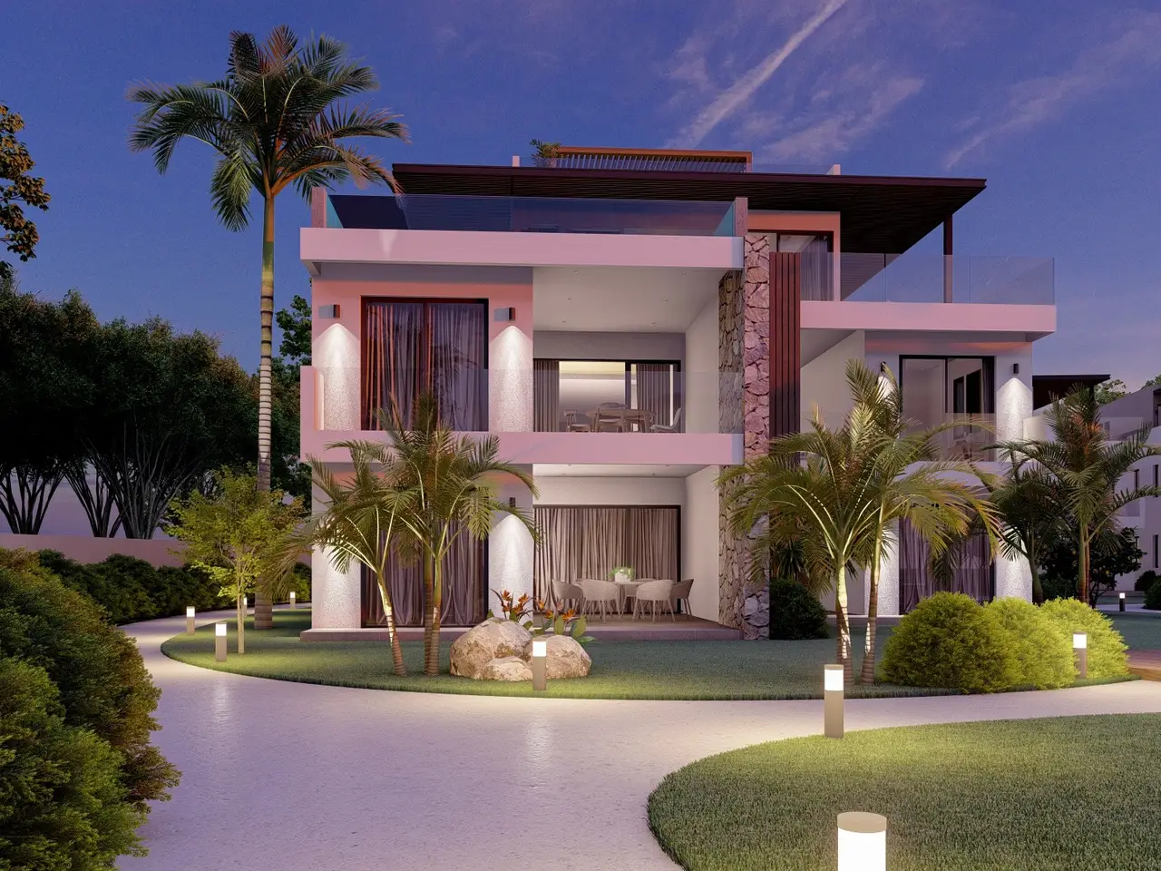 This magnificent apartment of 140m2 is part of a beautiful project of 12 apartments. Also includes 3 exclusive penthouses each having their own private swimming pool. It consists of 3 bedrooms ( 1 ensuite bedroom) a living room, a modern style kitchen. Residents will have common facilities includes generous parking, an large swimming pool and deck, a boathouse and a lush tropical garden overlooking the natural bay.The common outdoor space is a convivial concept that features a pool lounge area to be enjoyed during relaxation gatherings whilst admiring the passing boats and infinite views of the ocean as well as a private access to the bay should you wish to enjoy stand up paddling and kayaking.