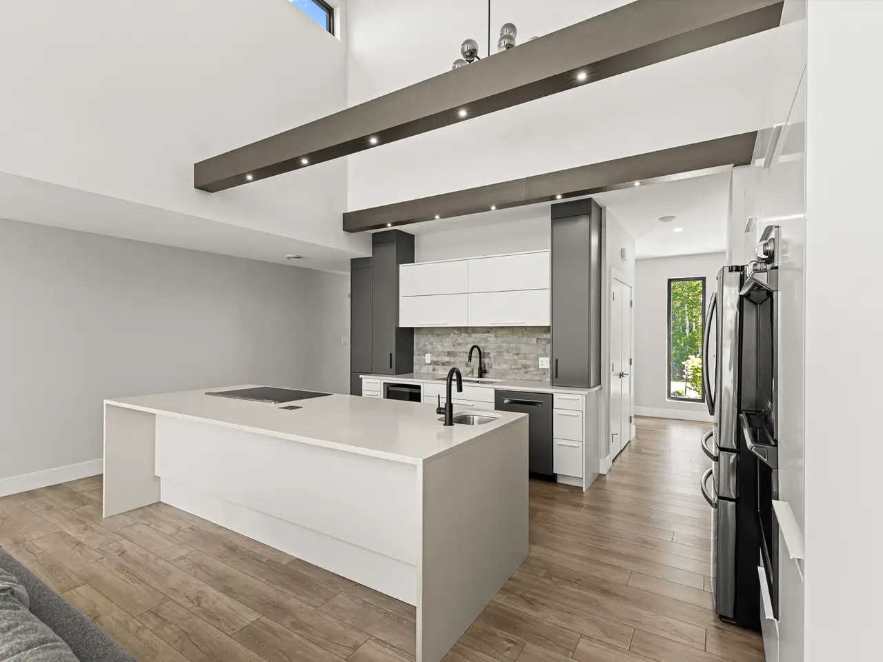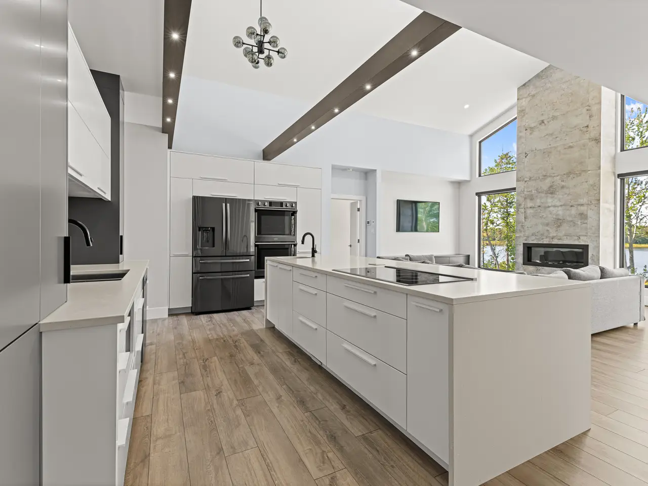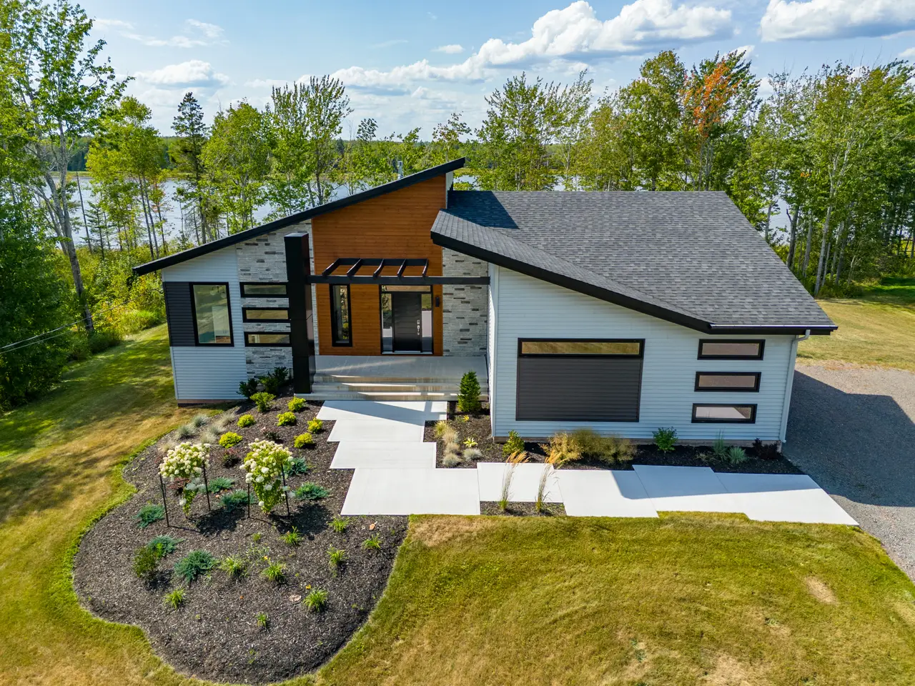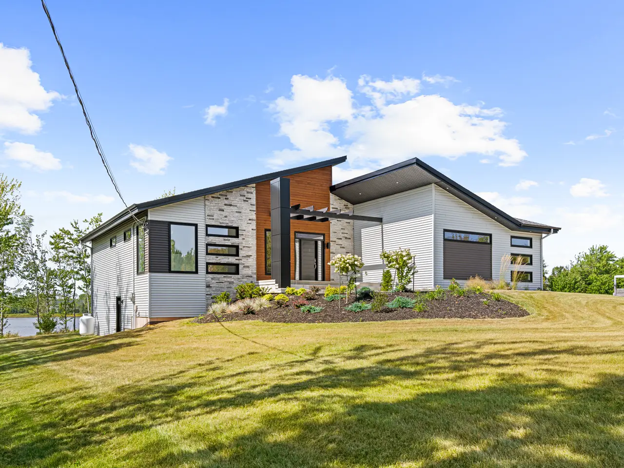 Stunning Waterfront Bungalow with Walk-Out Basement on 2.4 Acres // Forced Air Heat Pump // 4 Bedrooms & 3.5 Bathrooms // Attached Double Garage Welcome to 331 Pointe-A-Nicet, a custom-built 2019 home offering breathtaking sunsets over the water. This uniquely designed bungalow features a forced air heat pump with dual-zone control, EV plug-in, and generator readiness. Step inside to a large foyer that opens to a bright, open-concept main floor with kitchen featuring quartz waterfall counters, induction cooktop, double wall ovens, and a walk-in pantry. The living and dining room offer tons of windows for gorgeous water views, high ceilings, and a beautiful accent wall with fireplace. The primary bedroom offers more great views, a walk-in closet, and a spa-inspired five-piece ensuite. A second bedroom, four-piece bath, and powder room complete the main floor. There is also a handy side entrance including a mudroom with built-ins and a laundry room between the two floors. The lower level is designed for both entertainment and family or guest stays, with a walk-out to a massive concrete patio with hot tub overlooking the water and treed yard. Enjoy a games room with bar and beer fridge, gym with barn doors, dedicated office with water views, two additional bedrooms, and a three-piece bathroom. Additionally, this waterfront retreat offers plenty of storage and is wired throughout for high-speed internet. This exceptional home has been meticulously maintained and is move-in ready for its new owners.
