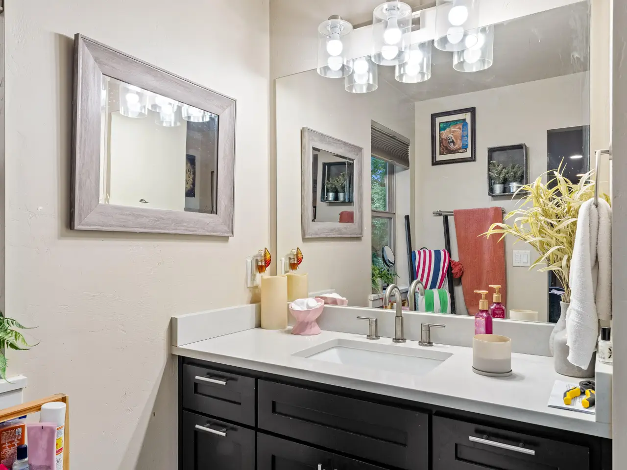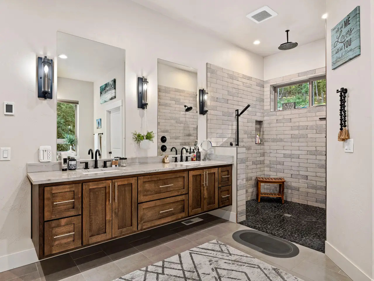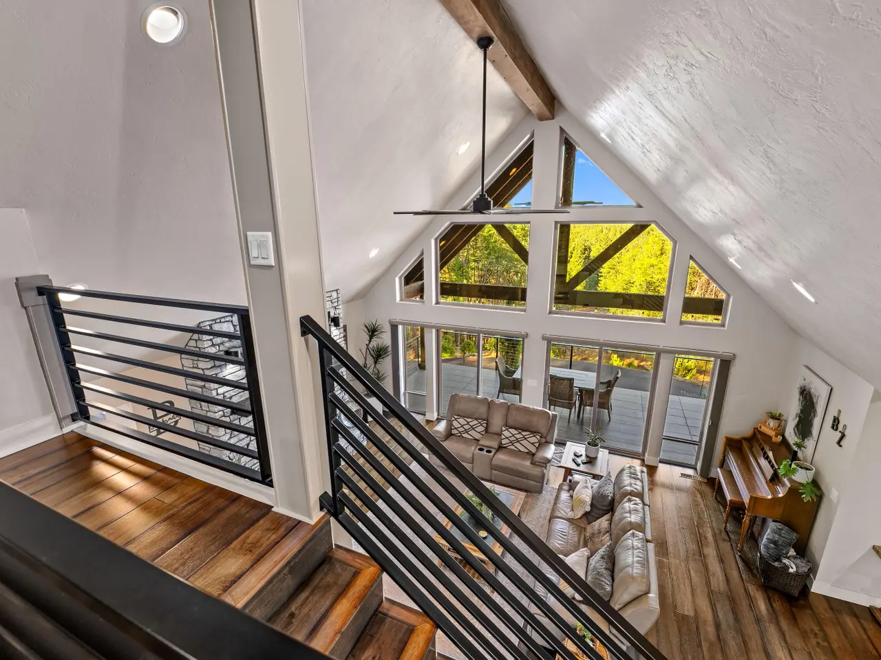Mountain Lodge Retreat!! Custom Home is app 3157 sq ft, 4 bed, 4.5 baths, with additional Studio D/S of app 390 sq ft for visitors or family. Perched perfectly on 3.43 acres overlooking the valley, hills, and the city in the distance. Upon entry, greeted with soaring vaulted L/R, gas fireplace, expansive windows that allow for stunning views, natural light, and access to the open beam covered porch. Primary ensuite, is vaulted as well, with its own gas f/p & side porch. Main bath offers heated tile flooring, curb less oversized shower, soaker tub, spacious walk in closet, and water closet. Expansive kitchen is equipped with high end appliances designed for both serious cooking and entertaining. The loft hosts a 2nd ensuite, and seating area. The main floor also offers a spacious dining room, 2 b/r full guest bath, 1/2 bath for guests, and large laundry room. There is interior & exterior access to the fully equipped guest studio quarters below. Property is fenced, with lush back lawn.