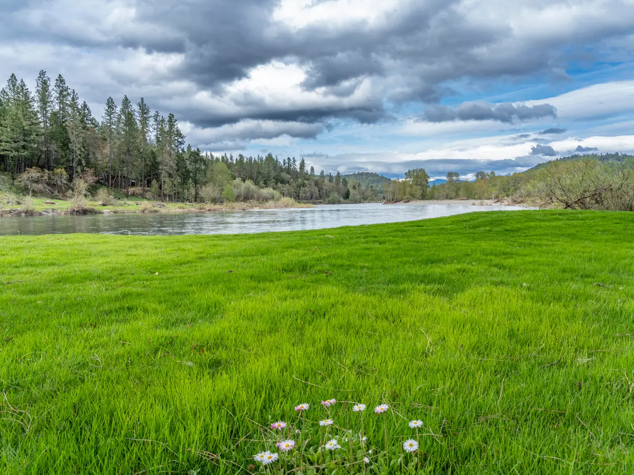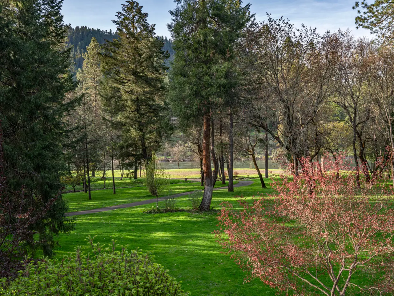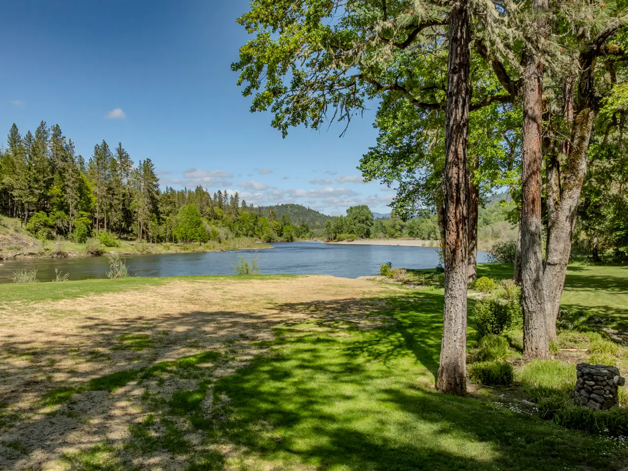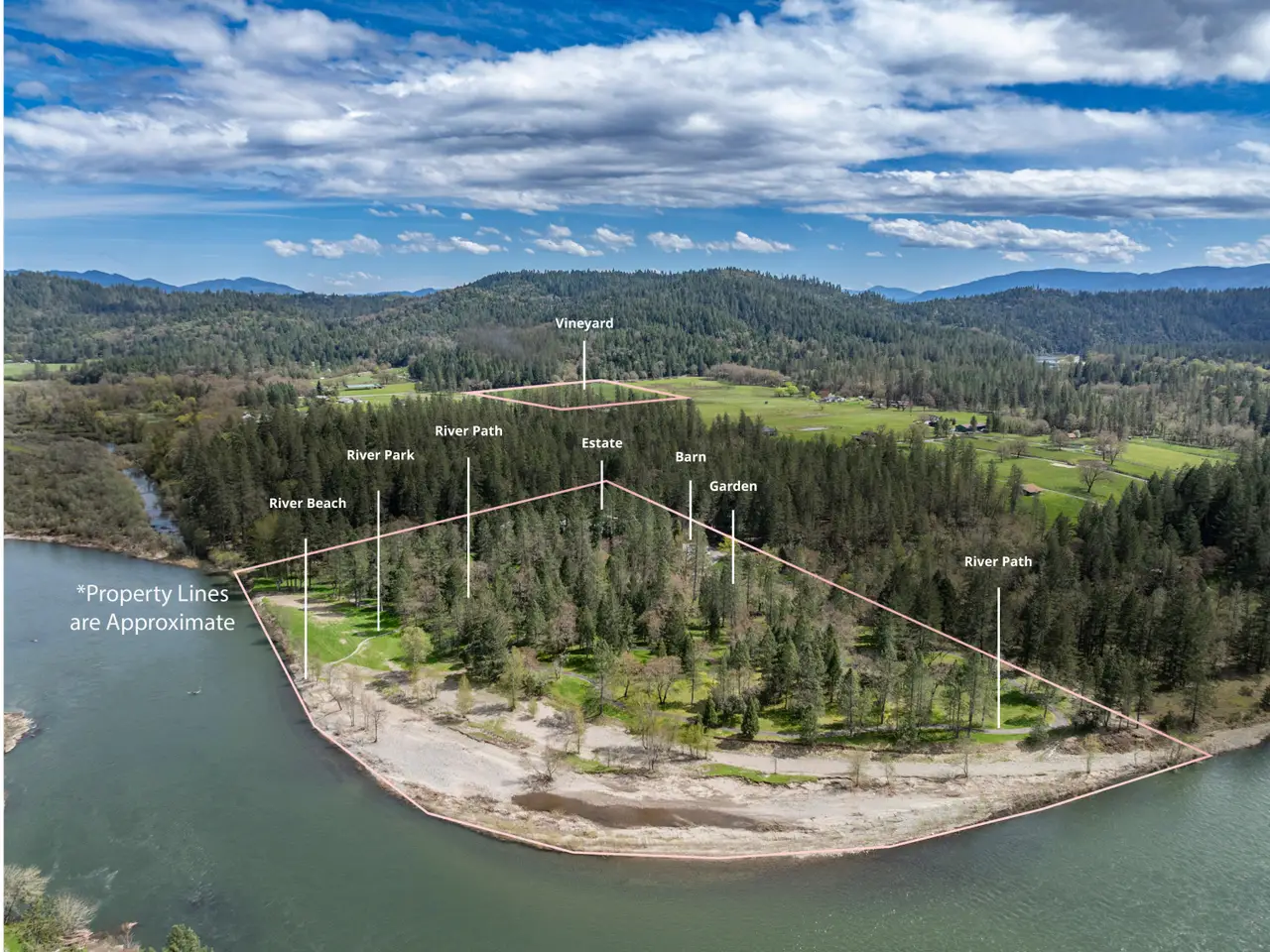 For the first time, this distinguished riverfront estate is made available for purchase. Greeted by a European-inspired bridge & water features, this exquisite English Country estate is elevated above & within the Wild & Scenic section of the Rogue River. Designed by Mike Casella, it blends Arts & Crafts details with Victorian elegance. Highest quality materials & craftsmanship throughout including imported slate roof, hand-carved Carrara marble fireplaces, & custom millwork. A well-appointed chef's kitchen, butler's pantry, root cellar, conservatory, library, main level primary suite with baja & steam showers, dressing room w/ extensive built-ins, and three vanities. Lush and irrigated, year-round color with 1000's of plantings. Numerous water features, 15000 SF garden w/ orchard, berries & vines. Detached gym/home office, finished 3 car garage, barn w/guest quarters, private riverfront park, and a separate 10-acre organic vineyard, including the Coventina wine brand/inventory await.
