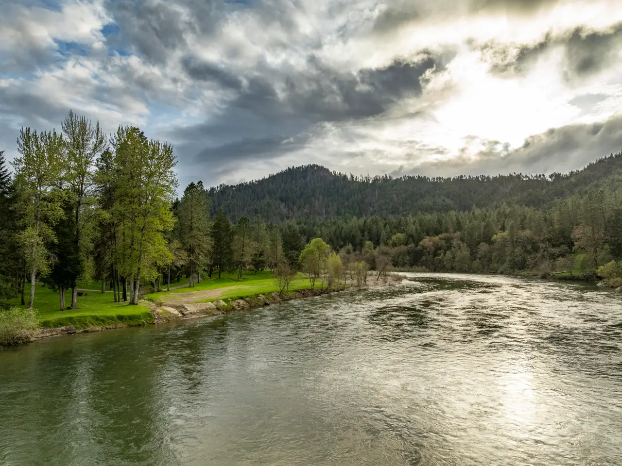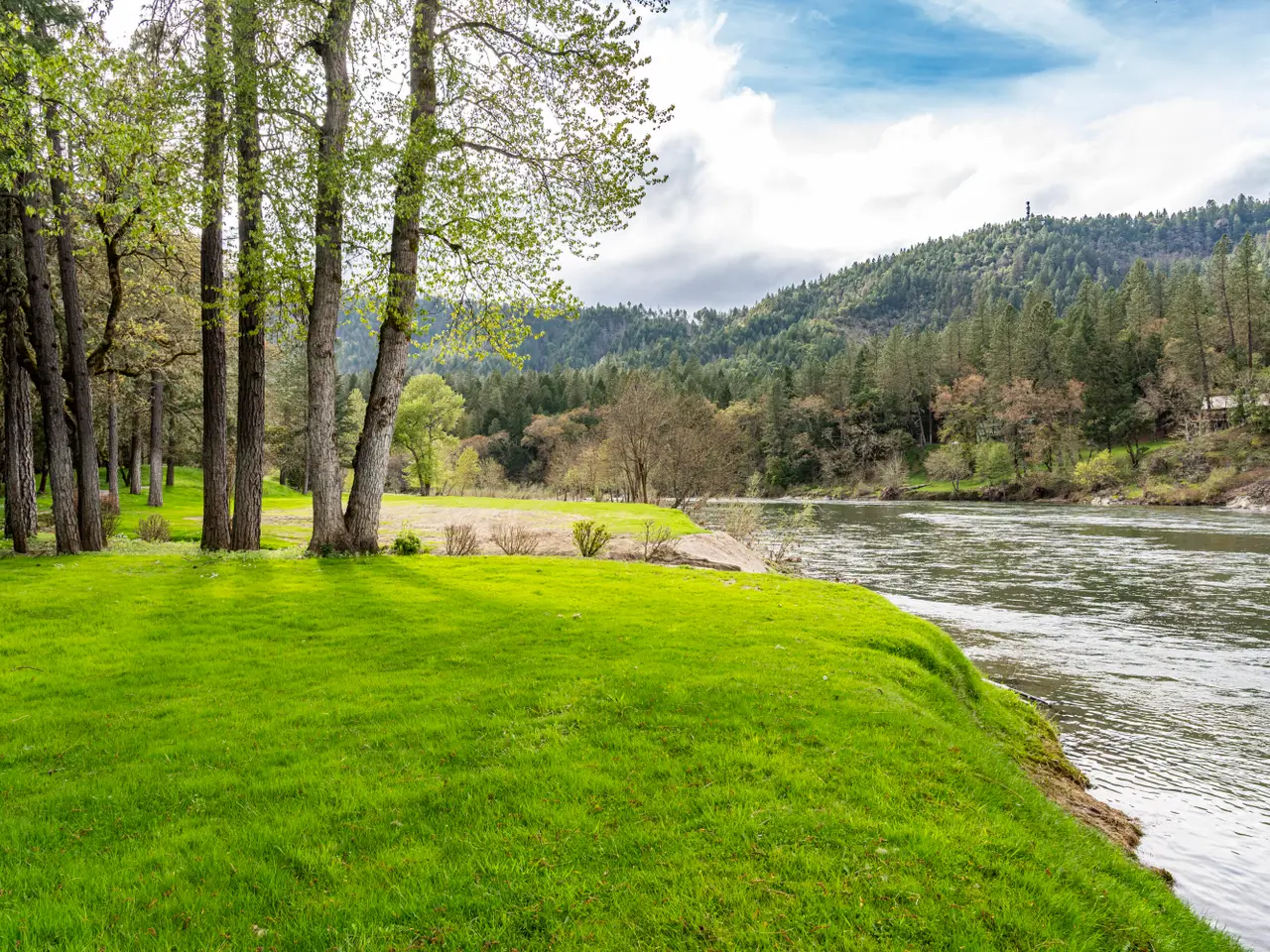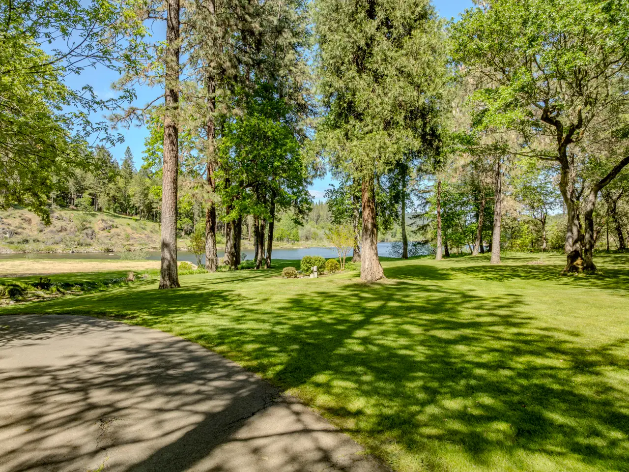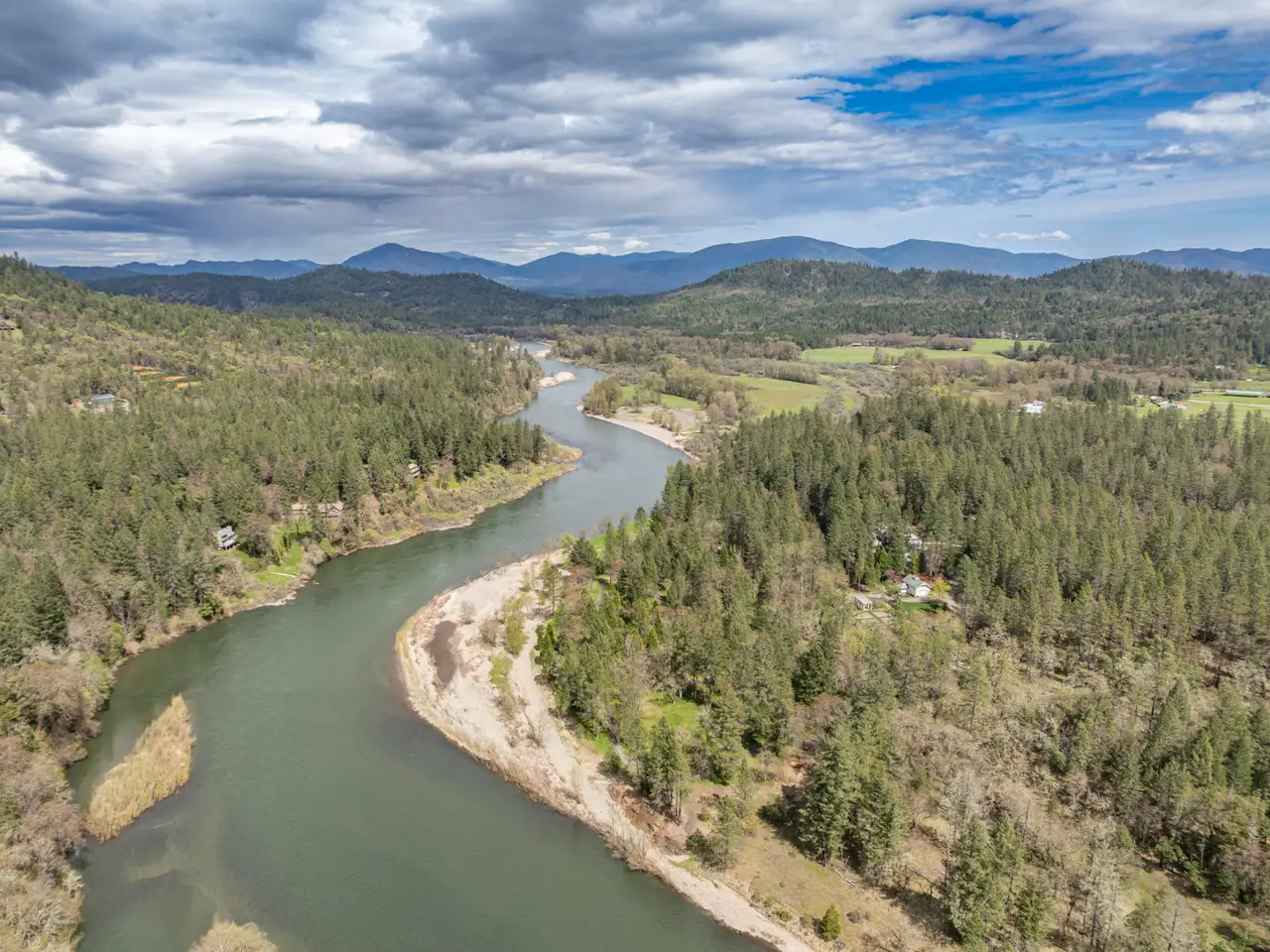 For the first time, this distinguished riverfront estate is made available for purchase. Greeted by a European-inspired bridge & water features, this exquisite English Country estate is elevated above & within the Wild & Scenic section of the Rogue River. Designed by Mike Casella, it blends Arts & Crafts details with Victorian elegance. Highest quality materials & craftsmanship throughout including imported slate roof, hand-carved Carrara marble fireplaces, & custom millwork. A well-appointed chef's kitchen, butler's pantry, root cellar, conservatory, library, main level primary suite with baja & steam showers, dressing room w/ extensive built-ins, and three vanities. Lush and irrigated, year-round color with 1000's of plantings. Numerous water features, 15000 SF garden w/ orchard, berries & vines. Detached gym/home office, finished 3 car garage, barn w/guest quarters, private riverfront park, and a separate 10-acre organic vineyard, including the Coventina wine brand/inventory await.