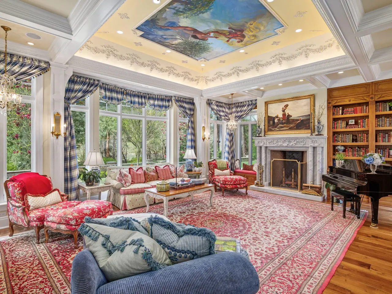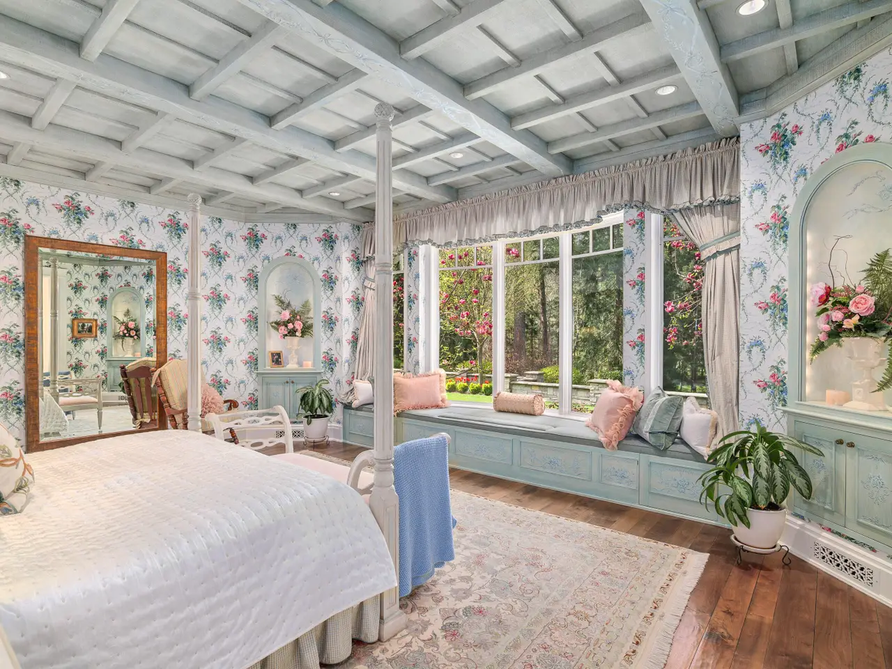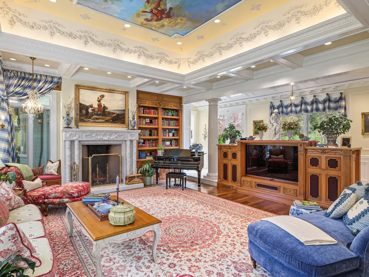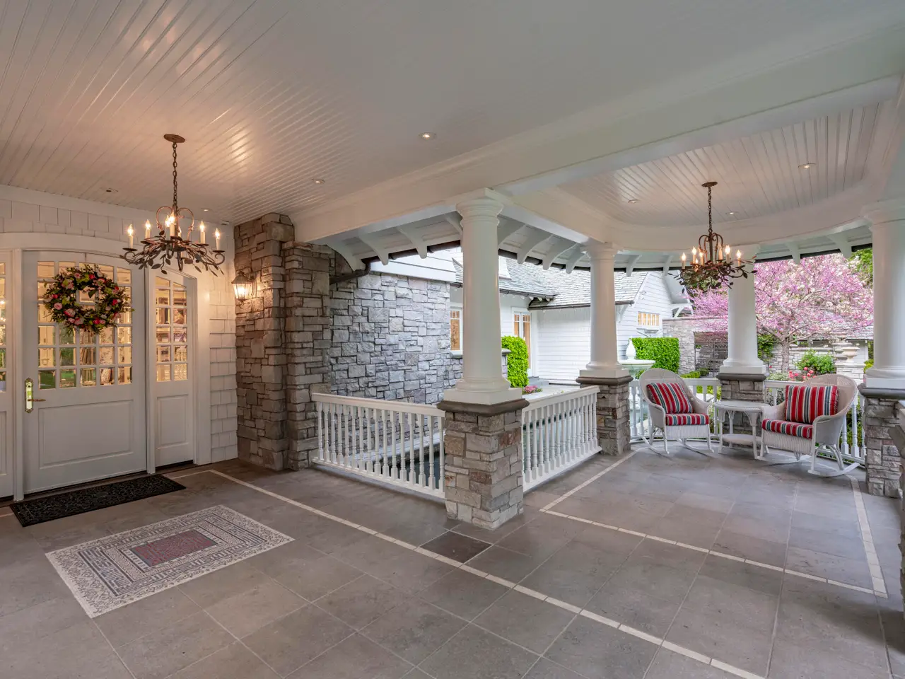 For the first time, this distinguished riverfront estate is made available for purchase. Greeted by a European-inspired bridge & water features, this exquisite English Country estate is elevated above & within the Wild & Scenic section of the Rogue River. Designed by Mike Casella, it blends Arts & Crafts details with Victorian elegance. Highest quality materials & craftsmanship throughout including imported slate roof, hand-carved Carrara marble fireplaces, & custom millwork. A well-appointed chef's kitchen, butler's pantry, root cellar, conservatory, library, main level primary suite with baja & steam showers, dressing room w/ extensive built-ins, and three vanities. Lush and irrigated, year-round color with 1000's of plantings. Numerous water features, 15000 SF garden w/ orchard, berries & vines. Detached gym/home office, finished 3 car garage, barn w/guest quarters, private riverfront park, and a separate 10-acre organic vineyard, including the Coventina wine brand/inventory await.