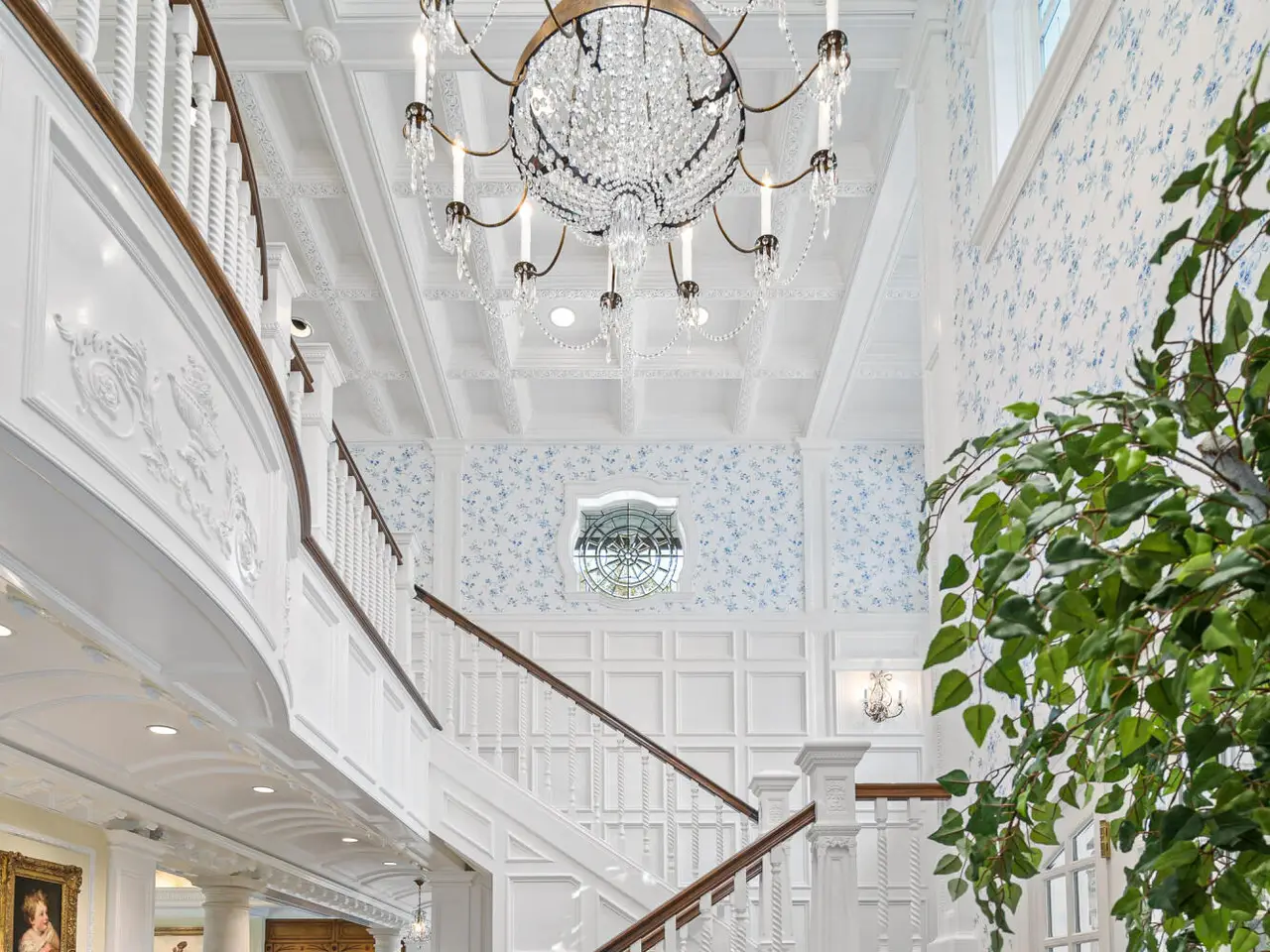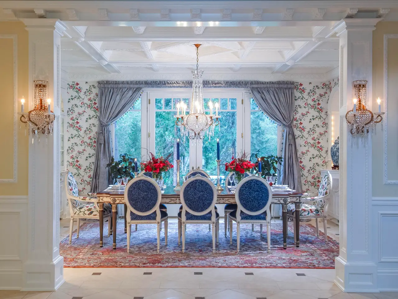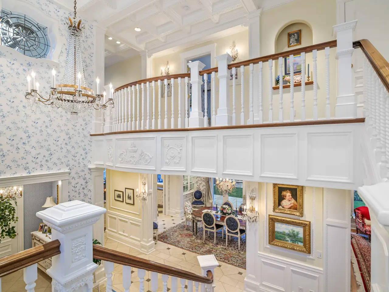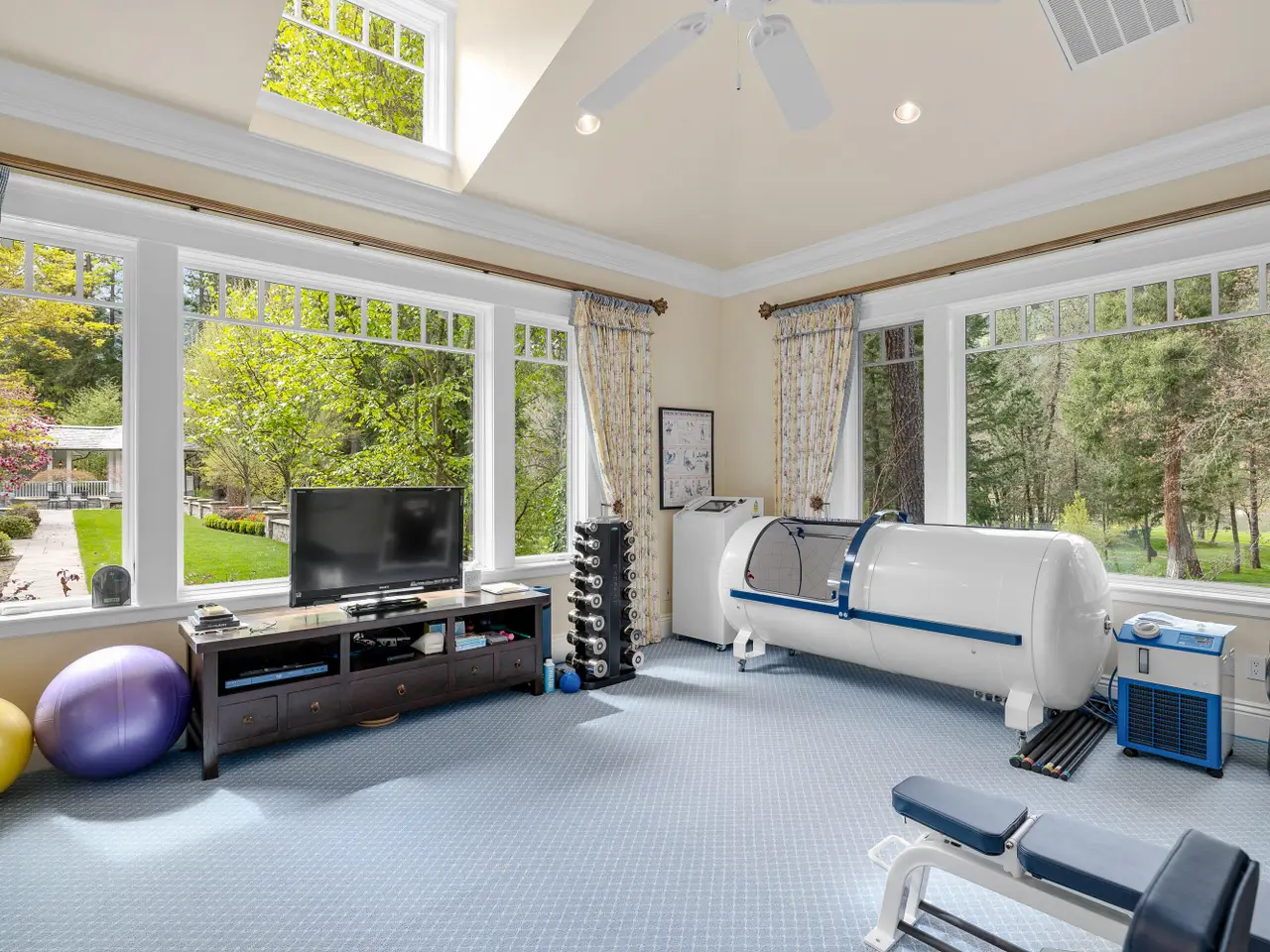 For the first time, this distinguished riverfront estate is made available for purchase. Greeted by a European-inspired bridge & water features, this exquisite English Country estate is elevated above & within the Wild & Scenic section of the Rogue River. Designed by Mike Casella, it blends Arts & Crafts details with Victorian elegance. Highest quality materials & craftsmanship throughout including imported slate roof, hand-carved Carrara marble fireplaces, & custom millwork. A well-appointed chef's kitchen, butler's pantry, root cellar, conservatory, library, main level primary suite with baja & steam showers, dressing room w/ extensive built-ins, and three vanities. Lush and irrigated, year-round color with 1000's of plantings. Numerous water features, 15000 SF garden w/ orchard, berries & vines. Detached gym/home office, finished 3 car garage, barn w/guest quarters, private riverfront park, and a separate 10-acre organic vineyard, including the Coventina wine brand/inventory await.