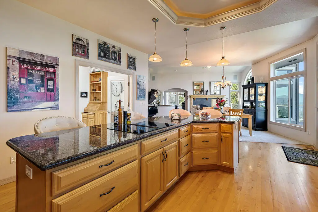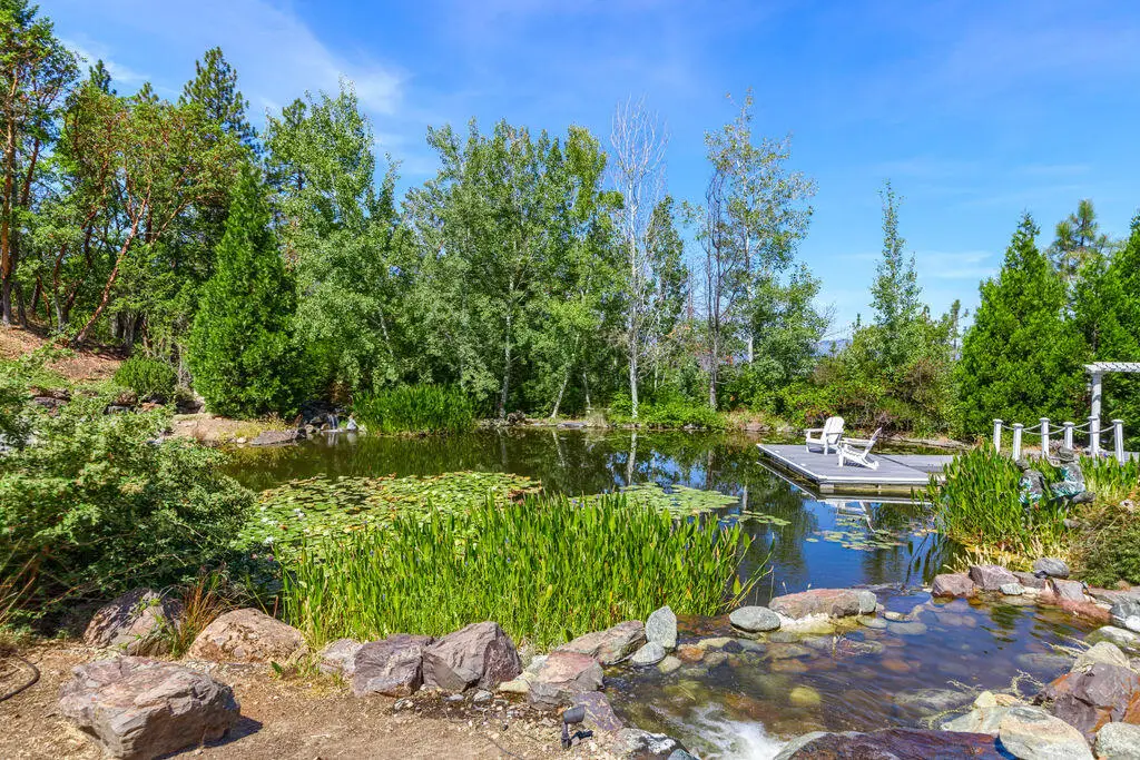 Welcome to Granite Hills Estate. Truly exceptional property. 20 Acres back to BLM & County land, Paved driveway w/gated entry, water feature & year-round spring fed pond w/a dock & Bass fishing. Gorgeous landscaping w/ lighted pathways. 4 Bdrm, 4 bath, Office/Library w/built-ins, 6400 SQ Ft, 3 Car Garage w/Portico. Grand entry, lg vaulted ceilings, floor to ceiling windows to take in the stunning views of Mts & City lights. Lg kitchen w/island, main floor primary suite w/spa like bath, door to private deck w/hot tub w/skylight & views. Good size bdrms, lg pantry. Downstairs w/10' ceilings, French Doors to covered patios, lg family rm w/fireplace, lg bar & entertaining area w/mini kitchen, Guest quarters w/kitchenette, bedroom, living rm & door to patio. Infinity Pebble Tec heated pool, lg pavers patio w/Gazebo & fire torches. 5600 SQ FT detached Shop w/RV storage w/dump, water & electricity, office space, 1/2 bath, 4 Car carport. Country living close to town!