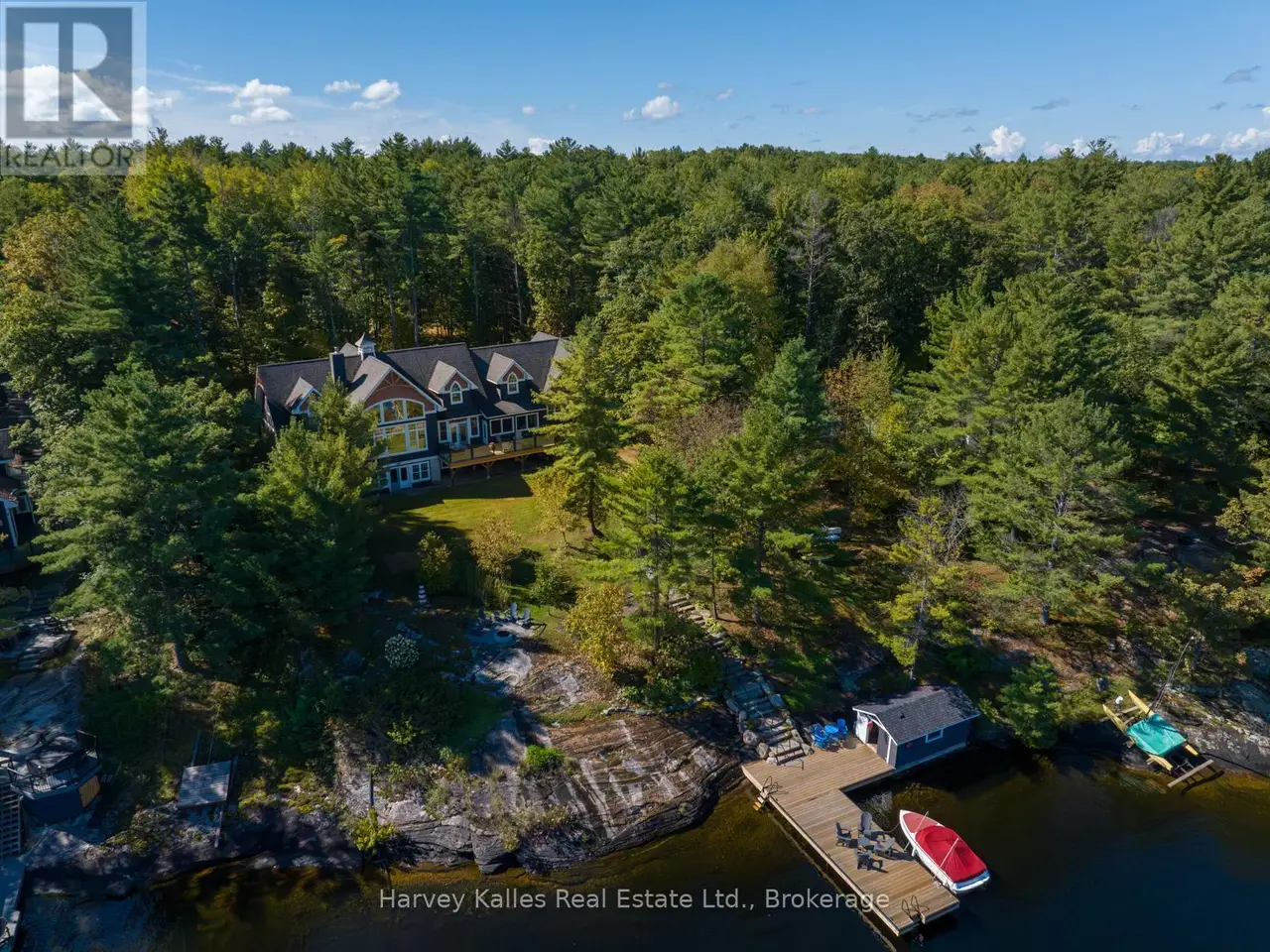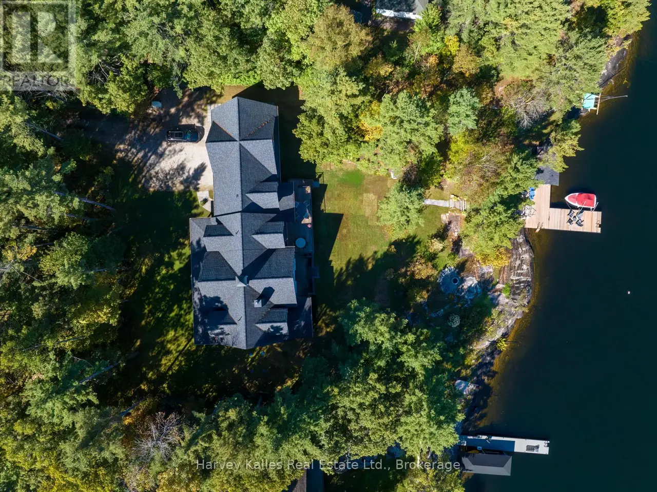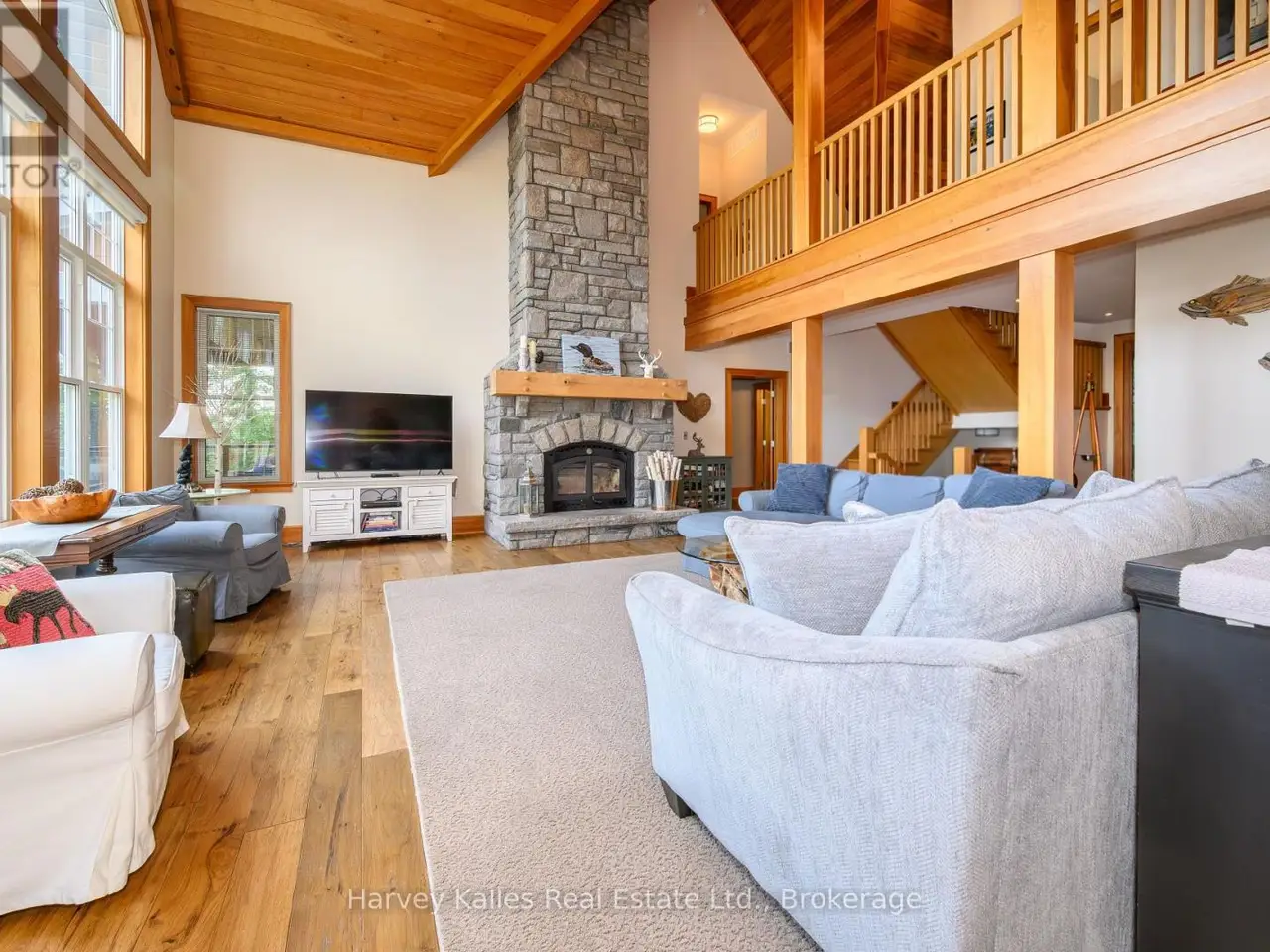 An exceptional opportunity awaits on the coveted shores of Lake Muskoka. This sprawling cottage estate offers the perfect blend of natural beauty, unrivalled privacy, and boundless potential. With an impressive 3,896 sqft of finished living space and additional unfinished area all under one roof, this property is a rare canvas for discerning buyers seeking a luxury family compound, private retreat, or high-yield rental investment. Thoughtfully designed, the main floor features a spacious primary suite with a private lakeside covered porch, complete with hot tub and lounge area, perfect for enjoying tranquil mornings or star-filled evenings. Upstairs, youll find 3 generously sized bedrms, 2 well-appointed bathrms, a charming reading nook, and a large walk-in linen closet. Dual staircases provide seamless access to all three levels, enhancing both functionality and flow.The great room with soaring ceiling, a stone wood burning fireplace and a stunning view of the lake make this space a family favourite. The lower-level walkout is a blank canvas and offers opportunity to increase living space and can be tailored to personal preferences & needs. Outdoors, the property is both expansive and welcoming, featuring flat, grassy areas ideal for family gatherings and gently sloping terrain that leads to the waters edge. The natural shoreline is truly breathtaking, with exposed rock formations that tell a story through intricate patterns and textures. A newly constructed granite staircase connects the cottage to the water, where a newer steel dock and covered waterfront storage building await. The storage building offers a needed reprieve from the sun on those scorching hot summer days. The serenity of this shoreline invites stillness, reflection, and an appreciation for the timeless beauty of Muskoka. Located on a municipally maintained year-round road, this property checks many boxes-private, accessible, and rich with possibility. An unparalleled opportunity not to be missed. (id:16999)