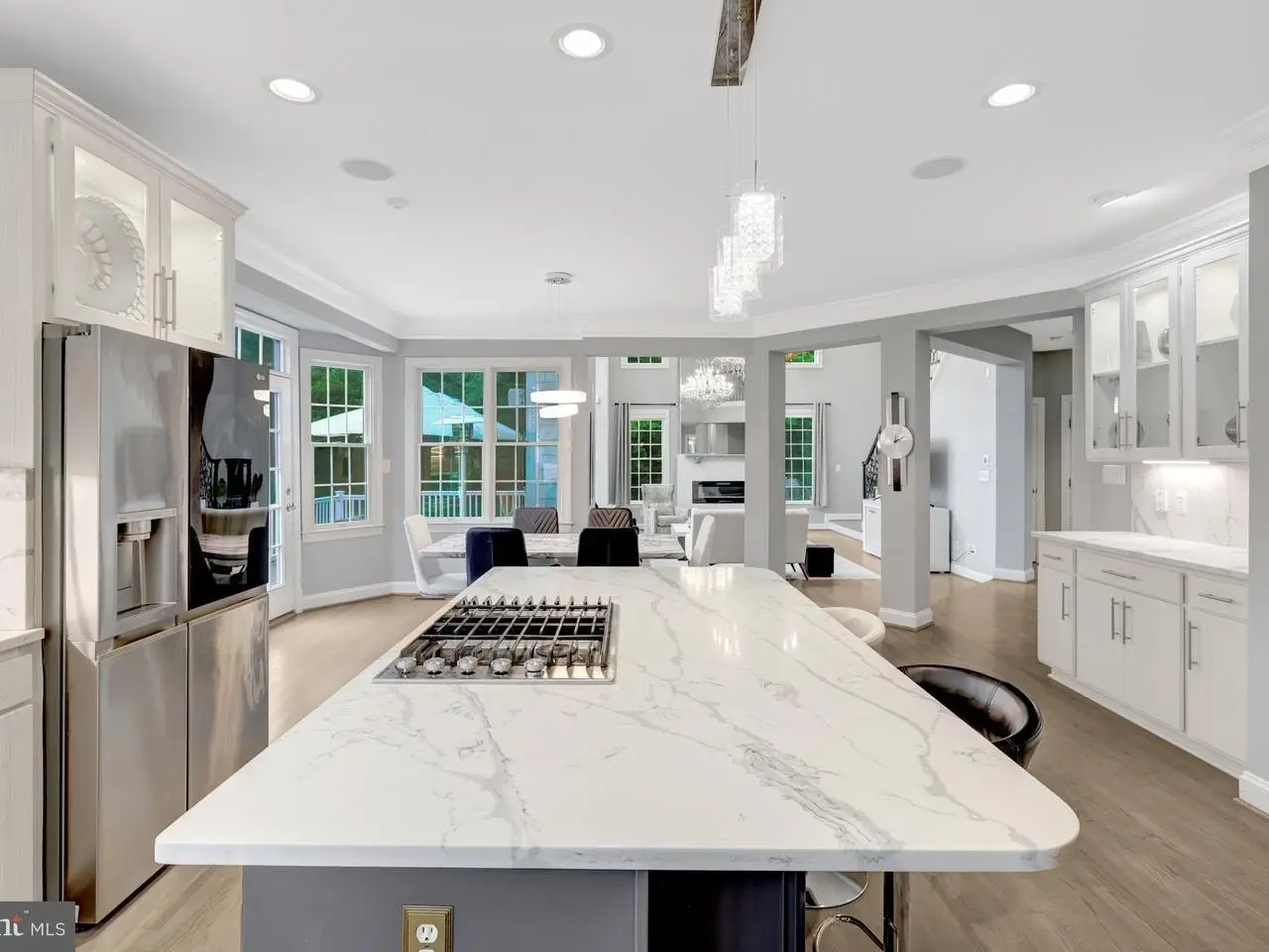 Set on nearly two private acres backing to River Bend Country Club, this 4-bedroom, 4.5 bath brick colonial estate offers 7,100 sq ft of total living space. Natural sunlight pours through oversized windows throughout. Highlighting custom details at every turn and creating a home that is as elegant as it is inviting, perfect for both entertaining and everyday living. A two-story foyer with wrought-iron staircase creates a grand first impression, leading into both the formal and dining rooms that open onto a bright sunroom, ideal for morning coffee or relaxing garden views. The two story, sundrenched family room with fireplace offers a cozy retreat. While the newly remodeled kitchen serves as a true centerpiece of the home, featuring quartz countertops & backsplash, custom cabinetry, and an oversized seated island that flows seamlessly to the expansive deck and manicured lawns. Upstairs, the primary suite serves as a private retreat, complete with a sitting area and a spa like primary bathroom. The second bedroom is ensuite, while bedrooms 3 & 4 are connected through an adjoining bathroom. The walk-up lower level is designed for entertaining and relaxation, offering a custom bar, home theater, and versatile rec spaces. Outside, expansive decks, mature trees, and lush lawns create the perfect backdrop for gatherings or quiet reflection. The three- car garage with epoxy flooring and private driveway completes the property.