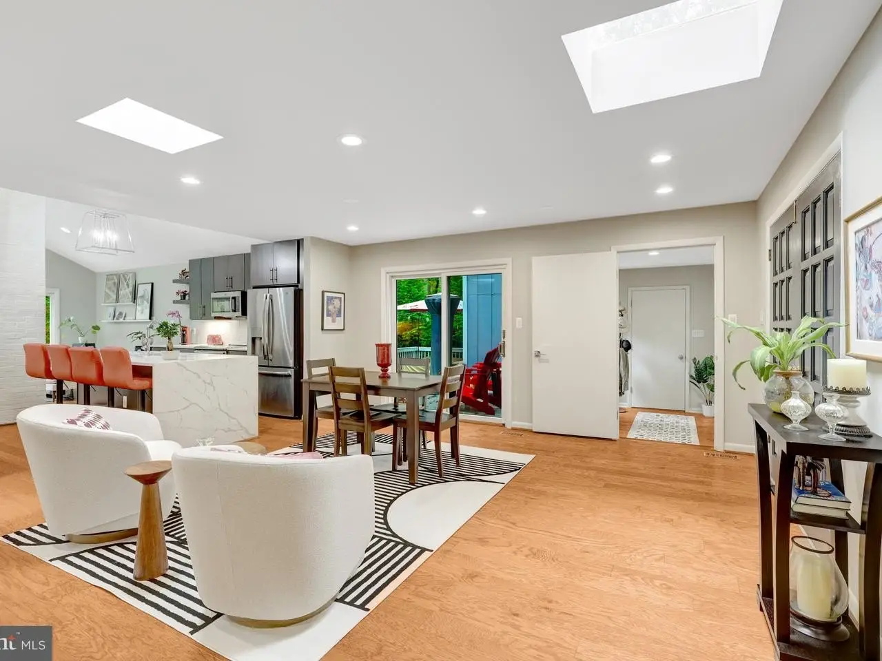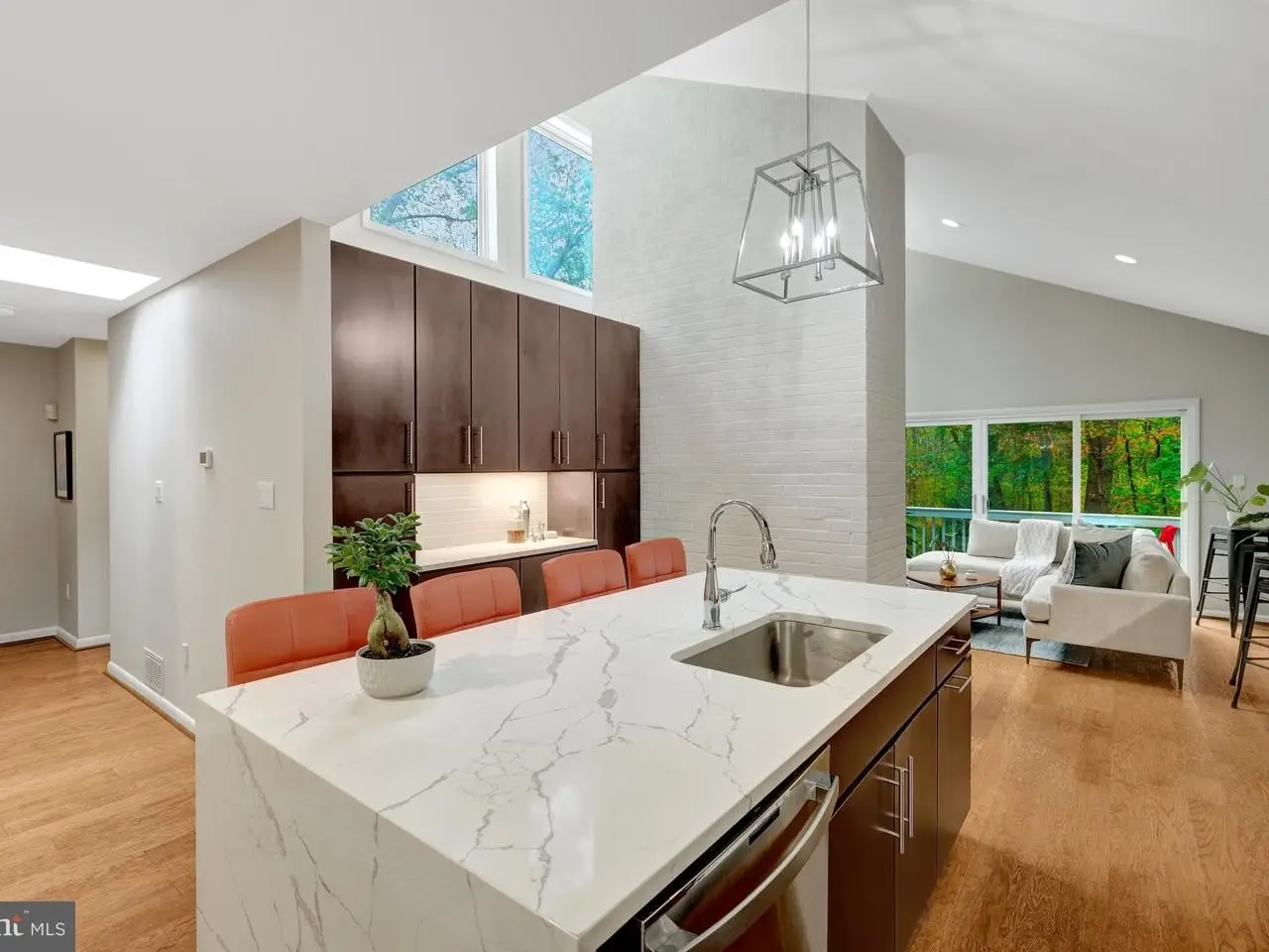 Stylish Contemporary Home on 2 Acres of Scenic Privacy Thoughtfully designed, this modern home is perfectly positioned on a picturesque 2-acre lot, offering both privacy and style. The open-concept layout showcases meticulous attention to detail, with sleek finishes and high-end design throughout. Enjoy the ease of main-level living with 3 spacious bedrooms and 2.5 baths, all within a bright and airy floor plan. The gourmet kitchen features a dramatic waterfall quartz island, soaring ceilings, and expansive windows that flood the space with natural light and offer stunning views of the surrounding landscape. The fully finished walkout lower level adds even more living space with a large recreation room, two additional bedrooms, and a full bath-ideal for guests, home office, or multi-generational living. Step outside to a brand-new, multi-level deck perfect for entertaining or relaxing, overlooking a large, level backyard that offers privacy and plenty of room to play or garden. A rare combination of modern design, functional living, and serene outdoor space-this home truly has it all.