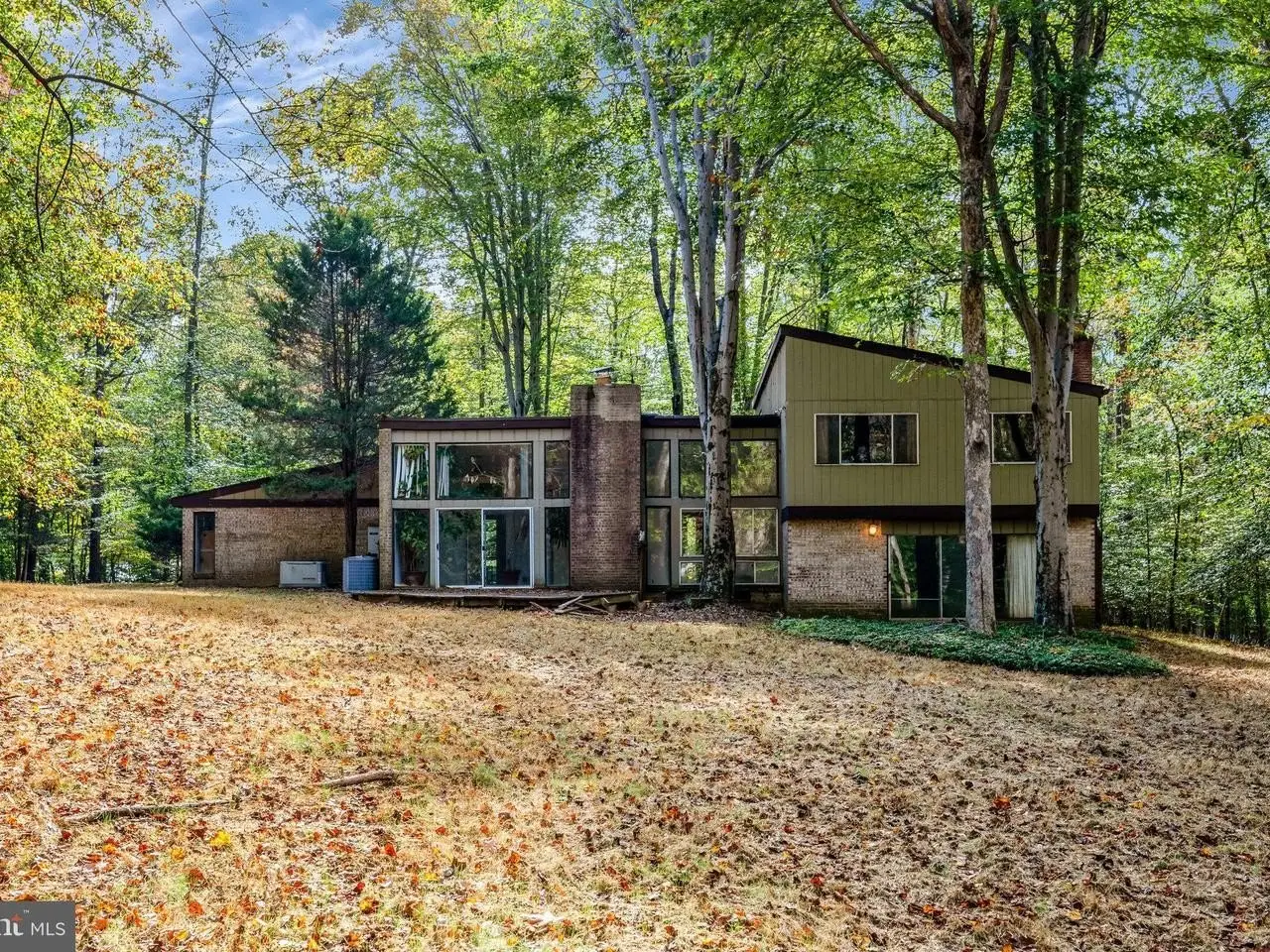 Rarely available convenient location, minutes from Great Falls Village Center on a quite cul-de-sac. Custom built mid-century modern. Very private and quiet area with a gently sloping lot. bordered by trees. Vaulted ceilings, stone chimney to ceiling in main room, Room to add on. Generator. Rehab or build new.