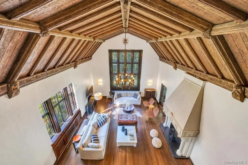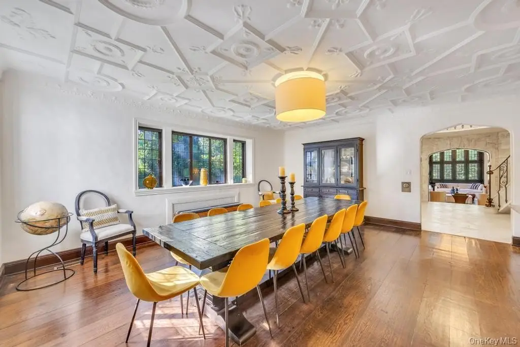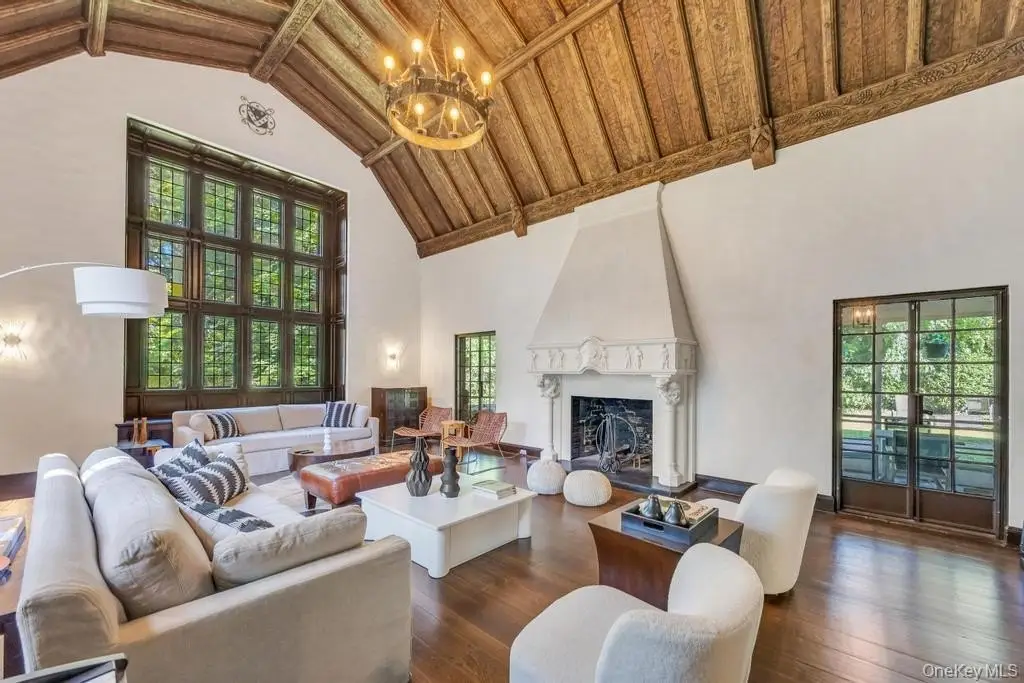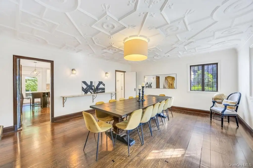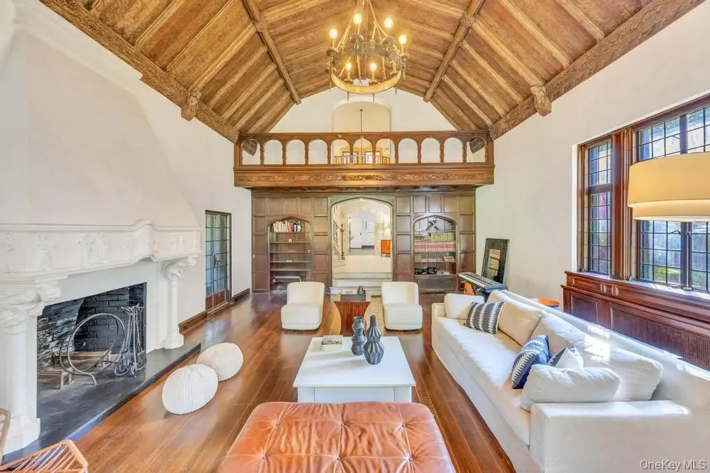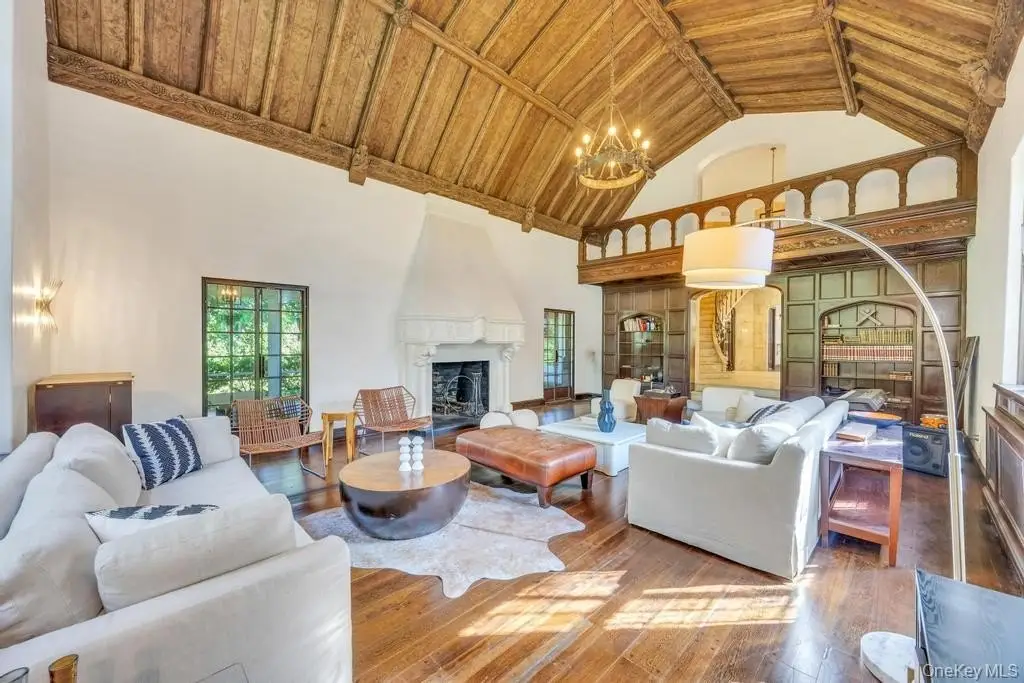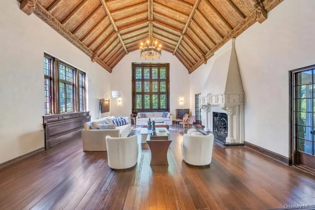 Located in Prestigious Great Neck Estates, this impressive Colonial exudes historic grandeur and timeless elegance. A two-story circular limestone foyer with a sweeping wrought-iron staircase opens through arched doorways to a grand formal living room featuring vaulted, hand-hewn beamed ceilings and a sculpted regal fireplace. The oversized formal dining room showcases ornate coffered ceilings and intricate plasterwork, while wide-plank hardwood floors throughout balance classic craftsmanship with modern sophistication. A fabulous kitchen and adjoining den flow seamlessly into a year-round sunroom, creating the perfect space for everyday living and entertaining. The home offers four spacious bedrooms, plus finished attic stairs leading to a third floor with outstanding potential for an additional bedroom, home office, or recreation space. Exclusive Village amenities include a waterfront park, tennis courts, pool club, summer camp, and private police services. Ideally zoned for choice of Great Neck South or North Middle School and conveniently located near town and the LIRR, this residence offers the ultimate blend of luxury, lifestyle, and location.