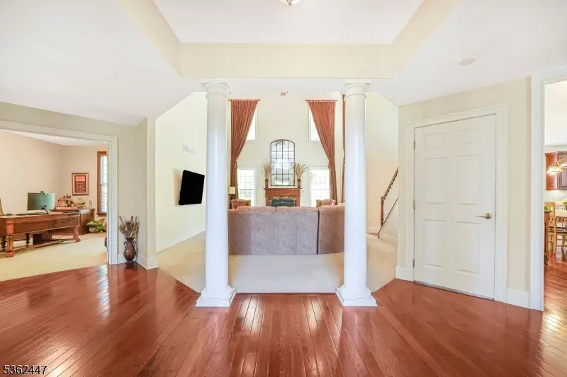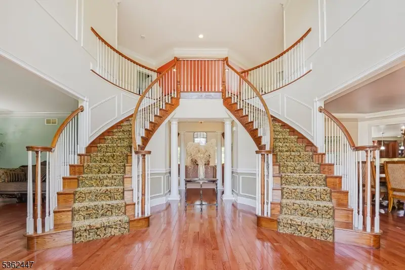 Welcome to this stunning well-maintained 5,700 sqft home, boasting 5 bedrooms and 5.5 baths nestled at the end of a cul-de-sac and set on 5.92 acres. The grand center hall greets you with 2 curved staircases into a home designed for spacious and luxurious living. The first floor features formal living and dining rooms that step into a 2 story family room with granite fireplace. A dedicated study perfect for remote working, an oversized gourmet kitchen with an 11 foot island, ss appliances and a breakfast area that leads to a solarium creating an outdoor/ inside style. Laundry room, utility room and mudroom with direct access to a 3 car garage. Upstairs showcases 5 spacious bedrooms featuring en-suite bathrooms providing comfort and convenience. The primary suite is a true retreat , complete with2 walk in closets, a jacuzzi, double sinks and a relaxing sitting area. The walk out basement w 9 foot ceilings is equipped with water connections for an additional bathroom and an RO water filter system providing clean, cold water through the kitchen's water dispenser. For peace of mind the home comes with a whole house generator, new high efficiency furnace and new well pump. Step outside to a wrap around deck with a framed gazebo and private backyard. A gated garden surrounded by fruit trees and wild raspberries. This beautiful turn key residence is conveniently located off route 80/206 and offers a direct bus to N.Y.C. nearby.