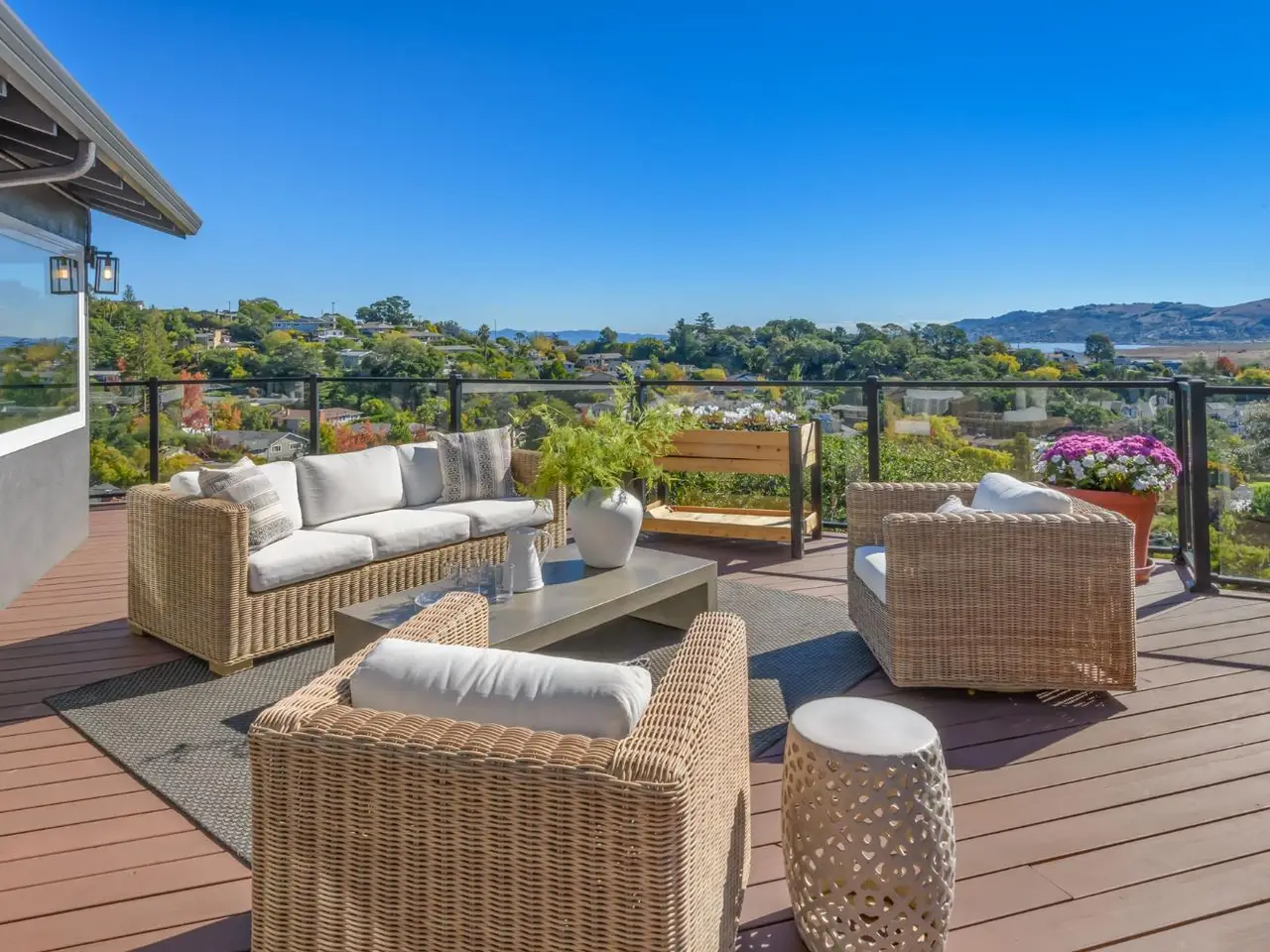 Panoramic view deck with glass handrails