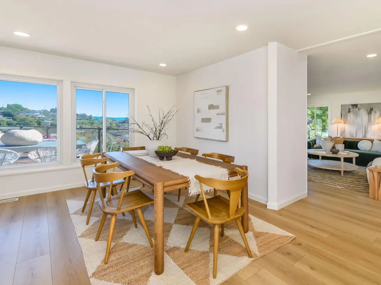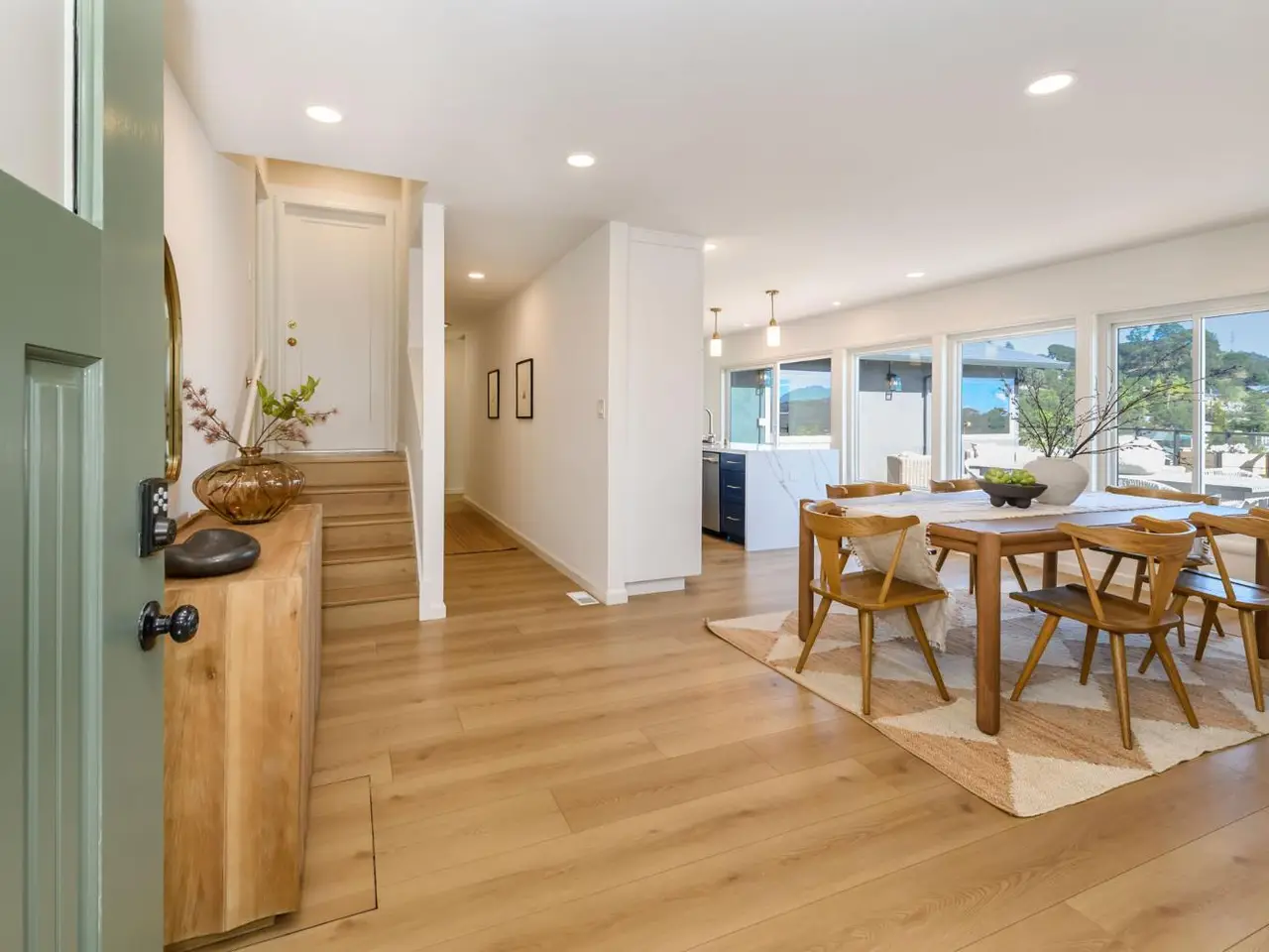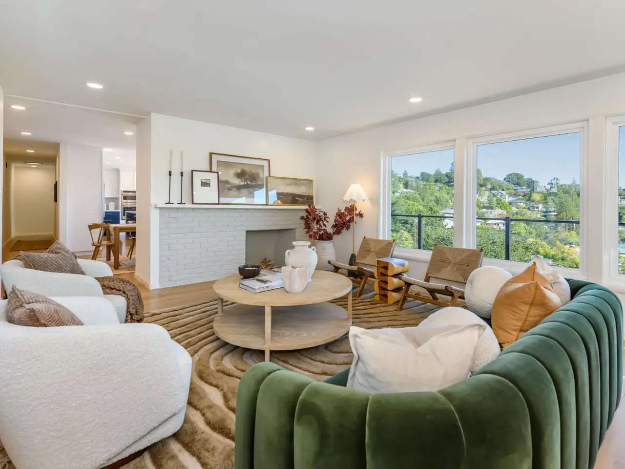 Handsomely remodeled 4 bedroom 2 bath Greenbrae home with sweeping views of the bay. This home features a beautifully remodeled chef's kitchen with large 10' island with waterfall edge quartz counters, spacious cabinetry, and professional appliances. Natural light pours in through the updated dual pane windows throughout the home. Located just off the kitchen and dining area is the large panoramic view deck with glass handrails that offers clear views of the San Francisco Bay, hills of Marin and East Bay hills in the distant. The primary suite is spacious and offers ample closet space with partially remodeled bathroom. Down the hall presented 3 more large bedrooms and a fully remodeled bathroom. New flooring throughout the home, newer roof, fresh interior and exterior paint, new lighting, updated landscaping, spacious side-by-side 2 car garage, and Tesla charger are some of the additional features of this home. With close proximity to the Larkspur Ferry, Hwy 101, Bon Air shopping, Greenbrae/Kentfield schools and everything else Central Marin has to offer.