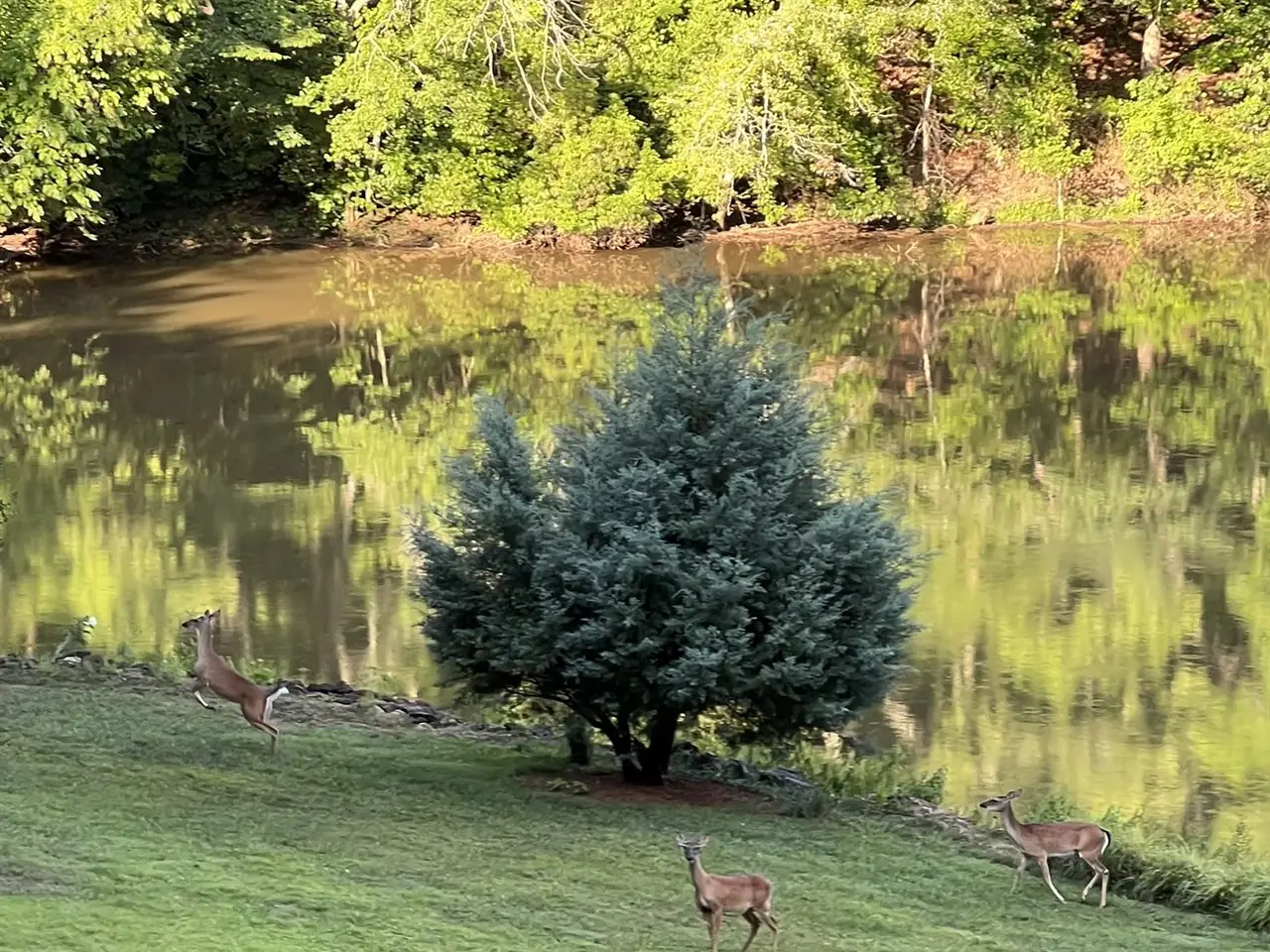 Serenity Place: A Lakeside Escape Surrounded by Nature's Beauty. Discover the perfect blend of privacy and natural splendor at this extraordinary lakeside estate. Set on over 10 acres of lush, wooded grounds with more than 400 feet of pristine shoreline, this retreat offers the ultimate sanctuary just minutes from downtown Greenville. Fall colors explode across the landscape, and the gentle sounds of water and wildlife create a serene, peaceful backdrop every day. The main residence features 4 spacious bedrooms and 4 full bathrooms, with breathtaking lake and forest views from nearly every room. The living room, centered around a grand fireplace, invites cozy evenings, while the dining room frames meals against stunning natural vistas. Step outside to expansive decks or your private dock - perfect for kayaking, fishing, or simply soaking in the tranquility of the lake. A charming artist's cottage tucked among the trees provides a quiet haven for creative pursuits, meditation, or guests. As the sun sets, gather around the fire pit patio and let the sounds of water and rustling leaves set the tone for unforgettable nights under the stars. Meander along winding paths and immerse yourself in the vibrant sights and sounds of nature. From morning coffee on the deck to golden-hour strolls along the shoreline, every moment at this property invites you to slow down, savor the serenity, and enjoy a lifestyle where every day feels like a retreat.