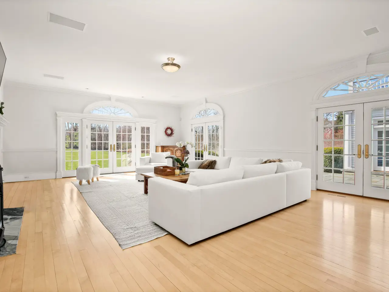 A timeless Connecticut Compound in mid-country Greenwich custom designed and built by a coveted team. Resting on 4.7 private level acres with a two bedroom guest house and barn/accessory garage. The sun-filled stylish interior features 10+foot ceilings, grand front-to-back entrance hall, refined living and dining rooms, a large handsome library and five inviting fireplaces all with bespoke finishes. The gourmet kitchen and breakfast room seamlessly connect to three exposed family rooms perfect for gatherings. Five en-suite bedrooms, including a primary suite with spacious terrace, sitting room, double walk-in closets and luxurious baths. The third floor space is open and bright for versatile use. The exceptional lower level has multiple recreation rooms, a wine cellar, a potential media room, and space for arts and crafts. Outdoor spaces offer all the amenities to enjoy the seasons; pool, spa, fire pit, expansive lawns and a combination of open and covered spaces for entertainment and relaxation. The guest cottage, fronted behind an old world stone wall, has a charming covered front porch and its own driveway entrance. For driving enthusiasts there is garaging for 5 cars. A unique opportunity on a lovely country road close to schools and parks, 45 minutes to NYC.