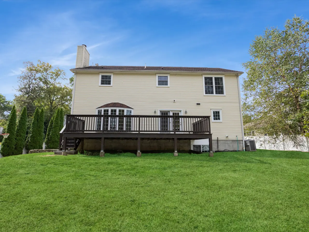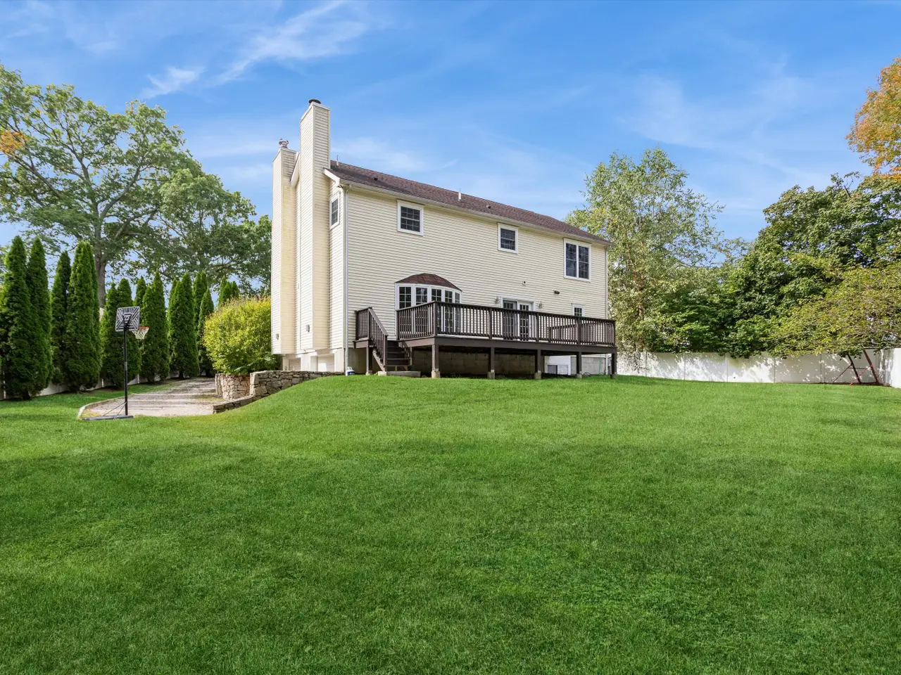 Welcome to this stunning 4-bedroom, 3.5-bath Colonial nestled on a desirable Riverside cul-de-sac. The main level boasts a spacious living room with a cozy fireplace, a formal dining room, a convenient powder room, a large family room with a second fireplace. The expansive eat-in kitchen features a center island and opens to a generous deck-perfect for entertaining and outdoor dining. Upstairs, you'll find a luxurious primary suite with a spa like bath and a gas fireplace Three additional well-sized bedrooms share a large hall bath, and a second-floor laundry room adds everyday convenience. The finished lower level offers a full bath and versatile living space ideal for a playroom, media room, or home office. A large two-car attached garage includes plenty of storage. Enjoy privacy and outdoor living in the fully fenced, oversized backyard perfect for gatherings, gardening, or simply relaxing. Pool site plans available. Enjoy all that living in Greenwich has to offer, easy NYC commute via Metro North train, beautiful beaches, award winning parks, exceptional schools, world class shopping, and fabulous restaurants.