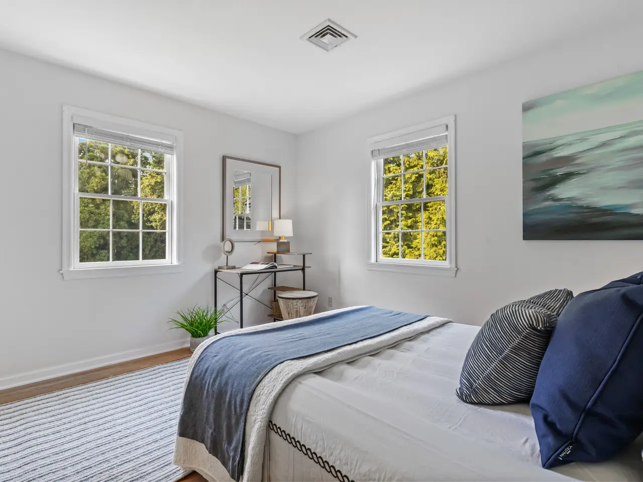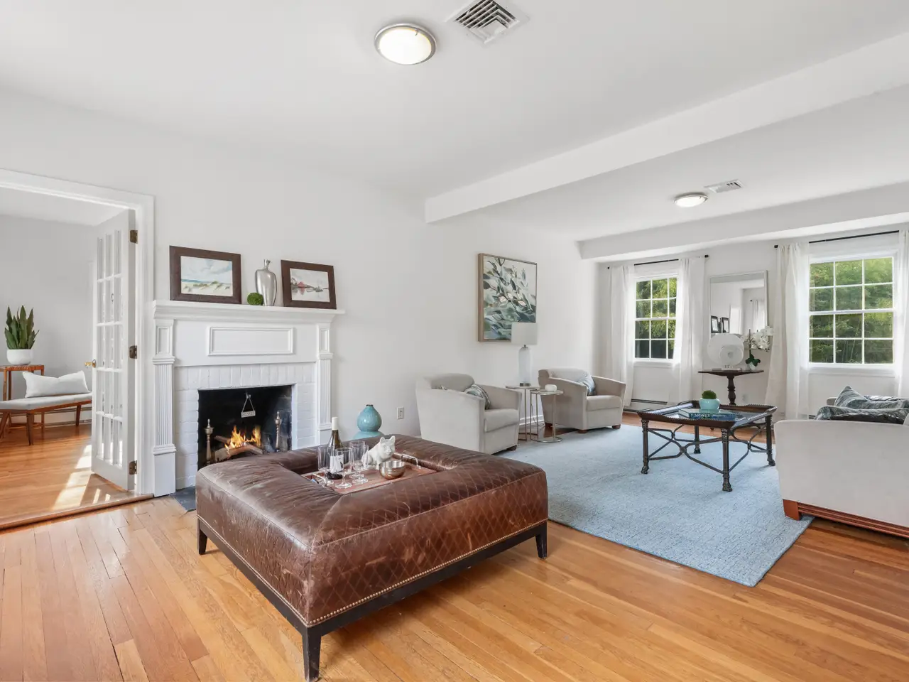 This timeless Colonial, completely rebuilt in 2002 with only the original foundation remaining, was thoughtfully designed for today's lifestyle. Sunlight fills the home through large windows, highlighting hardwood floors throughout and offering water views from several rooms. The main level features a spacious living room with a fireplace, a formal dining room, a comfortable family room, and a generous kitchen with an island, stainless steel appliances, abundant quality wood cabinetry, and ample counter space. A mudroom provides access to the large deck, complete with a pergola draped in wisteria-perfect for al fresco dining. Also on the first floor, a versatile office/bedroom with an adjacent half bath offers flexibility for guests or work-from-home needs. Upstairs, the primary suite serves as a private retreat with a sitting area, spacious walk-in closet and nicely appointed full bath. Two additional bedrooms share a well-designed full bath with double sinks and a private shower area, and a convenient hallway laundry closet adds everyday ease. The partially finished lower level offers lots of flexible space, ideal for a playroom or gym. Additional highlights include two garage bays, a private backyard, and the coveted perk of deeded water access just steps away at the end of the cul-de-sac. Launch your kayak or paddleboard, or simply enjoy the serene views. Ideally located close to the Riverside train station and all the exceptional amenities Greenwich has to offer